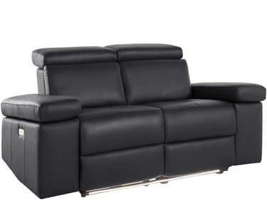 2-personers sofaen kombinerer funktionalitet og komfort med skrå armlæn. Dens tidløse look passer ubesværet ind i forskellige indretningskoncepter. Sofaen har justerbare nakkestøtter og armlæn for individuel komfort. Den inkluderer en elektrisk afslapningsfunktion, der forbedrer siddekomforten. Derudover kommer den med en USB-port.
