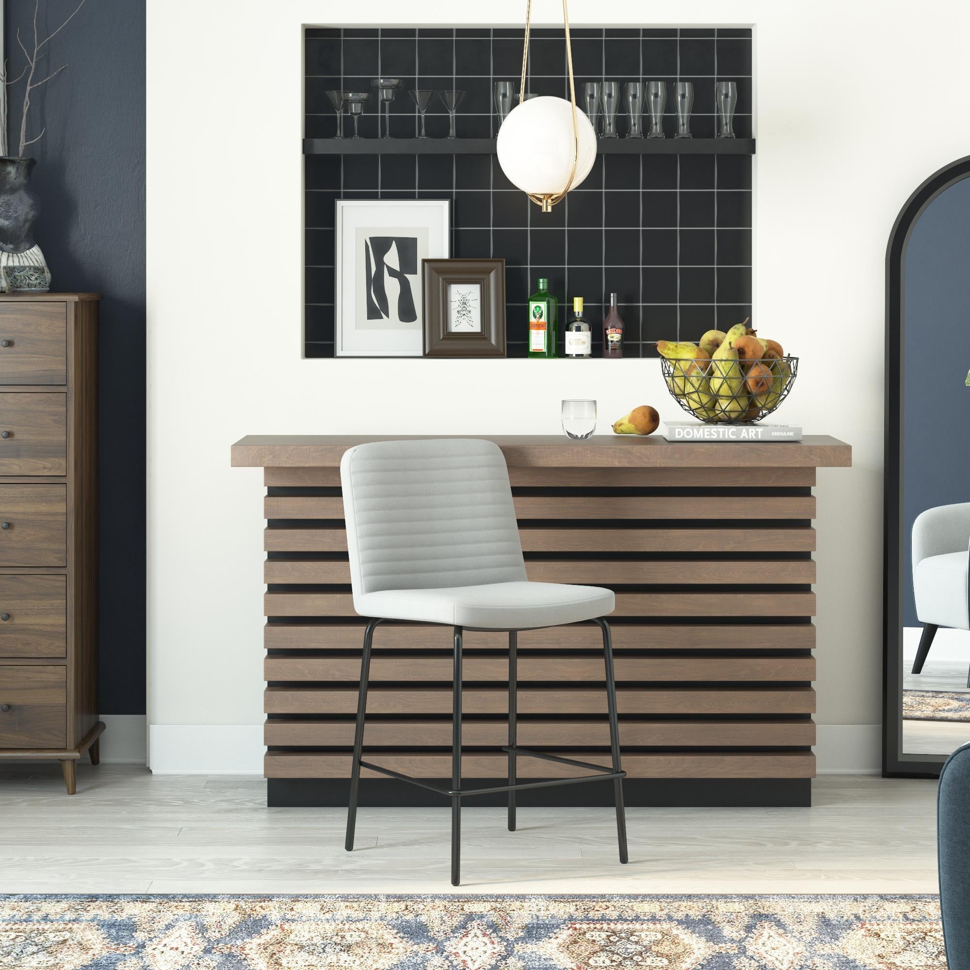 Moderne silhuet med stramme vandrette tuftedetaljer på ryglænet, der minder om midcentury-design.