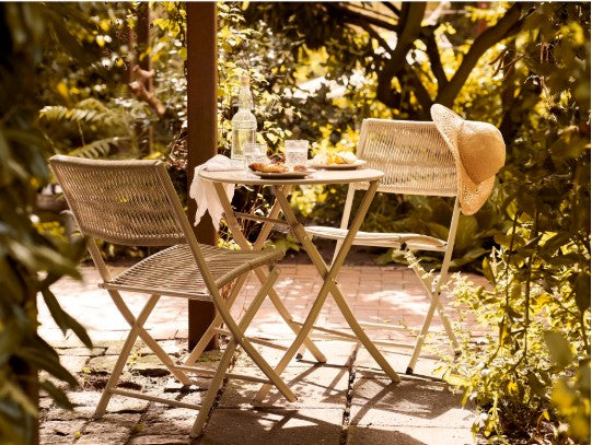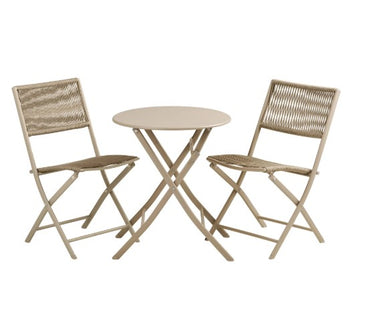 Cafésæt, 2 stole og 1 bord, polyester/stål, taupe