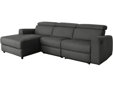 Den 3 højkvalitets polstrede hjørnesofa er en rummelig og elektrisk justerbar sofa med en chaiselong til venstre. Den er lavet af FSC®-certificeret træ og imiteret læder. Den passer til en moderne stue med USB-stik til betjening af afslapningsfunktionen.