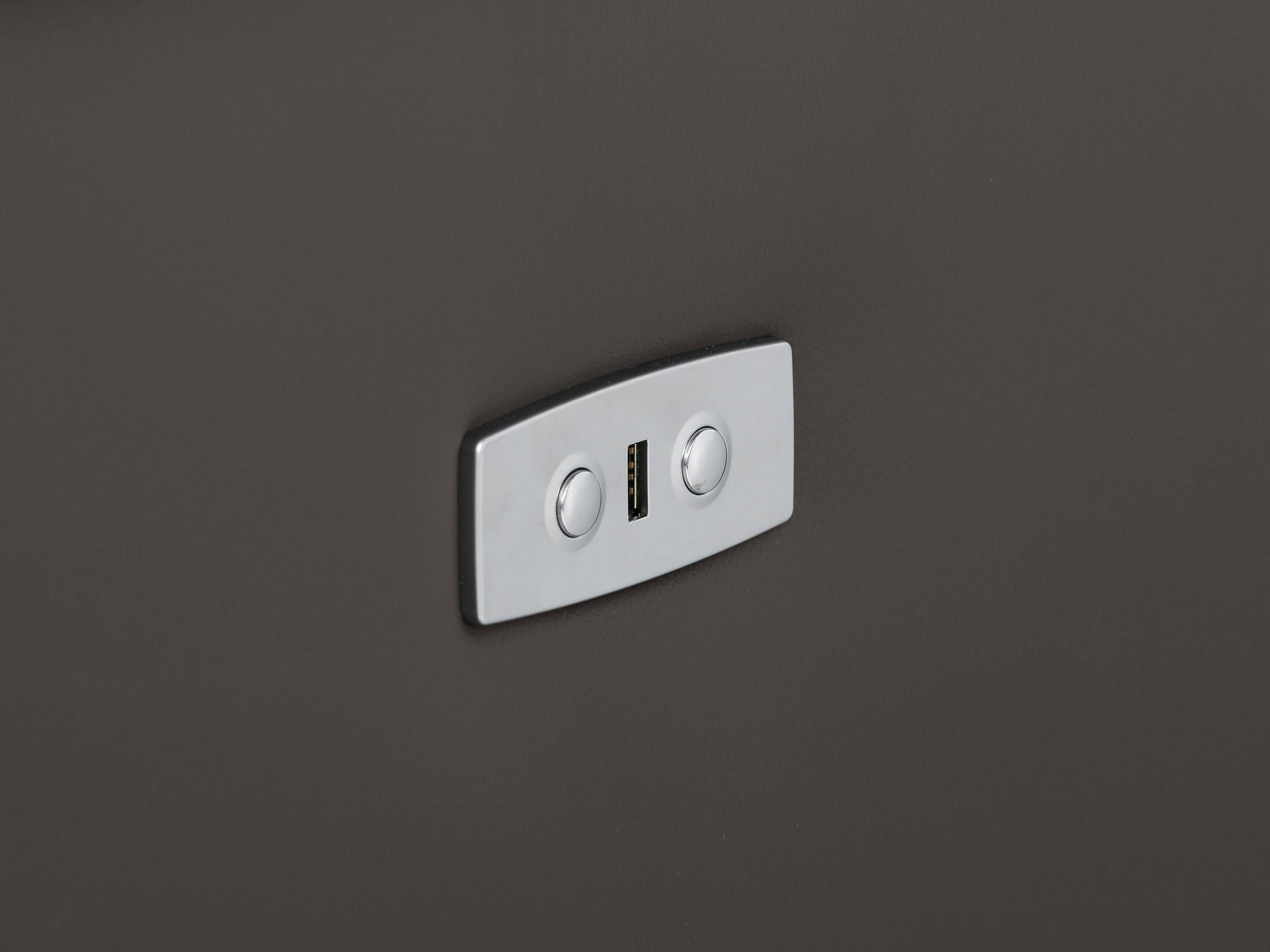 Den polstrede hjørnesofa af høj kvalitet er en rummelig og elektrisk justerbar sofa med en chaiselong til venstre. Den er lavet af FSC®-certificeret træ og imiteret læder. Den passer til en moderne stue med USB-stik til betjening af afslapningsfunktionen.