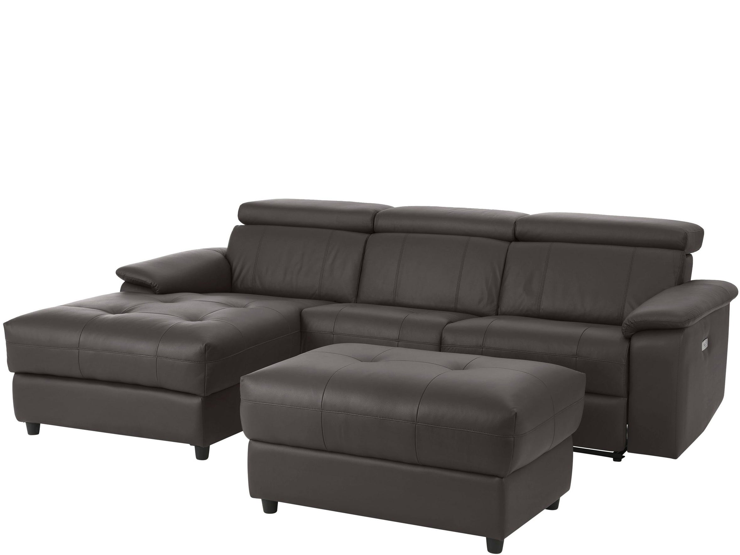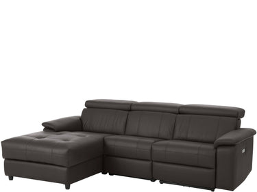 Chaiselong sofa 3 pers højre med elektrisk funktion i LæderPU Brun