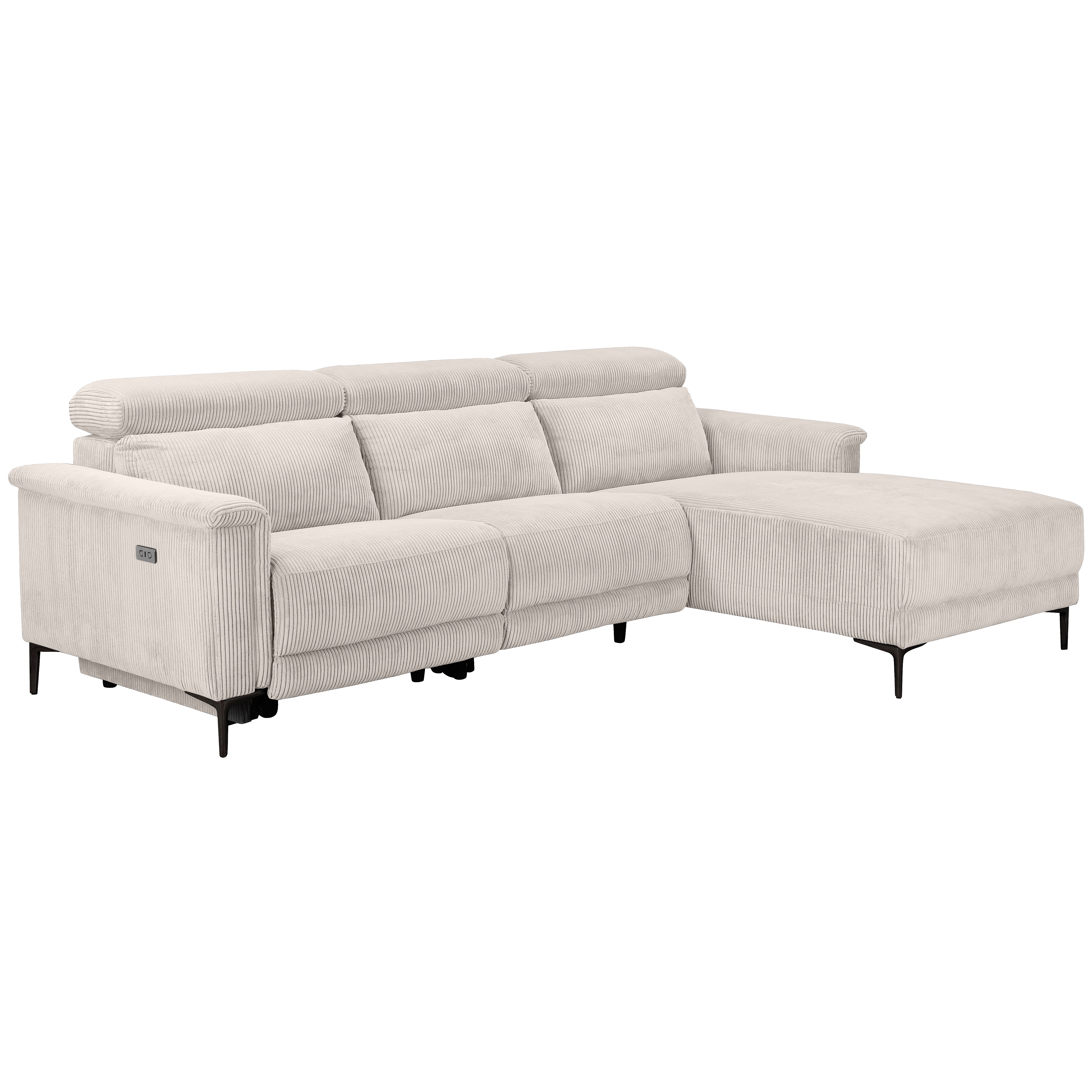 Hjørnesofa 3-sædet med elektrisk funktion i fløjlscreme