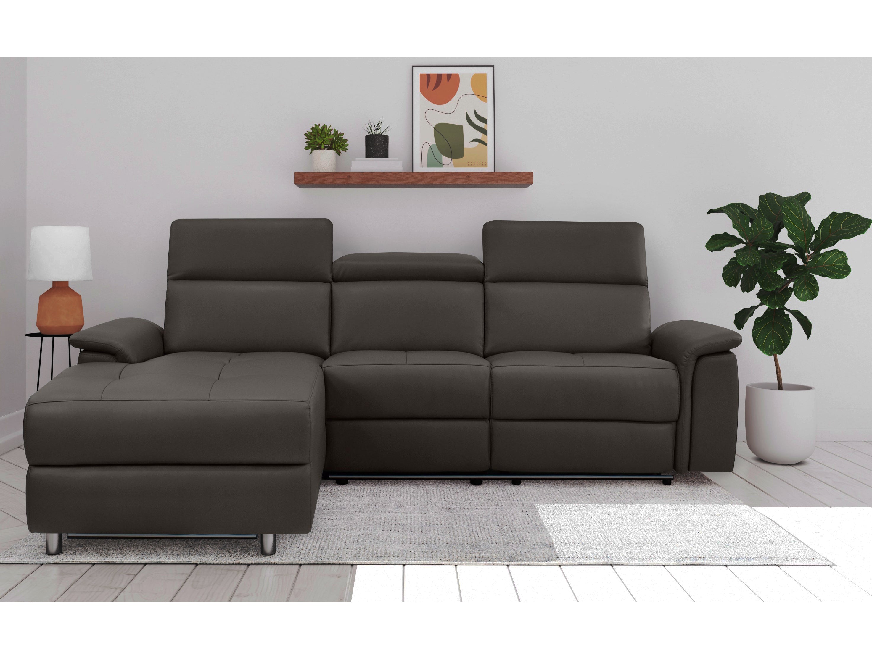 Sofa 3 pers. venstre med elektrisk funktion i brunt læder PU