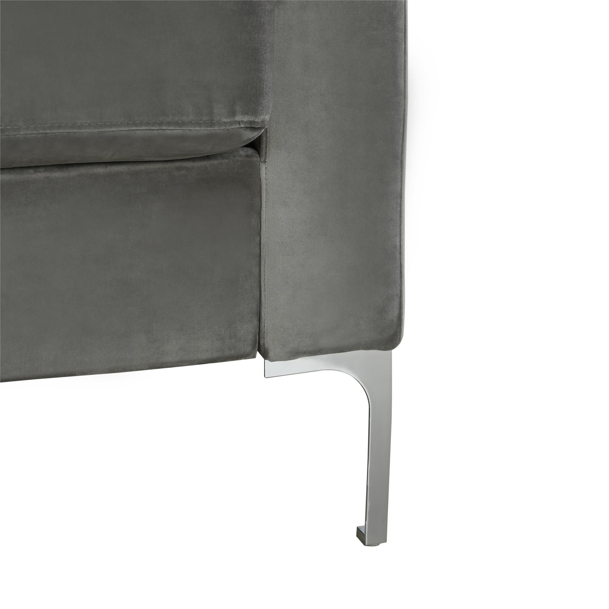 Ideelle stuemøbler med lille plads. Moderne L-formet sektionssofa designet med kromben og et blødt fløjlsbetræk til at sidde i fuld komfort.