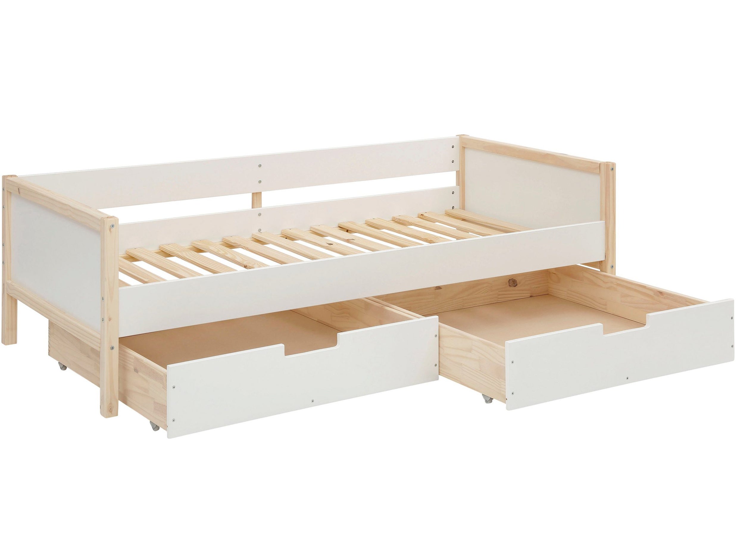 Tidløst soveudstyr til børne- eller teenagerværelset dagsengen med lamel. Denne sovesofa imponerer med sit trendorienterede design og højkvalitets udførelse. Daybeden er lavet af massivt fyrretræ og robust konstrueret træ. Den matte easycare overflade er hurtig og nem at rengøre. En lamelramme af høj kvalitet er allerede inkluderet i leveringsomfanget, så du straks kan udstyre sengen med en madras. Giver et smagfuldt blikfang i dit hjem dagsengen inklusive lamelramme.