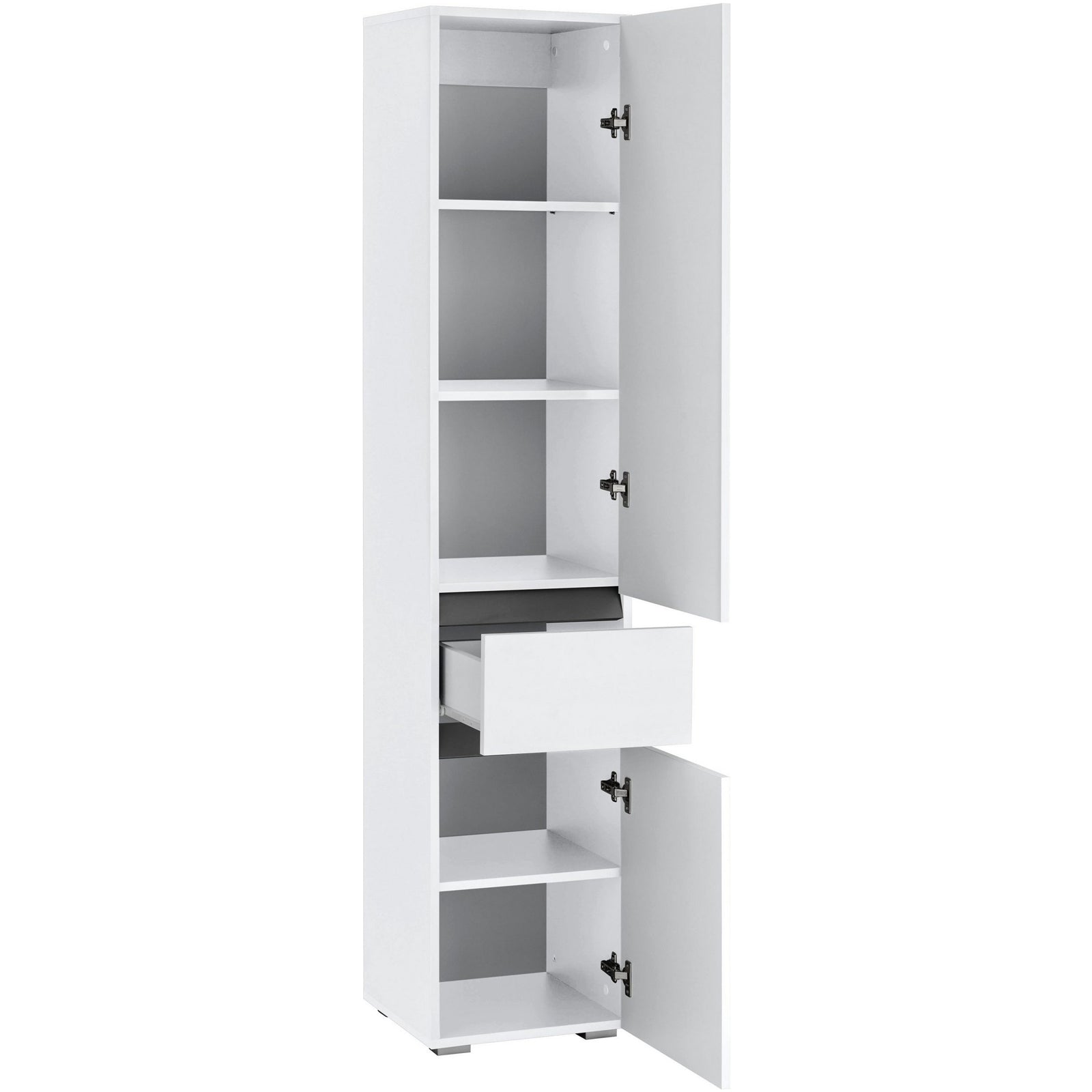 Det slanke og høje badeværelsesskab skaber tilstrækkelig opbevaringsplads. Den fylder lidt takket være det pladsbesparende og slanke design. Dets tidløst moderne design kan nemt integreres i dit hjem. Det tofarvede design med håndtagsfri fronter fremhæver det tidløse og minimale design. Opbevaringsskabet er udstyret med låger og en praktisk skuffe. Afhængigt af rumsituationen kan du ændre dørhængslerne. Inde i badeværelsesskabet byder der på plads til toiletartikler og meget mere. Takket være højdejusterbare hylder kan rumstørrelserne bestemmes individuelt. Badeværelsesmøblet af høj kvalitet er fremstillet af FSC®-certificerede træmaterialer med letplejebelagte overflader. Fås i forskellige farver.