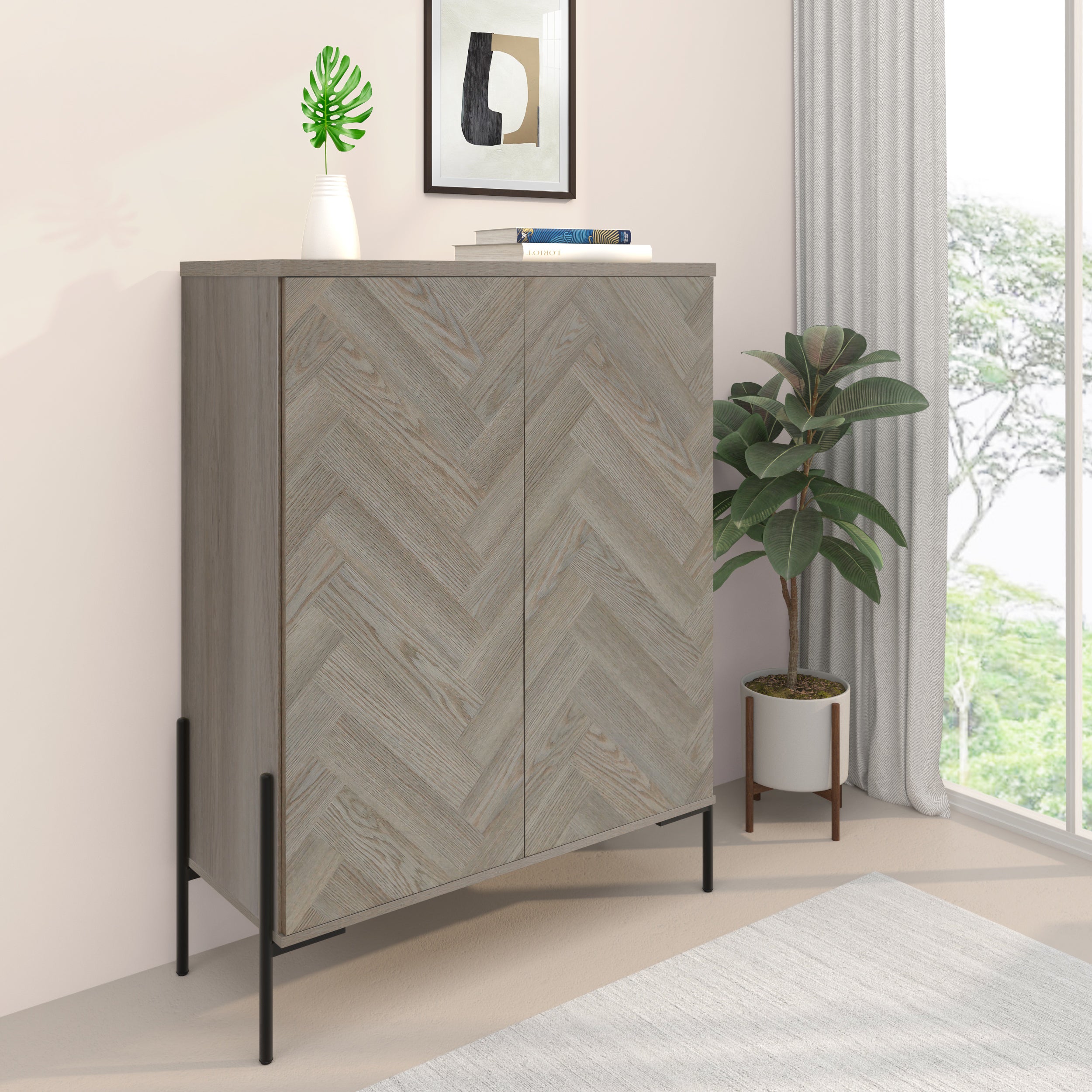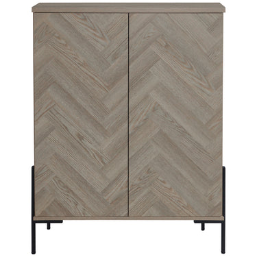 Højskab med 2 døre i fiskebensmønster i egetræslook