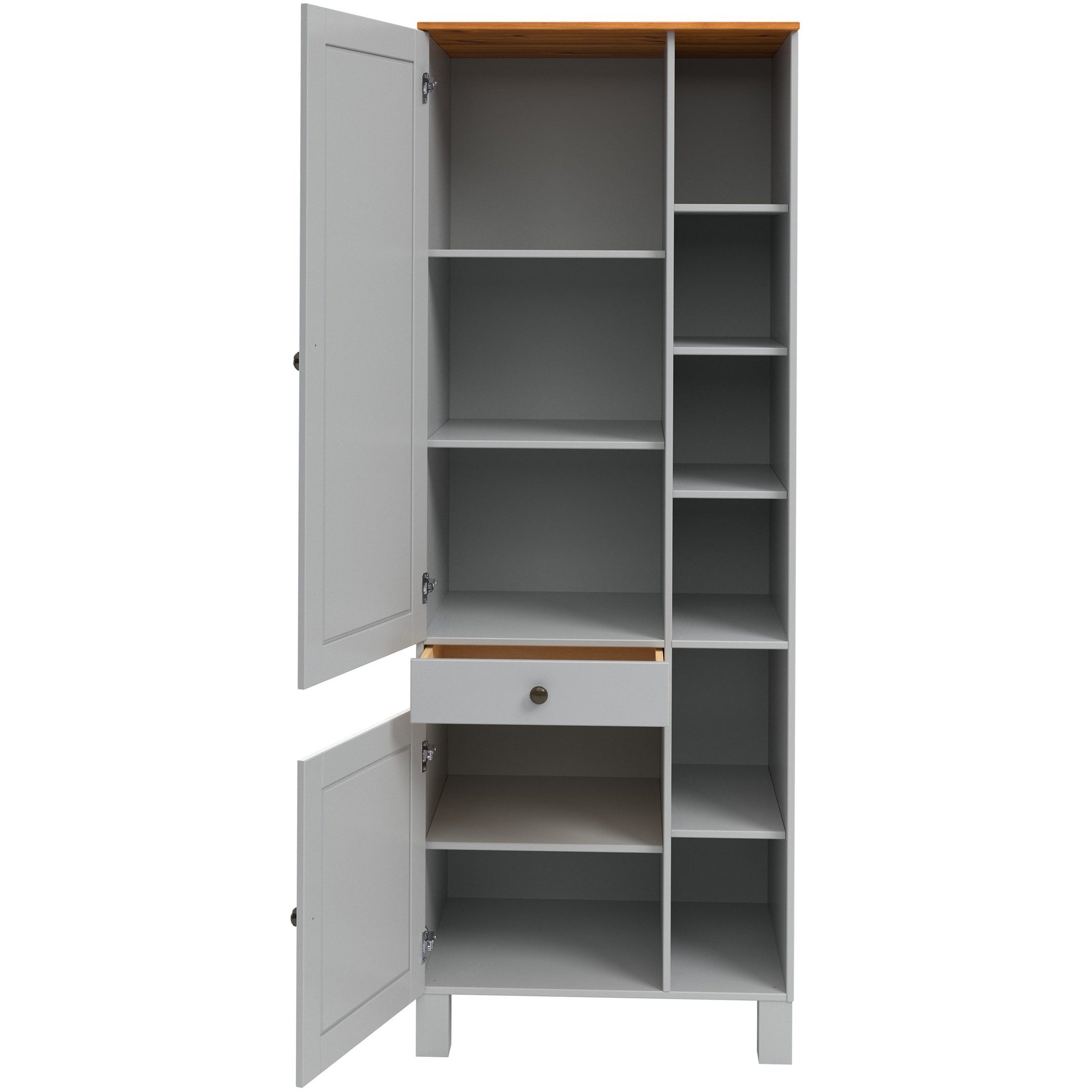 Højskab med 2 låger 1 skuffe og 6 cubby i fyrregrå