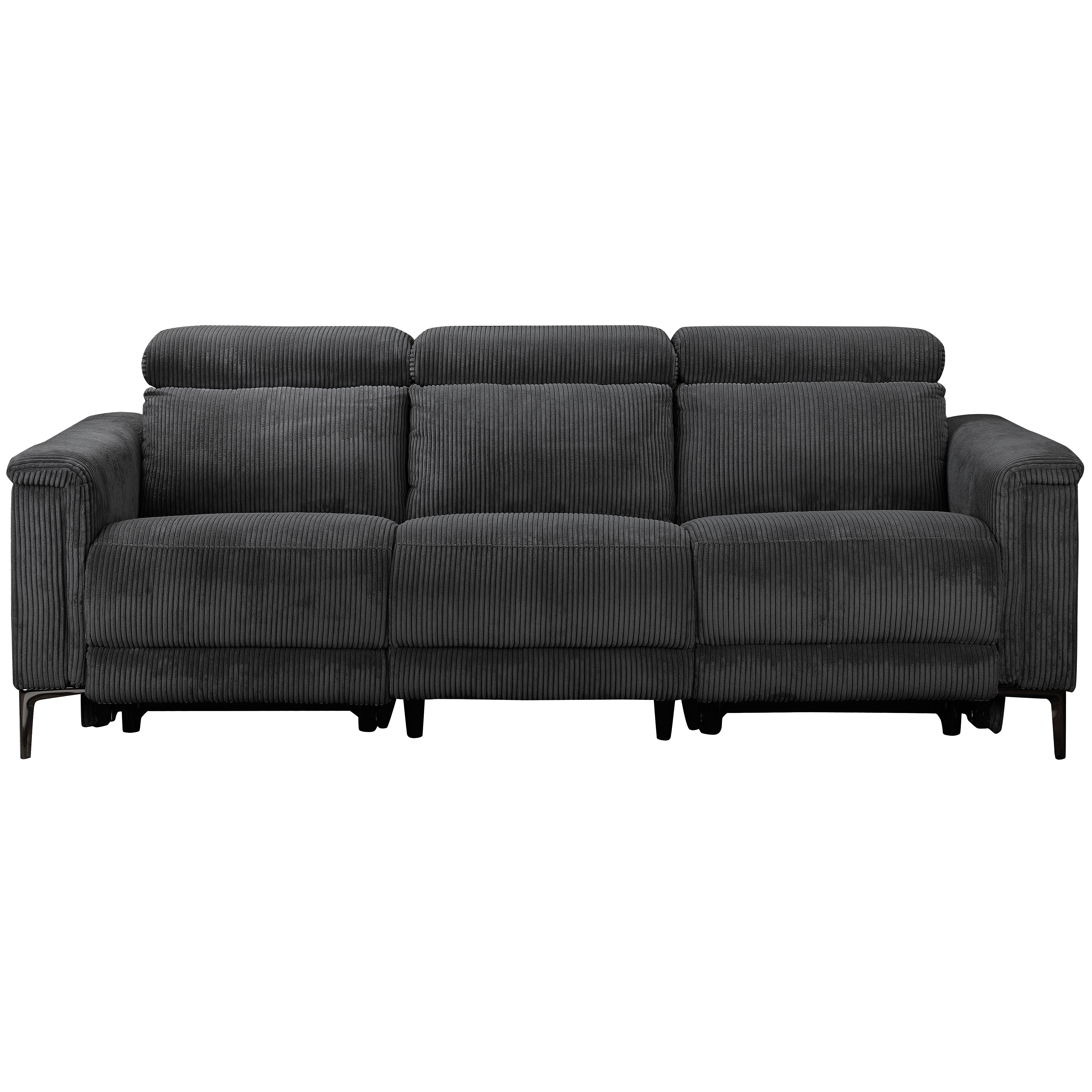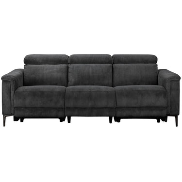 Denne tresædede sofa tilbyder både komfort og bekvemmelighed. Den er lavet af blødt fløjlsstof, som føles varmt og hyggeligt. Sofaen har to manuelle hvilestole, en på hver side, der kan justeres uden trin. Ryglænet og fodsektionen bevæger sig sammen og giver en afslappende oplevelse. Nakkestøtten kan justeres til fem forskellige positioner for ekstra støtte. Sofaen har fire robuste metalben i gråt og tolv sorte støtteben, der giver den stærk stabilitet. Den kan holde op til 450 kg, og hvert sæde kan bære 150 kg. Denne sofa er en stilfuld og praktisk tilføjelse til ethvert opholdsrum.