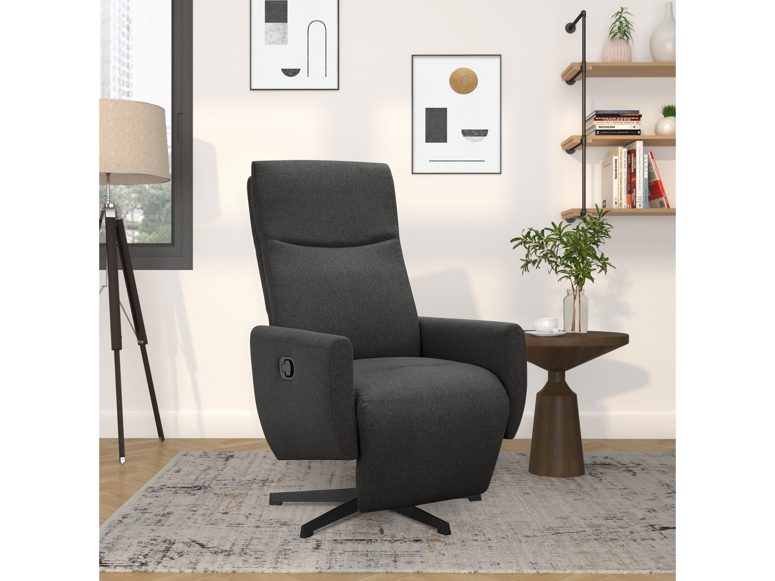 Hvilestol med manuel og drejelig funktion i antracitstof