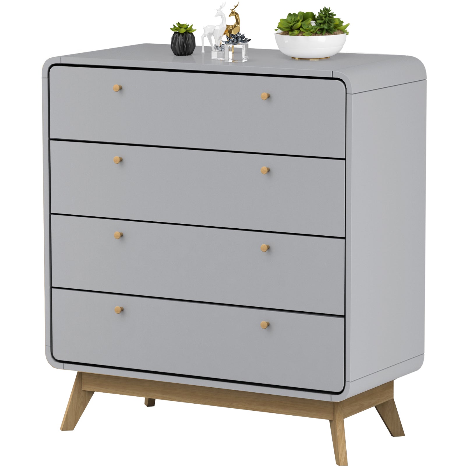 Kommode med 4 skuffer i gråt træ-look