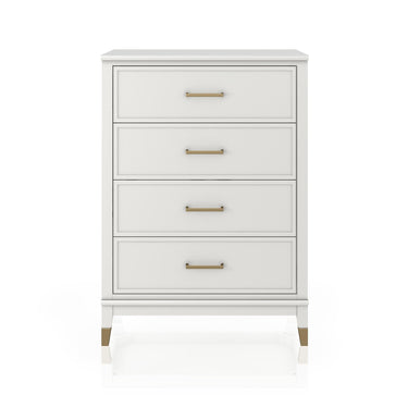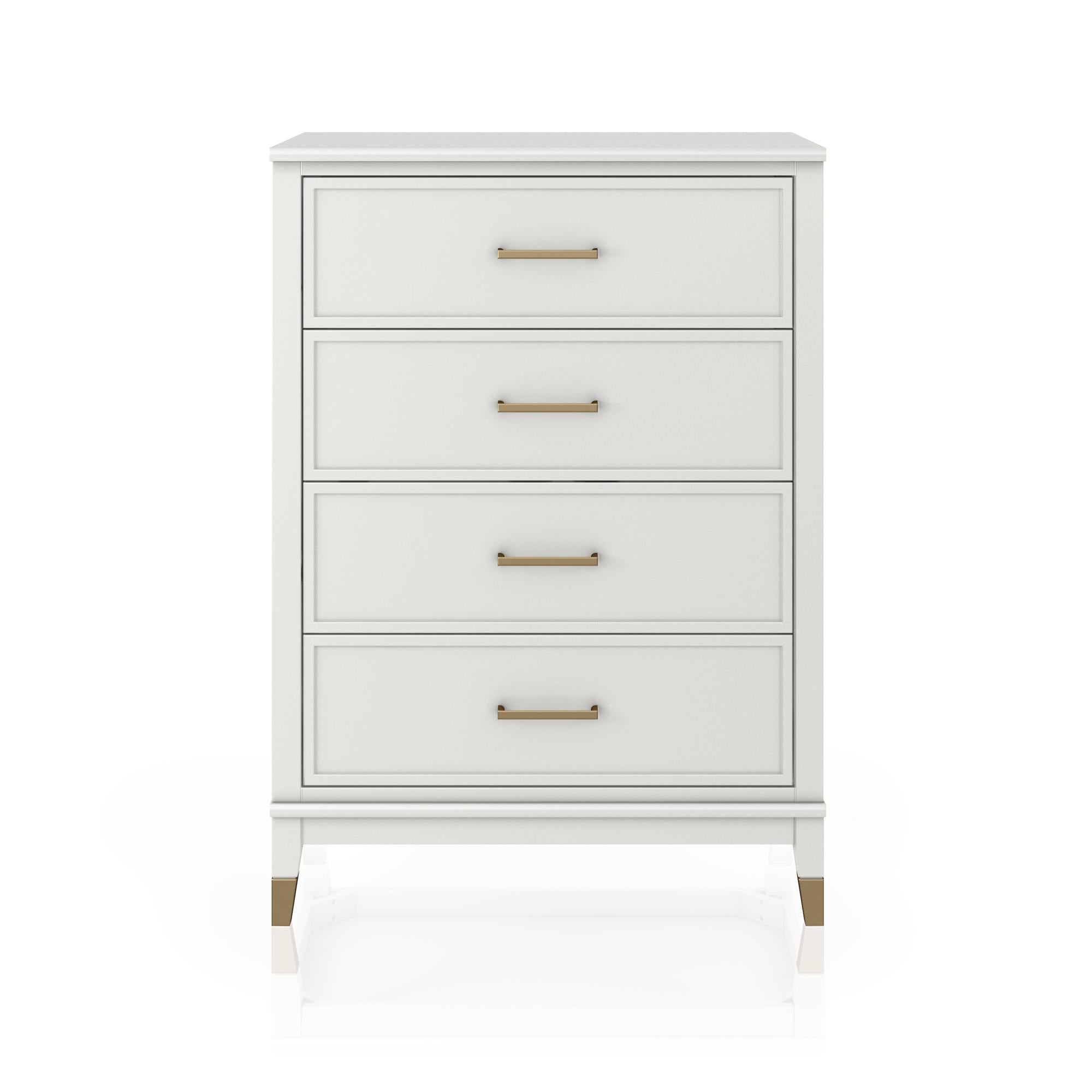 Føj trendy opbevaring til dit soveværelse med denne kommode med 4 skuffer. Den er lavet af MDF i hvid. Kommoden byder på rigelig opbevaringsplads. Den er perfekt til at organisere tøj og tilbehør. Det moderne design passer godt til enhver indretning.