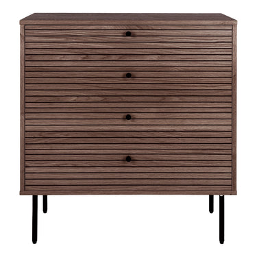 Kommode, 4 skuffer, egefiner, smoked, sorte metalben, 80x40x85 cm