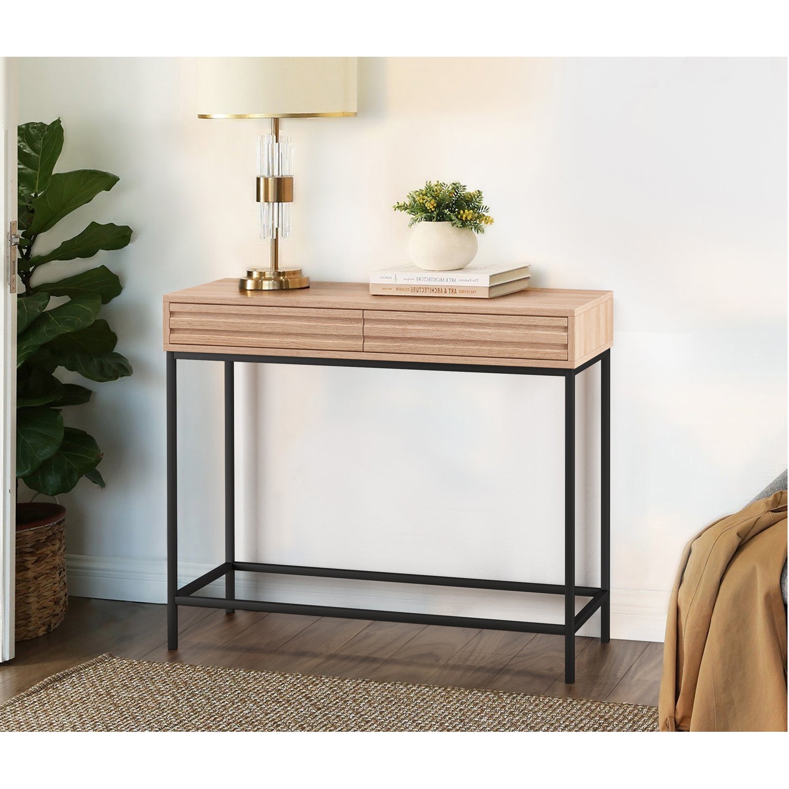 Et stilfuldt konsolbord lavet af lamineret spånplade i moderne design.