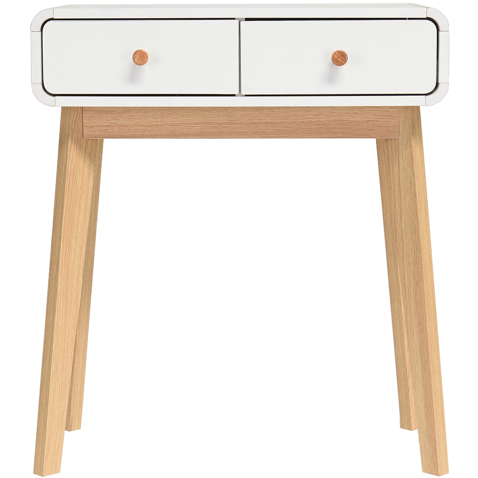 Føj et strejf af skandinavisk-inspireret stil til dit hjem med dette konsolbord. Den har en strømlinet silhuet, tofarvet farvepalet og tilspidsede ben. Træets årer skinner gennem at tilføje et naturligt element til dit rum. Bordet indeholder to integrerede skuffer til praktisk opbevaring.