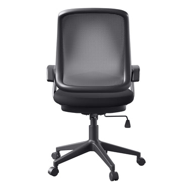 Det polstrede sorte stofsæde sikrer en blød og støttende oplevelse, så du kan sidde komfortabelt i lange timer. Et flydende ryglæn med åndbart mesh-stof giver luftstrøm og holder dig kølig og afslappet hele dagen.