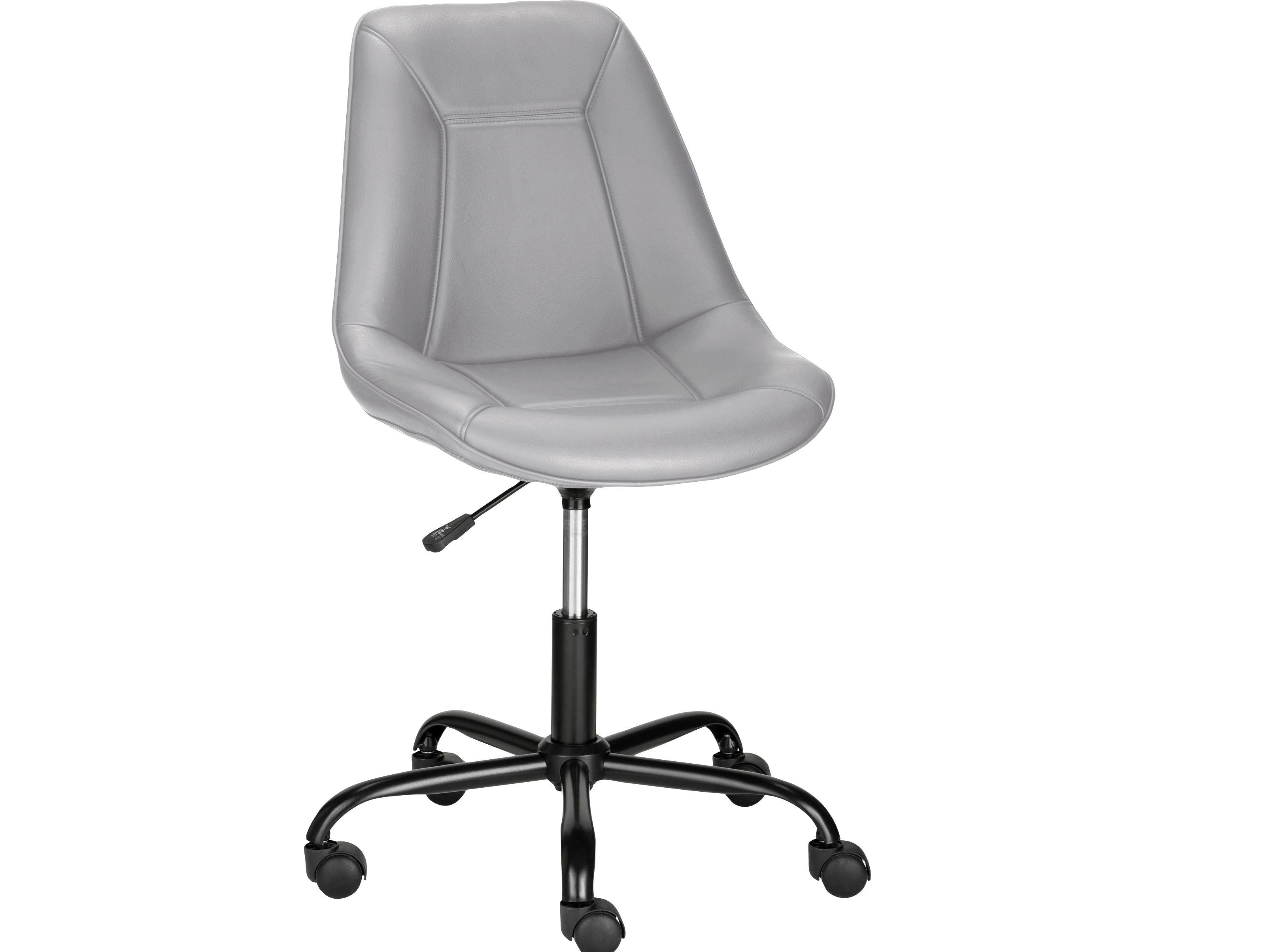 Kontorstolen med sit enkle design er ideel til studiehjemmekontoret eller ungdomsværelset. Den har en metalramme, der delvist matcher farven på sædeskallen. Sæde og ryg er blødt polstret og betrukket med kunstlæder. Derudover kan stolens sædehøjde tilpasses individuelle behov. Takket være hjulene kan skrivebordsstolen nemt flyttes frem og tilbage.