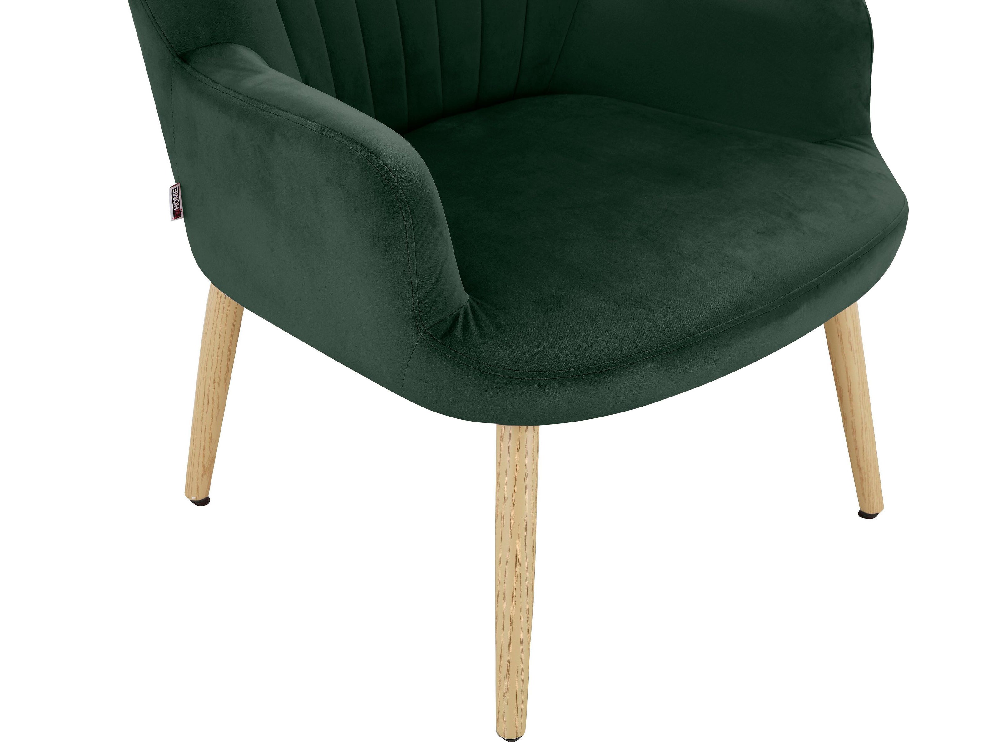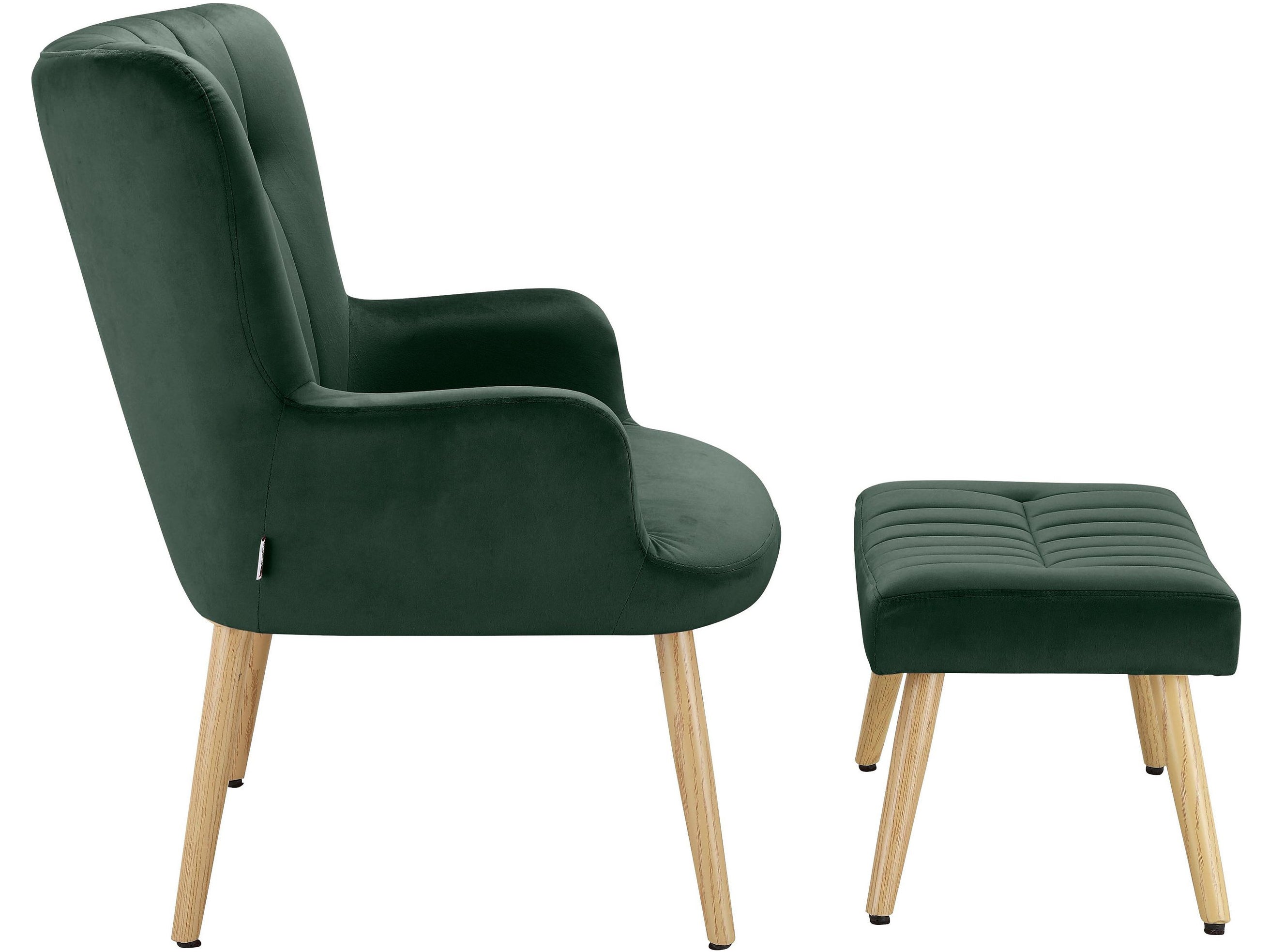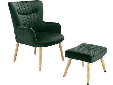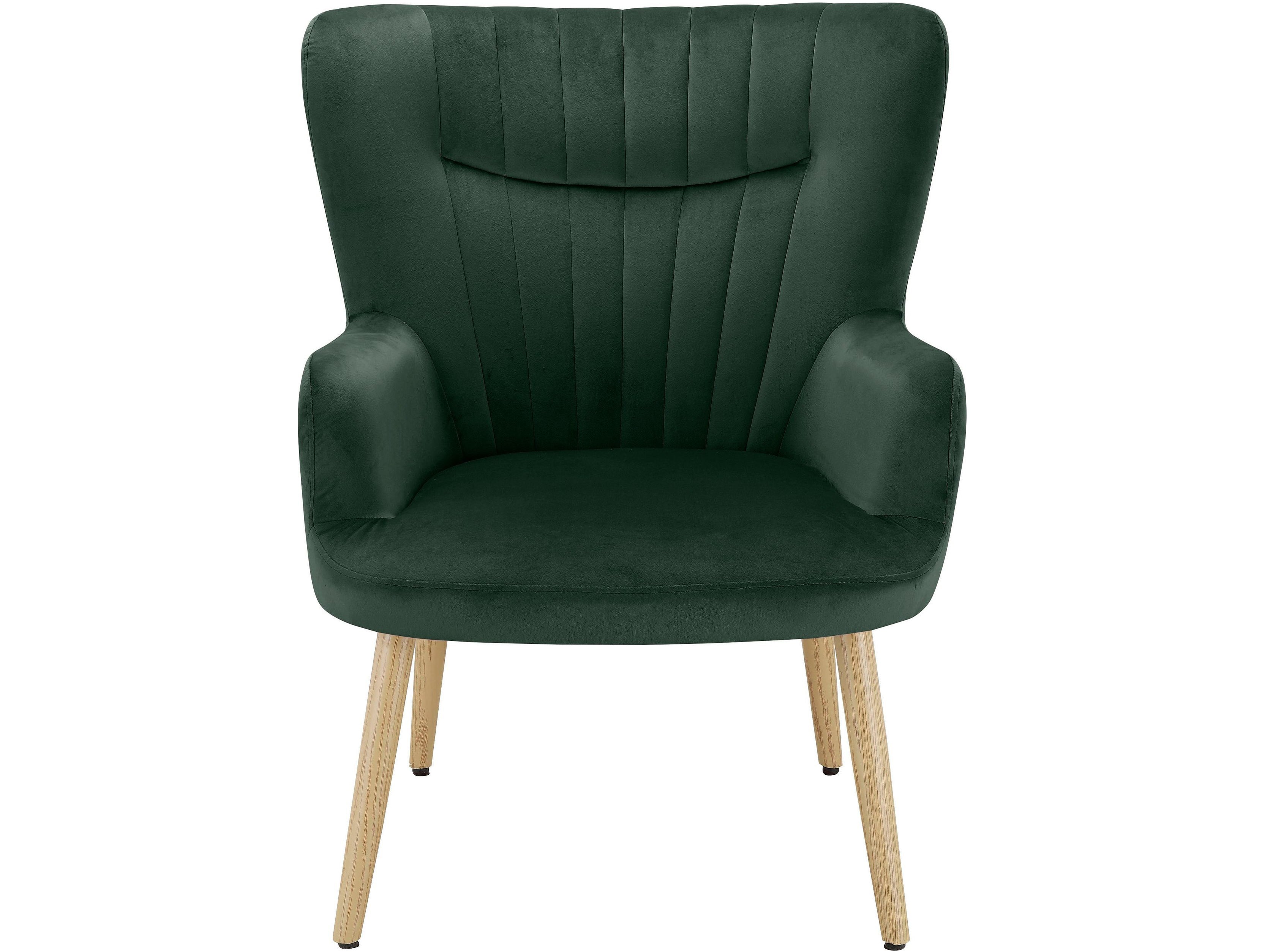Denne mørkegrønne fløjlslænestol kombinerer luksus og komfort. Dens elegante design og bløde polstring gør den til en perfekt tilføjelse til enhver bolig. Slap af med stil.