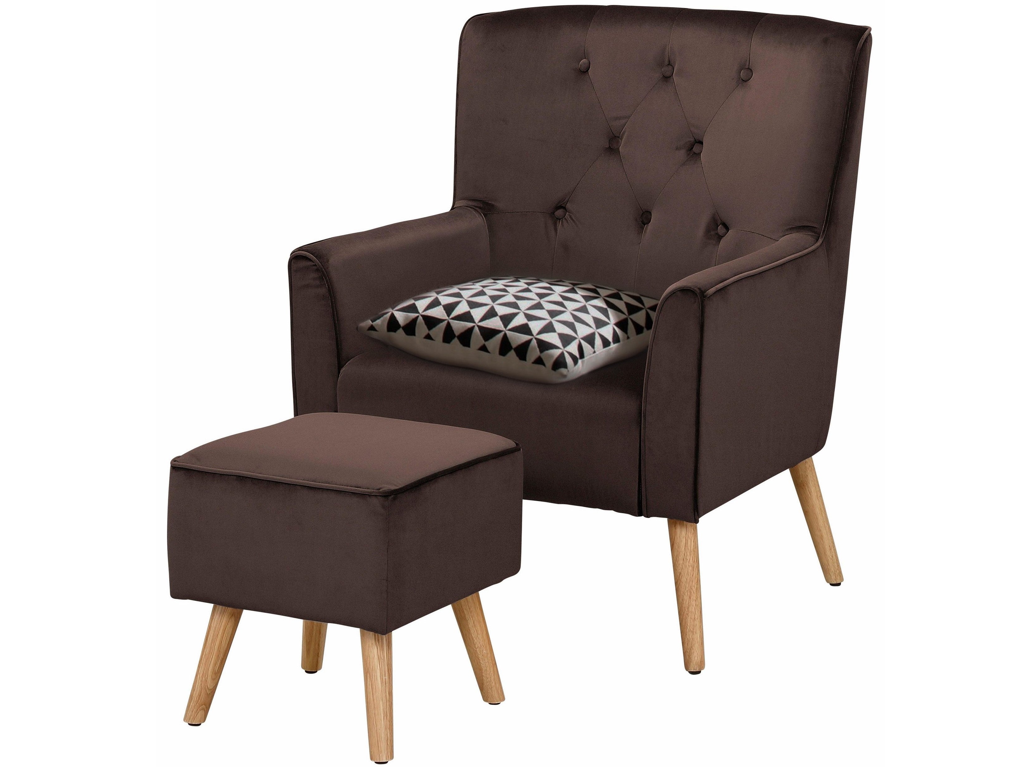 Lænestol med skammel i brun velour