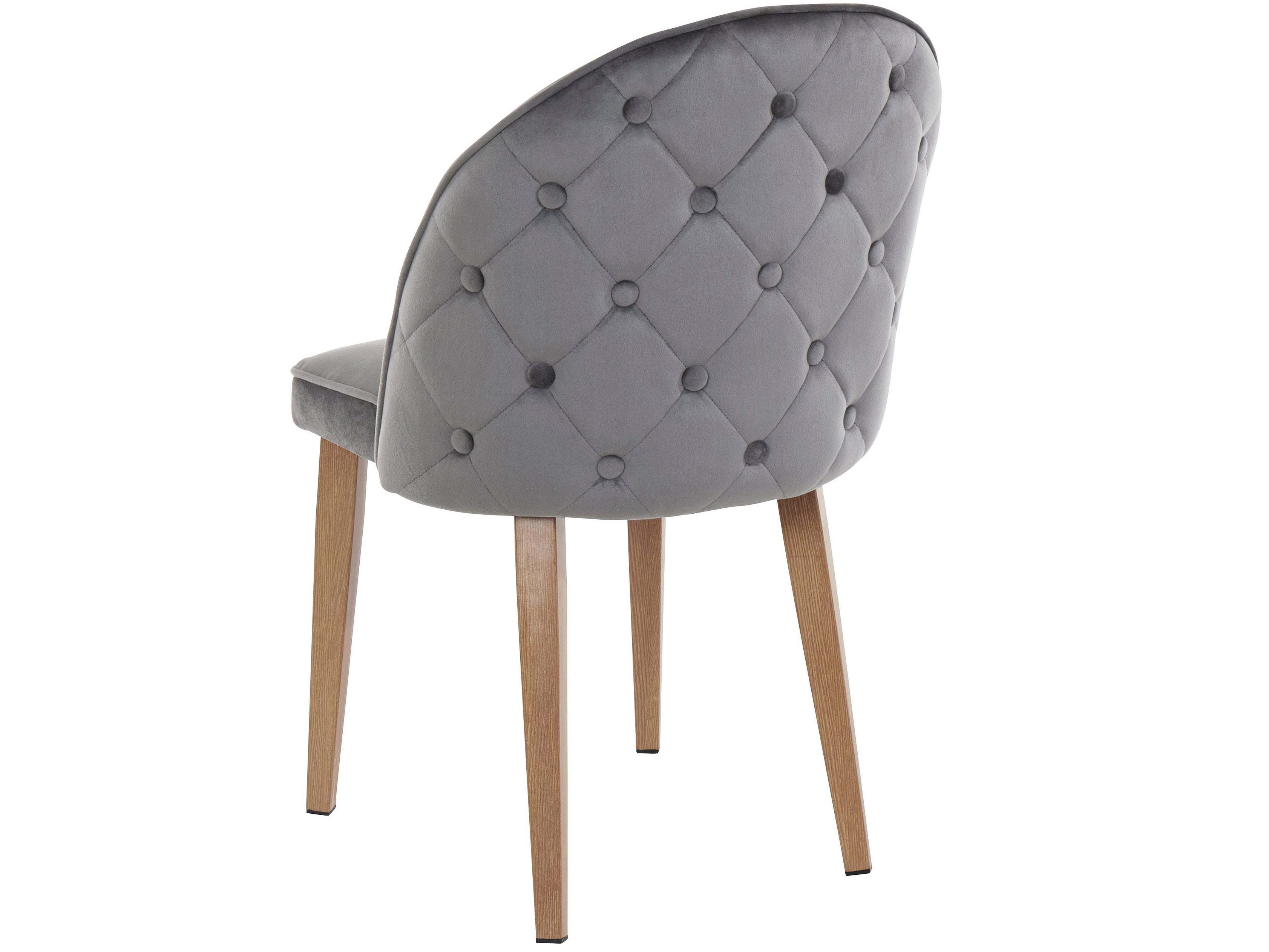 Den komfortable spisestuestol understøtter en luksuriøs og moderne følelse af at bo. Dens smarte design er defineret af et ryglæn med smukke syninger og knapper på ydersiden. Stolen er desuden udstyret med et metalstel med træfinish. Spisestuemøblerne har et polstret sæde til behagelig siddeplads ved middagen. Giver dit hjem interiør et elegant touch den komfortable spisestuestol. Spisestuestolen har en moderne stil og skaber en stilfuld stemning.