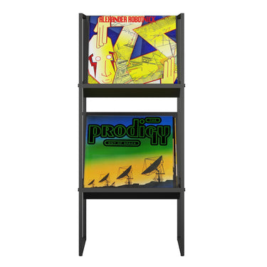 Føj en retro glam-stil til dit underholdningsrum med Novogratz Helix Vinyl Record Storage Stand. Den sorte finish på det pulverlakerede metal tilføjer et moderne touch til din stue eller mandshule. De 2 rummelige vinklede hylder vil rumme alle dine yndlingsalbum. Det minimalistiske design er ideelt til både store og små rum og forhindrer dit værelse i at føles rodet. Vinylpladestanderen sendes fladt til din dør og skal samles ved åbning. To voksne anbefales at samle. Når vinylpladelagerstanden er samlet, måler den 32,42H x 13,94W x 11,38D.