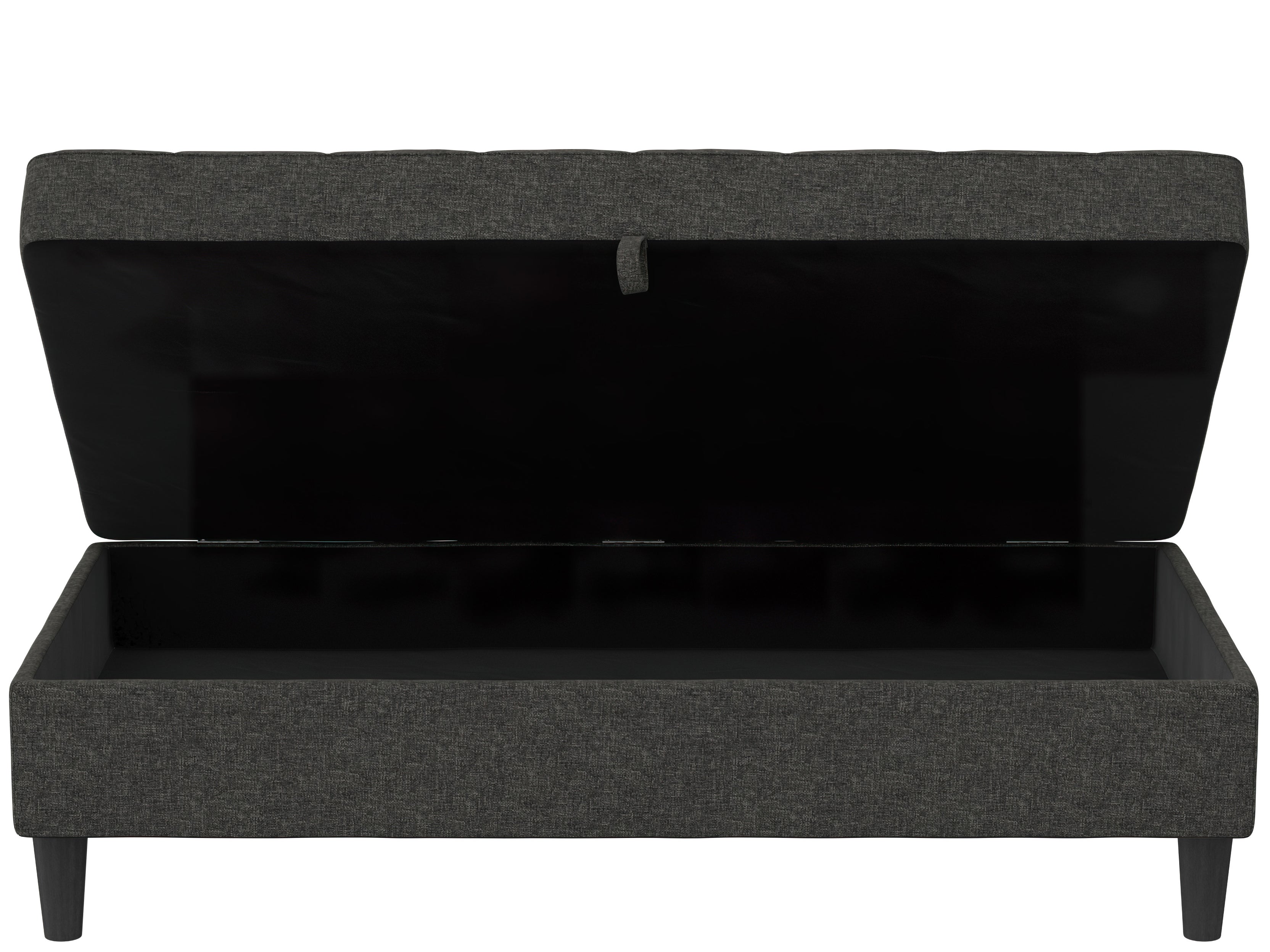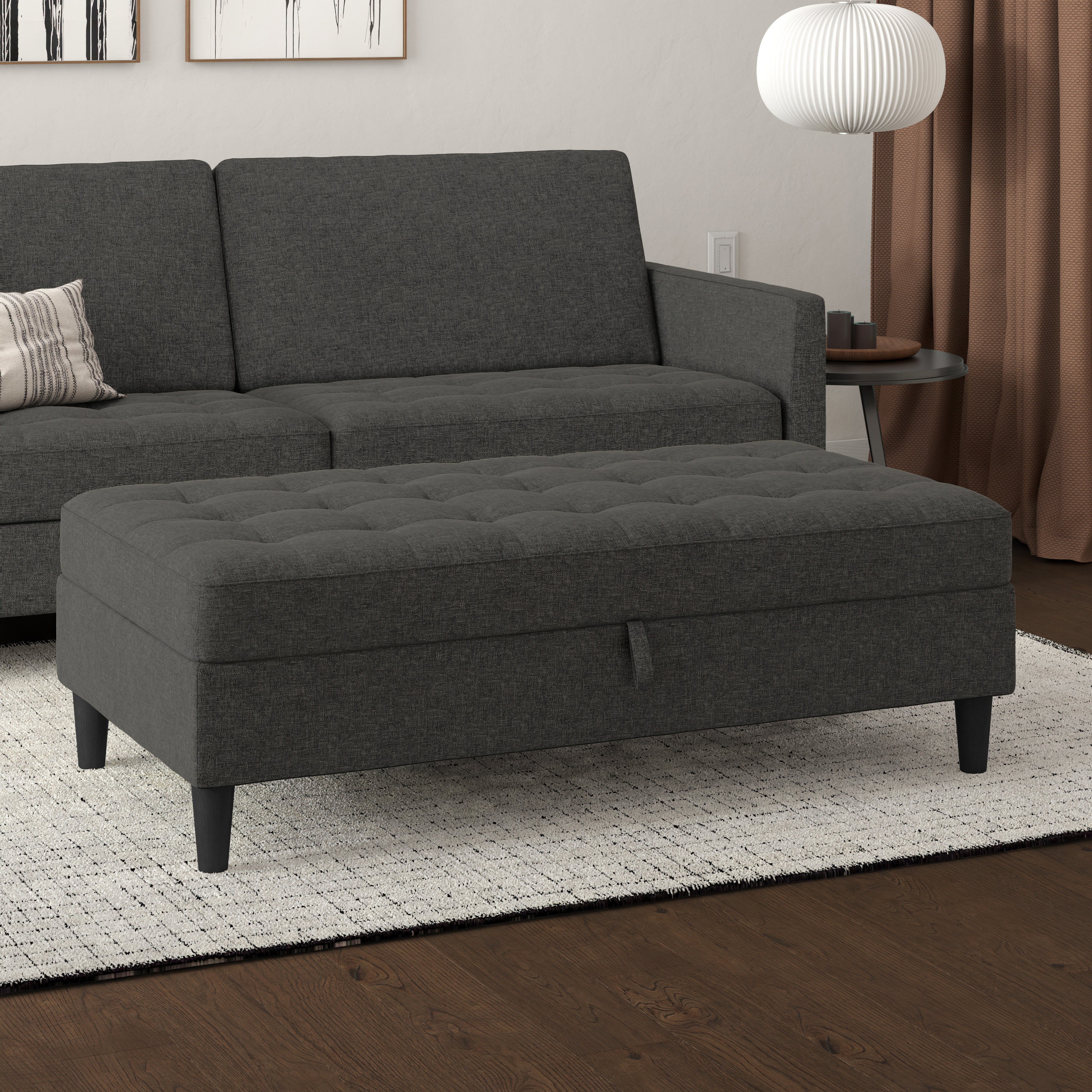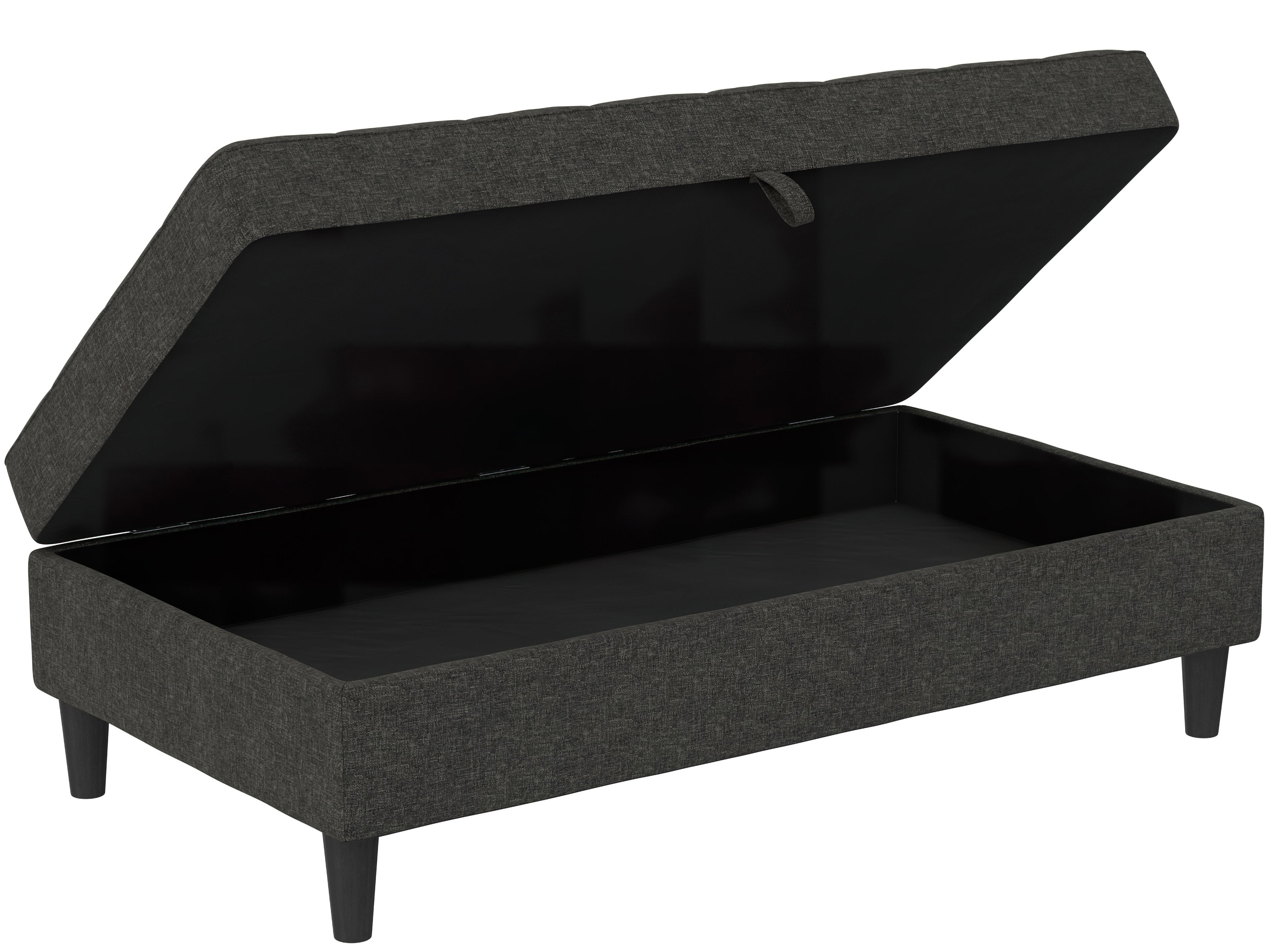 Denne skammel har en ren, moderne silhuet, der helt sikkert vil forankre din stue i en moderne stil. Det er bygget med konstrueret træ og højkvalitets dækmaterialer. Polstret er fyldt med skum for den helt rigtige støtte, mens du sidder for et ekstra strejf af komfort. Med integreret rum gør det muligt at opbevare genstande indeni, så de er nemme at finde, men ikke ligger frit rundt i rummet.