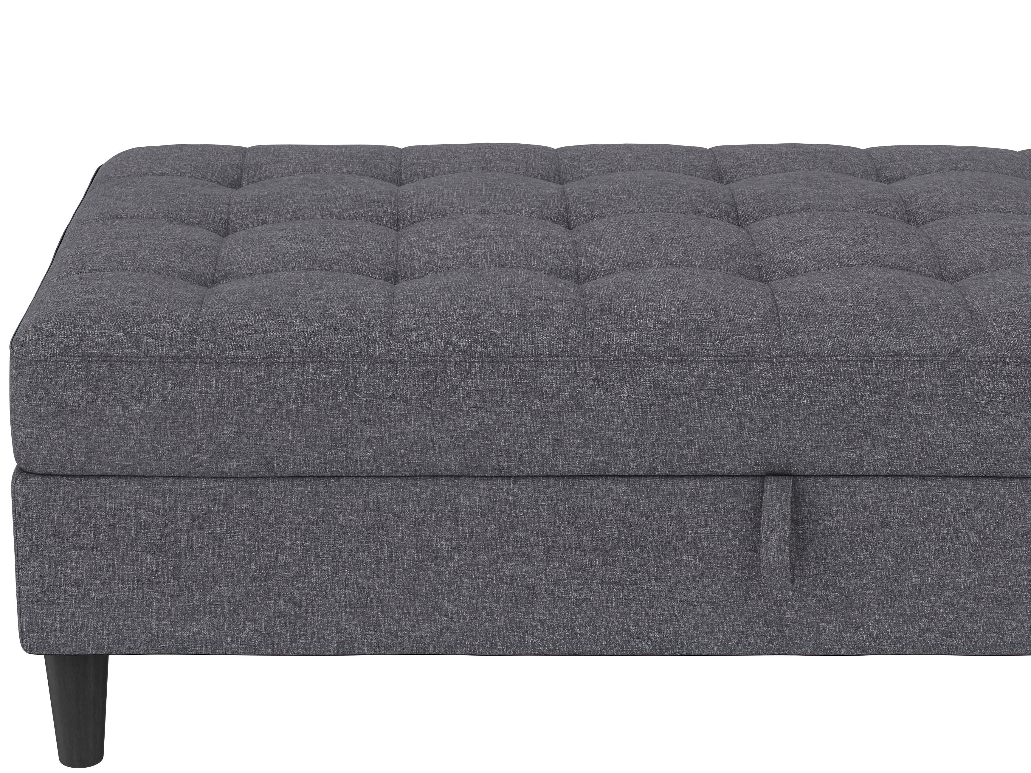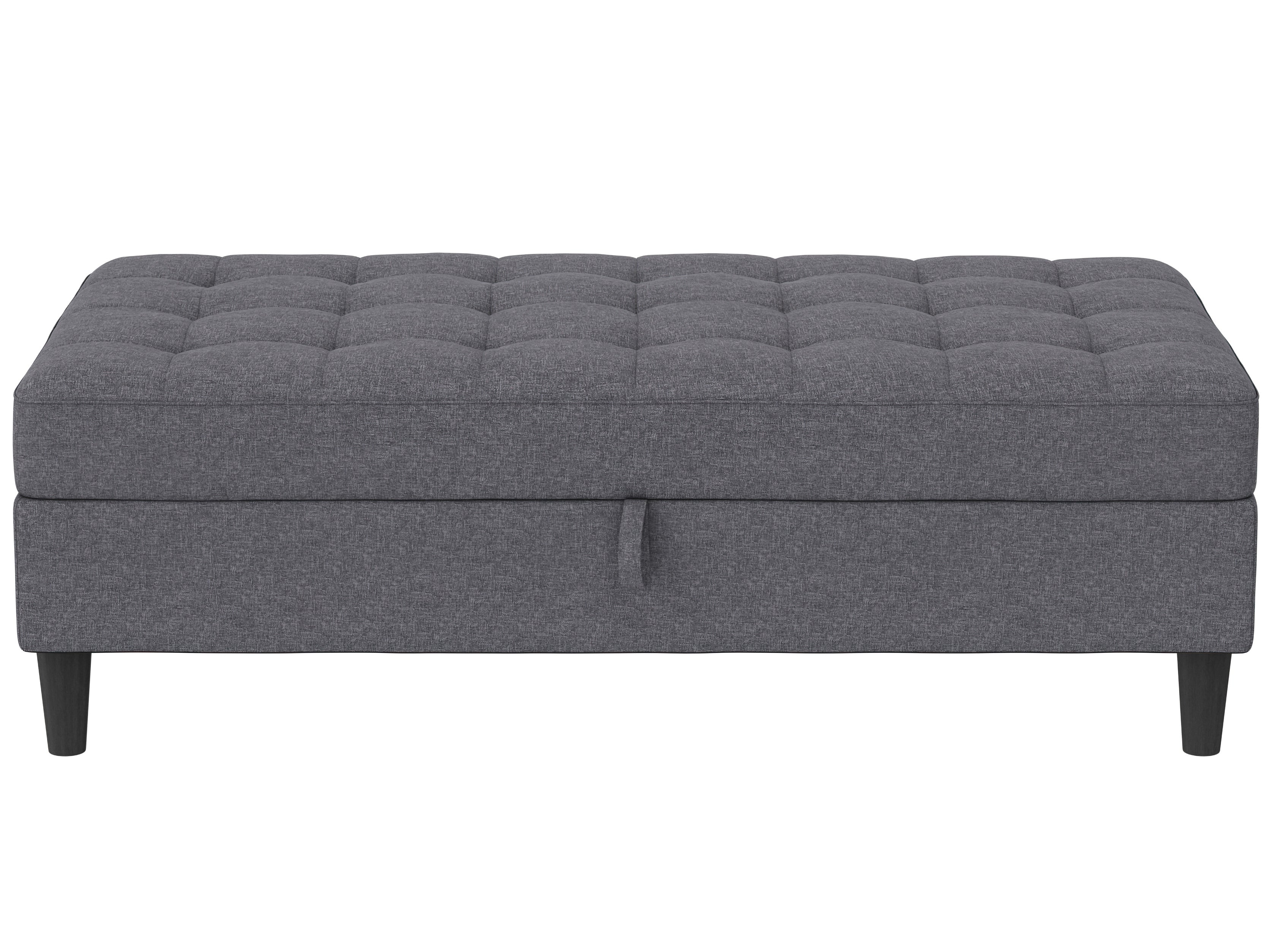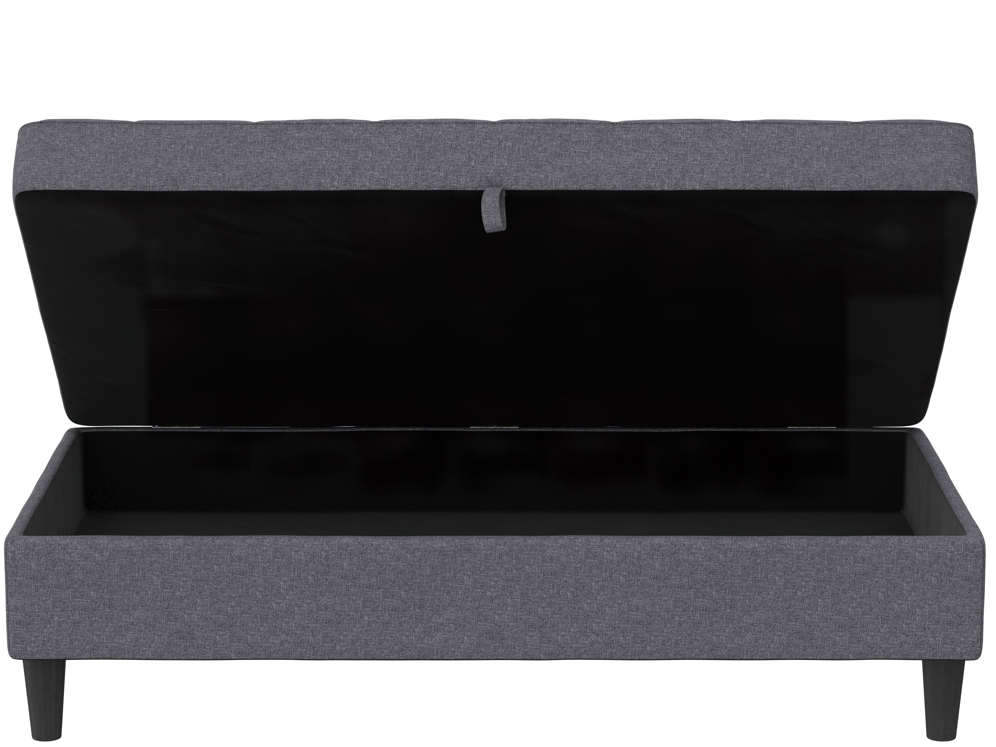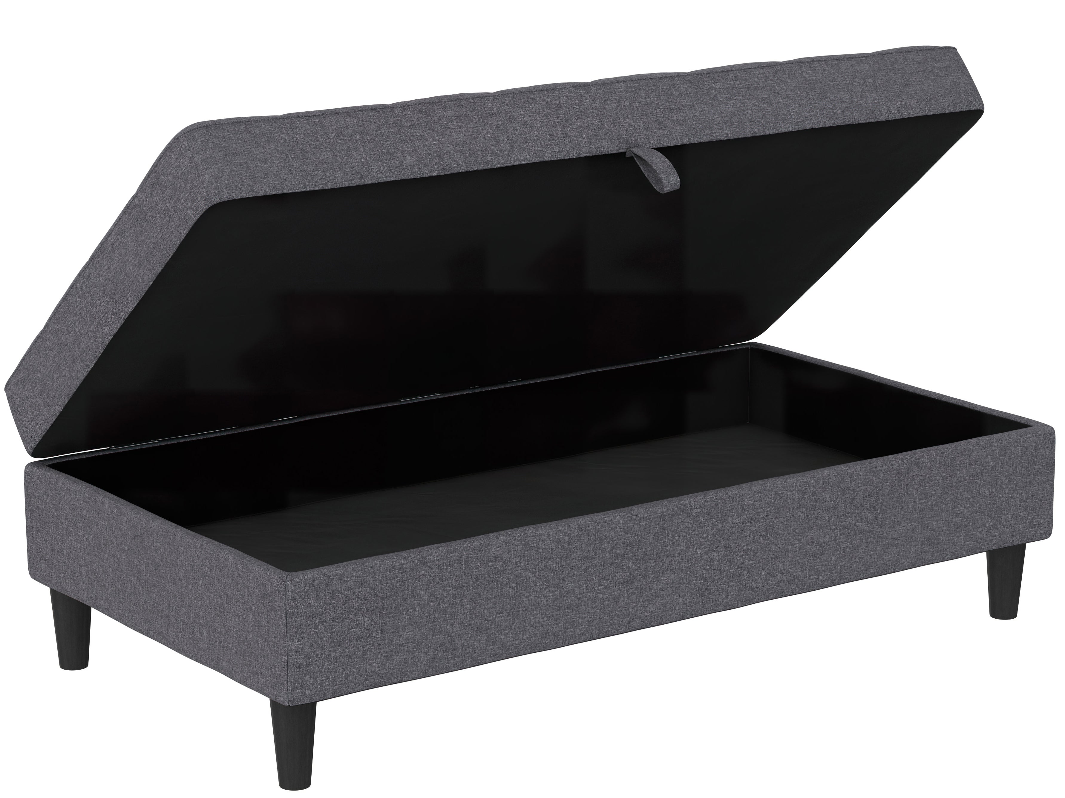 Denne skammel er en perfekt løsning til små rum med praktisk pladsbesparende opbevaringsrum. Den ekstra opbevaringsplads kan bruges til at lægge tæpper puder film eller brætspil. Den er lavet af praktisk polstringsmateriale og 4 træben for en robust struktur. Det polstrede sæde giver ekstra komfort. Puffen kan nemt samles med den medfølgende hardwaretaske. Med tidløst design er denne skammel let at mikse og matche med alle indretningsstile i dit værelse.