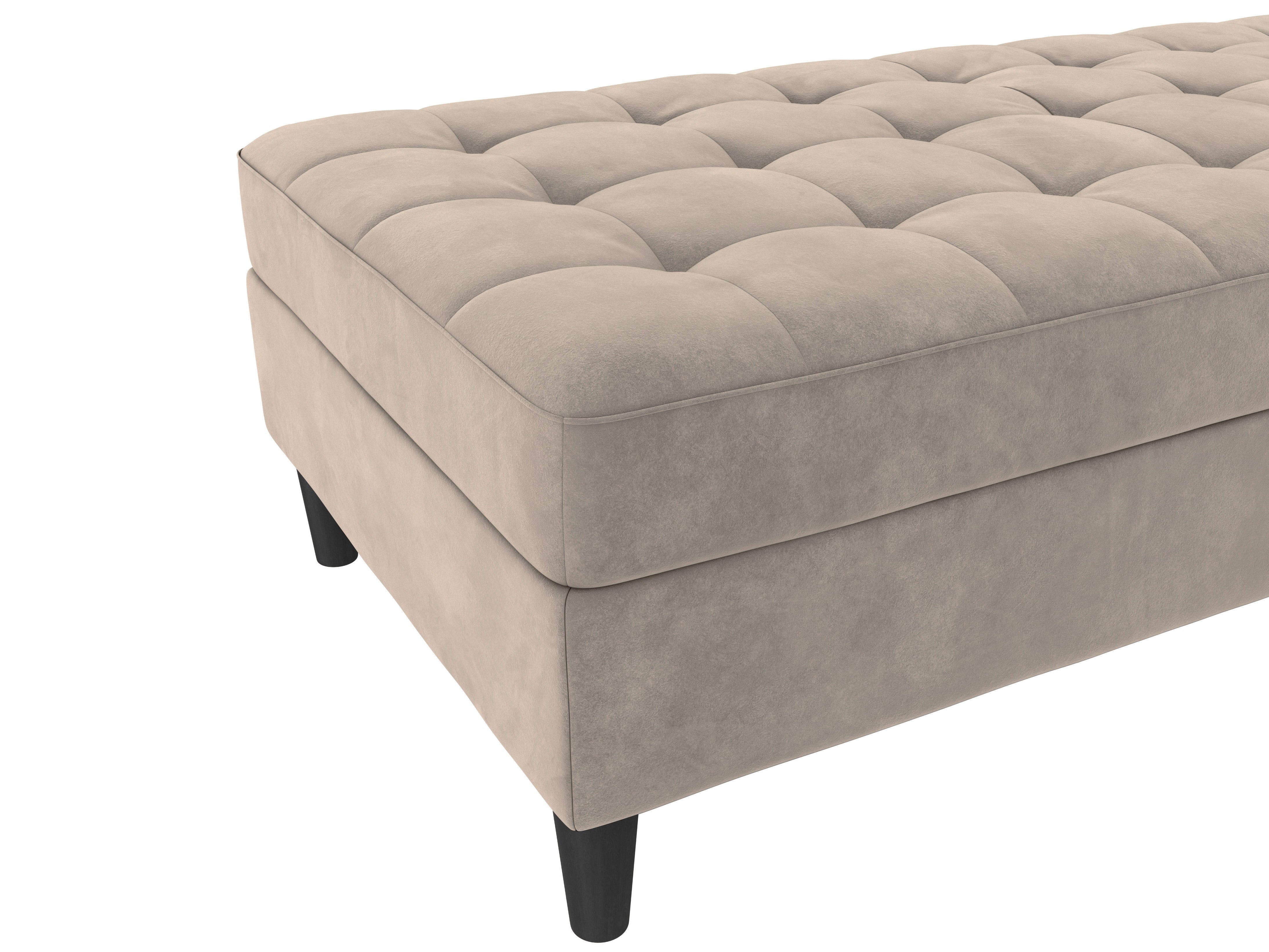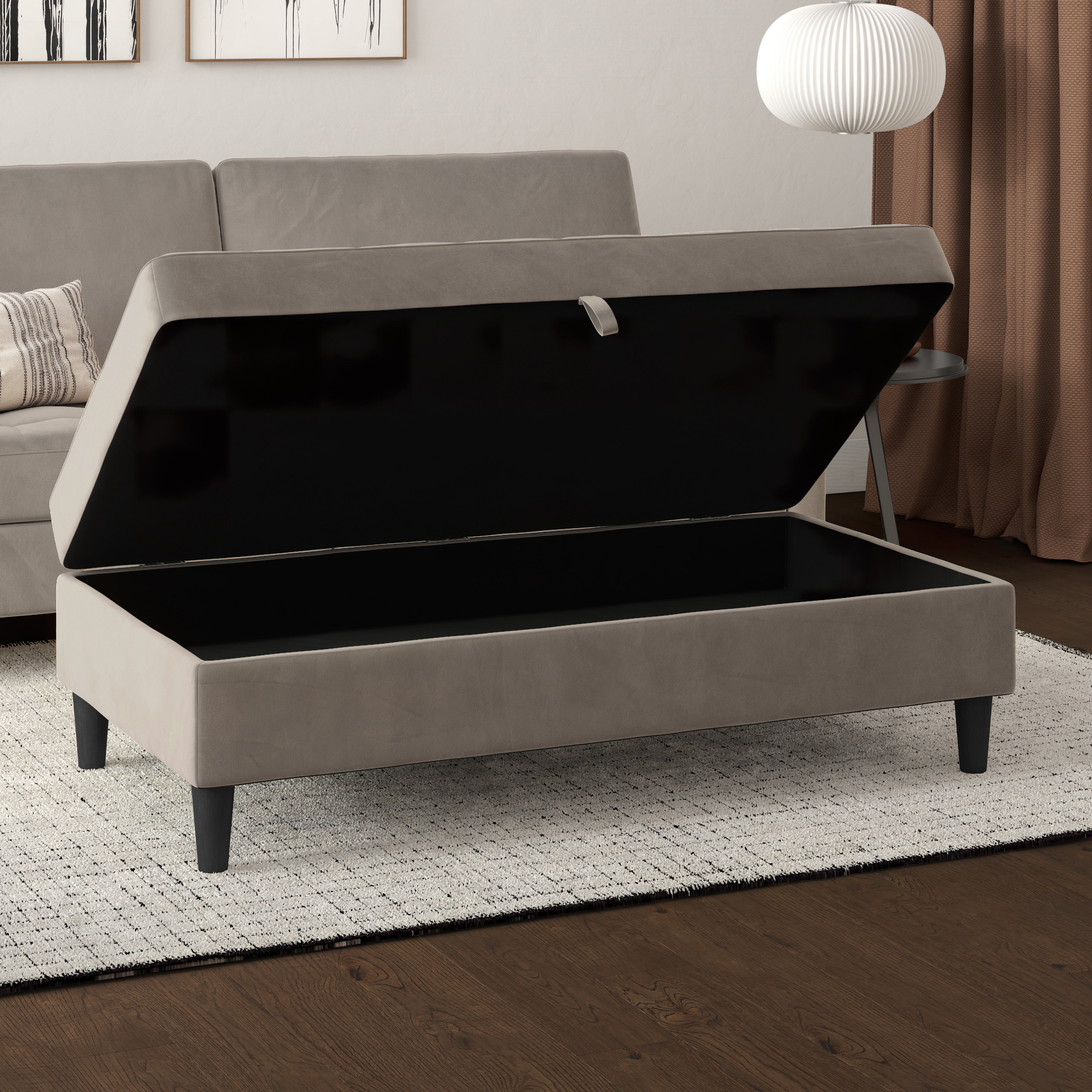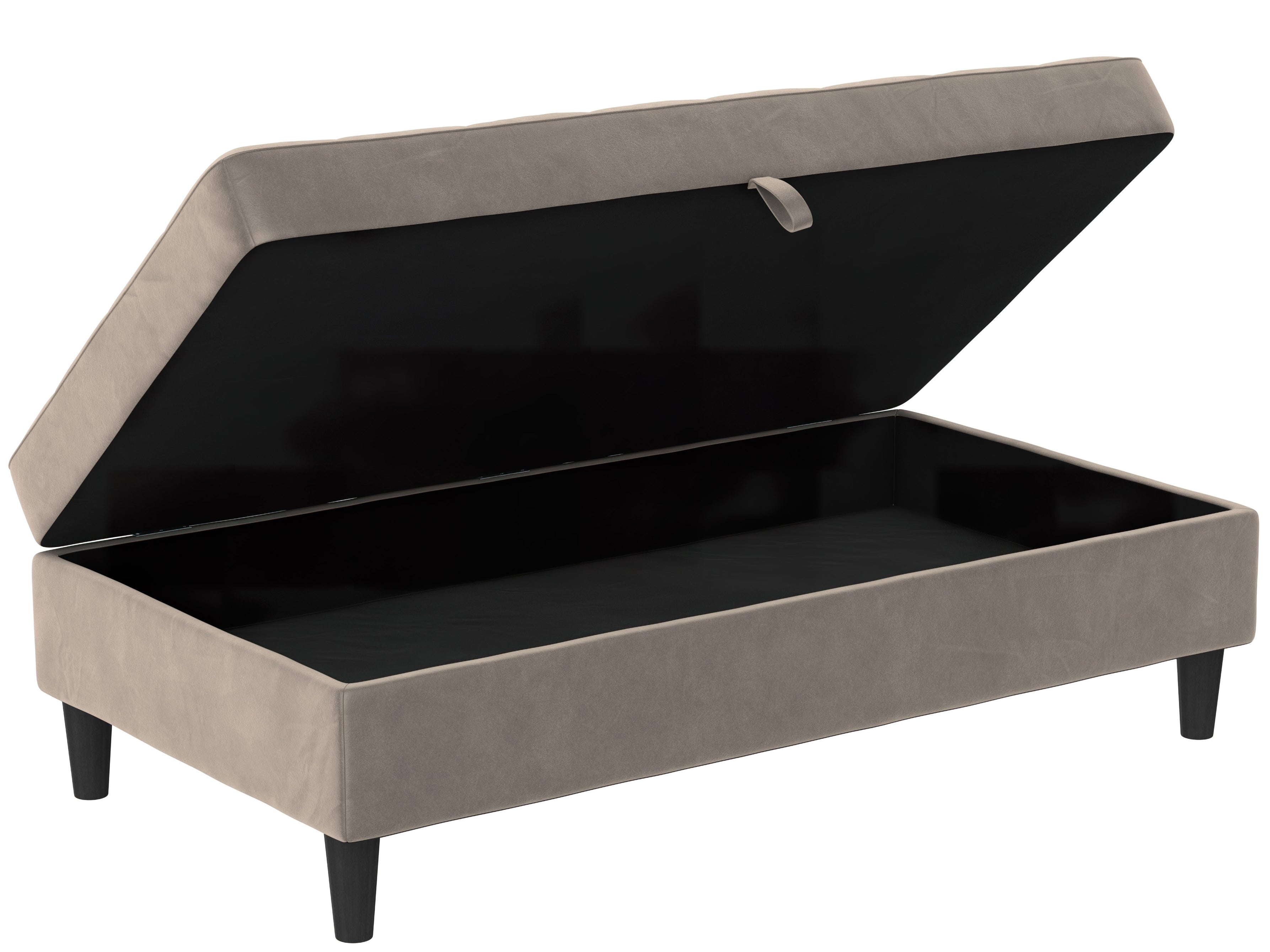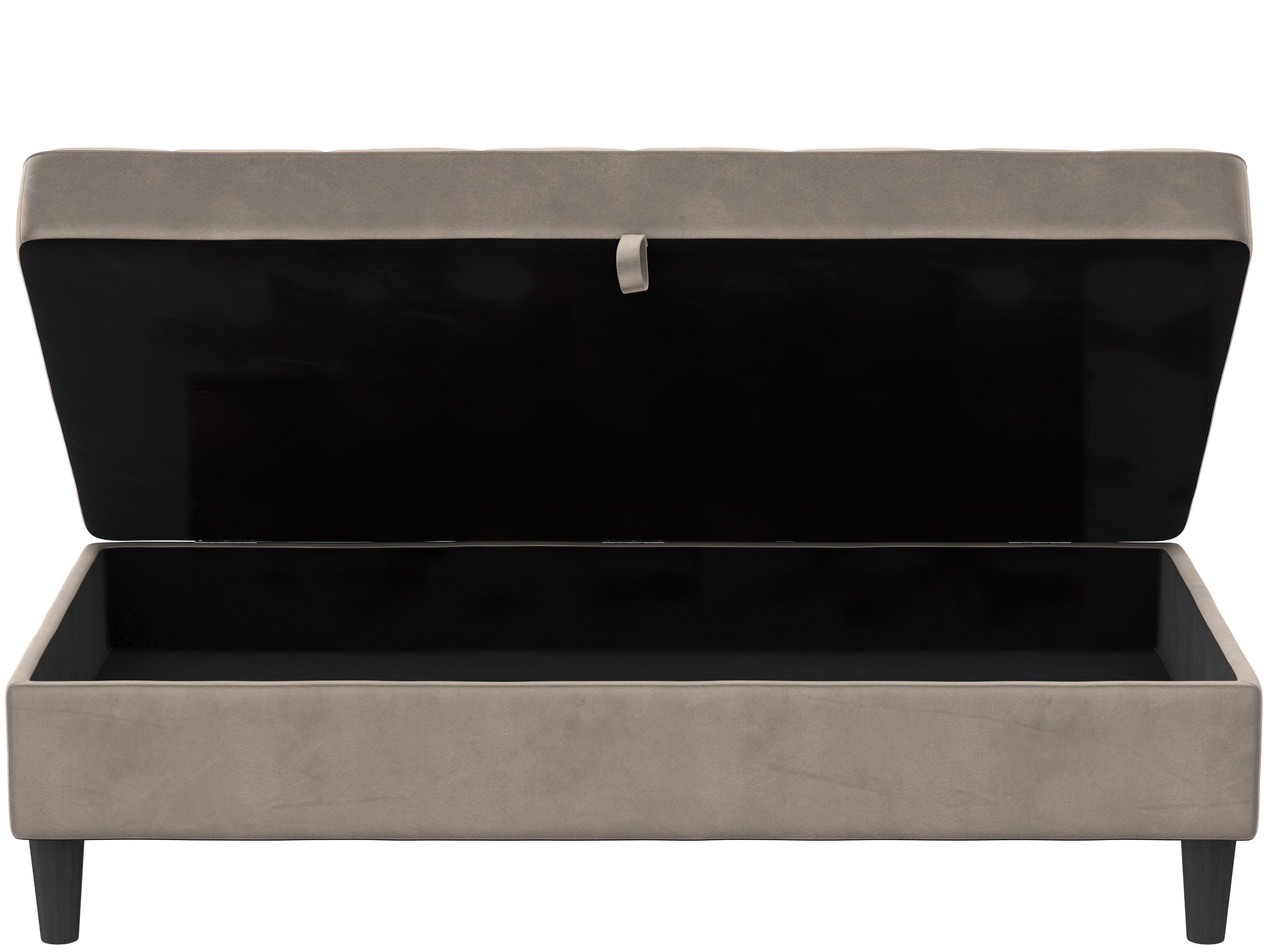 Denne skammel er en perfekt løsning til små rum med praktisk pladsbesparende opbevaringsrum. Den ekstra opbevaringsplads kan bruges til at lægge tæpper puder film eller brætspil. Den er lavet af praktisk polstringsmateriale og 4 træben for en robust struktur. Det polstrede sæde giver ekstra komfort. Puffen kan nemt samles med den medfølgende hardwaretaske. Med tidløst design er denne skammel let at mikse og matche med alle indretningsstile i dit værelse.