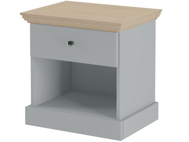 Det moderne sengebord giver opbevaringsplads i soveværelset. Natbordet præsenterer sig selv i en attraktiv landhusstil. Møblerne har et smukt metalhåndtag. I små soveværelser er natbordet en praktisk berigelse. Udover et smagfuldt look kan sengebordet også score med kvalitet. Den er lavet af FSC®-certificeret konstrueret træ og er let at rengøre, hvis det er nødvendigt.