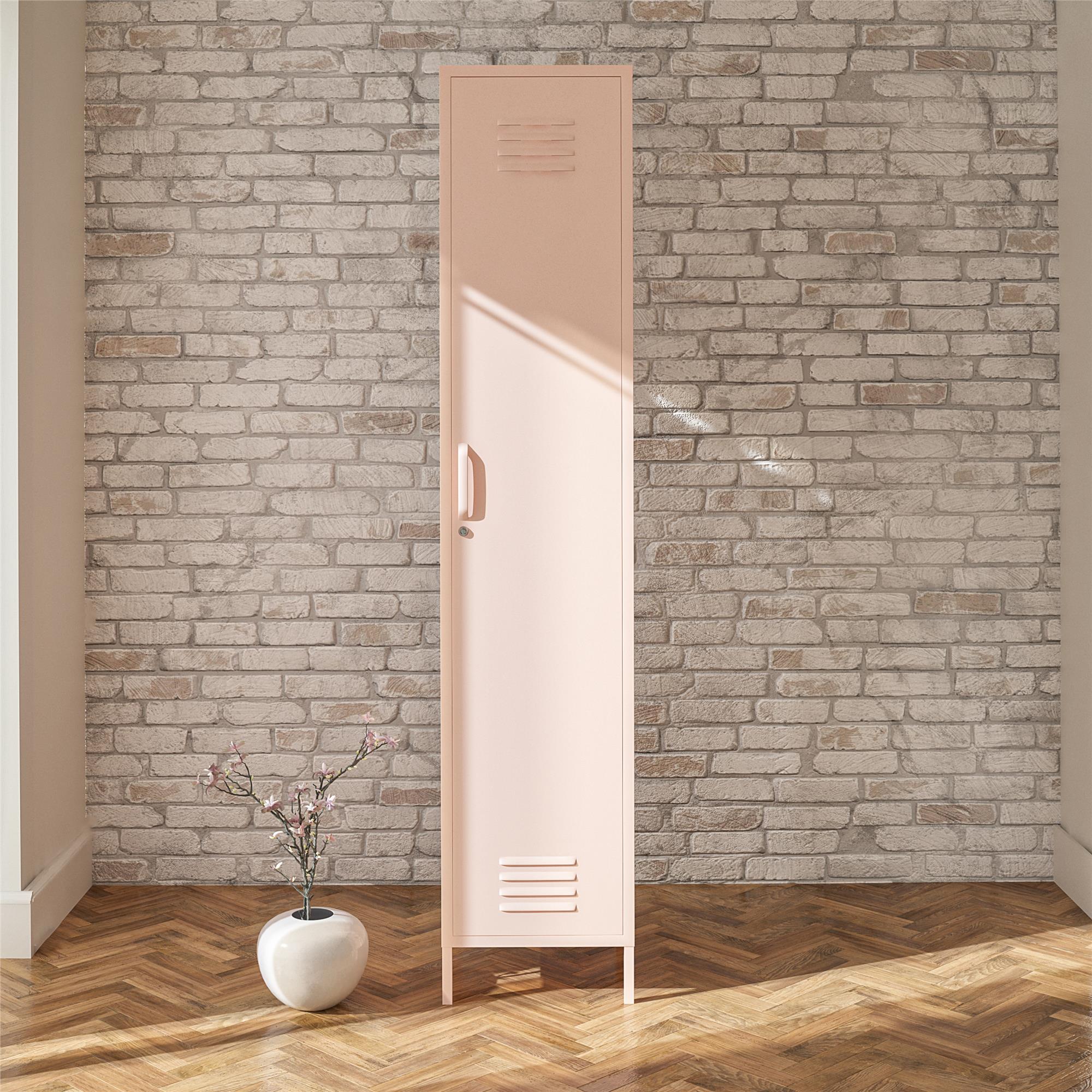 Opdag den ideelle opbevaringsløsning til ethvert rum med det enkelte metalskab til opbevaring. Lavet af pulverlakeret metal giver dens lyserøde farve et rent moderne look, og metalmaterialet gør det nemt at rengøre spild med en fugtig klud. De fire hylder, der hver kan bære cirka 6 kg, er perfekte til opbevaring af alt fra rengøringsartikler til køkkenudstyr. Døren har en lås til sikker opbevaring. Der medfølger et vægankersæt for at forhindre vælteskader. Skabet sendes fladt og kræver montering med to voksne anbefalet til opgaven.