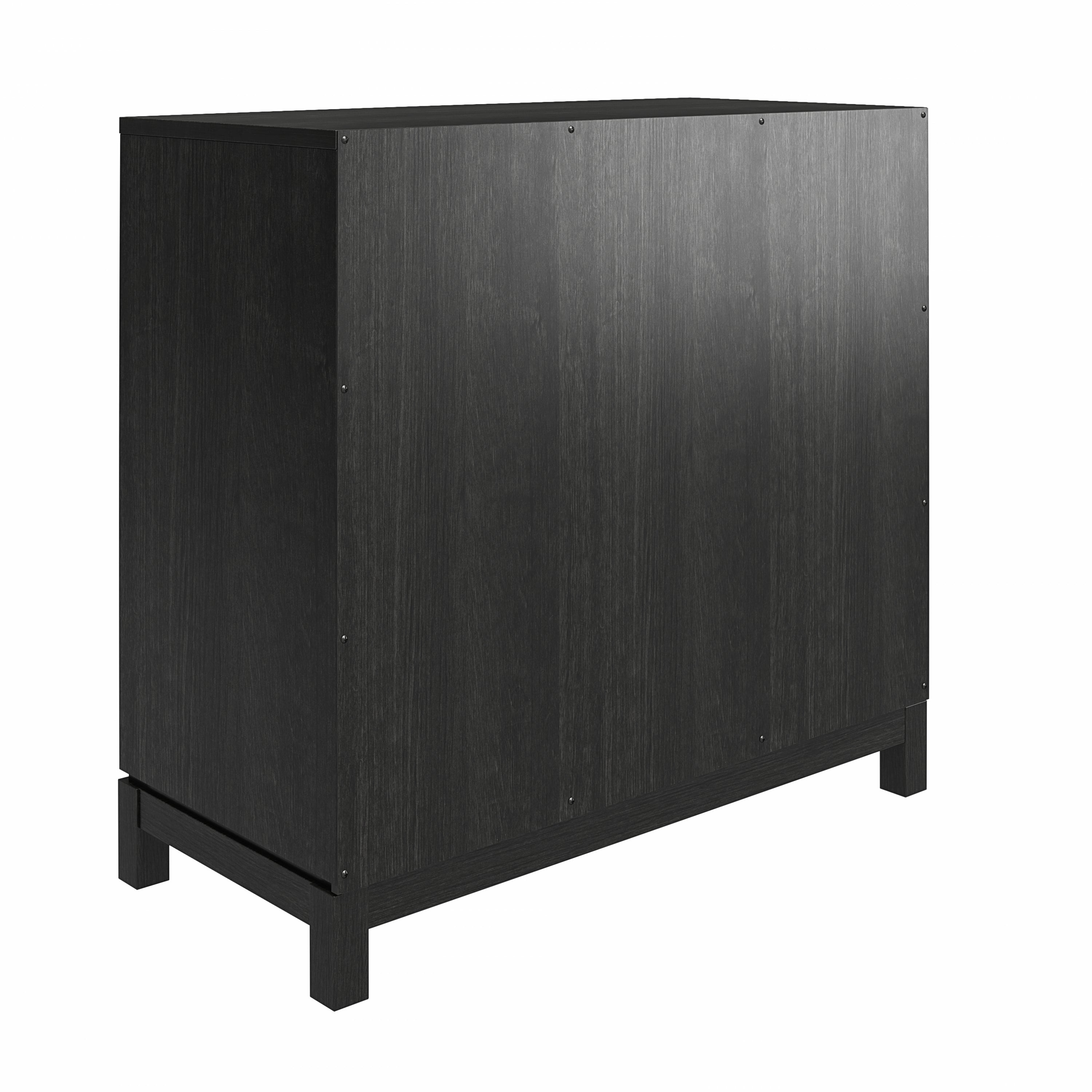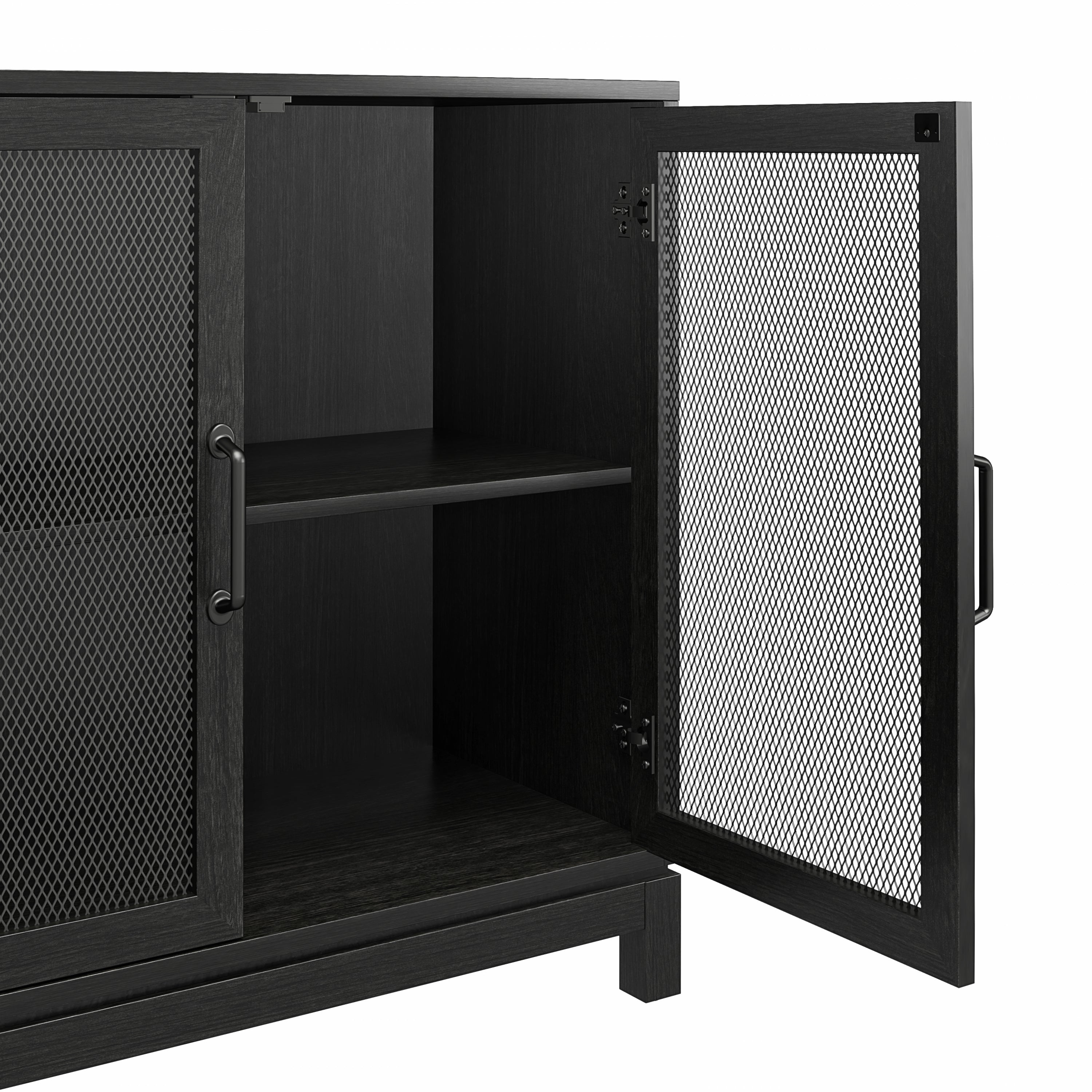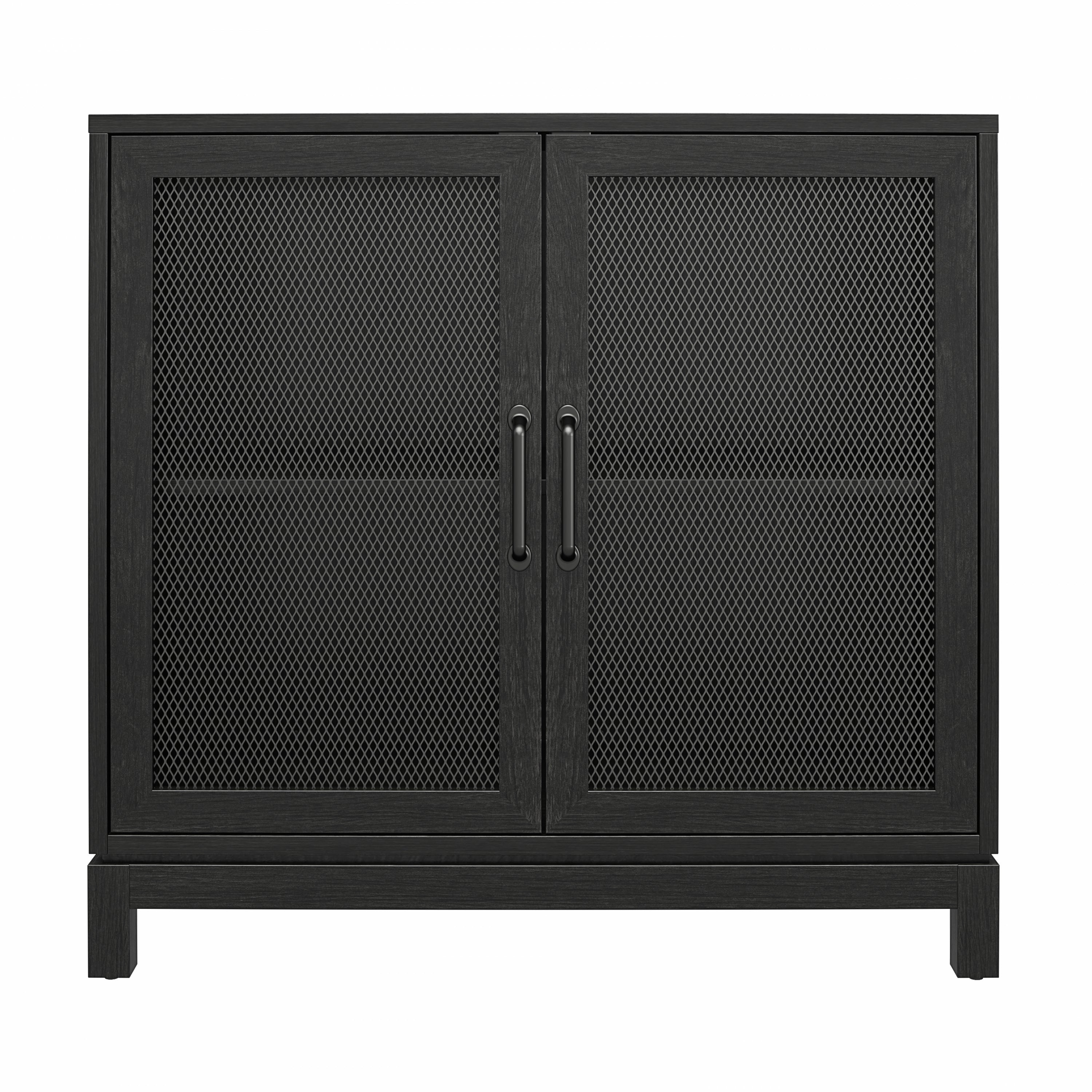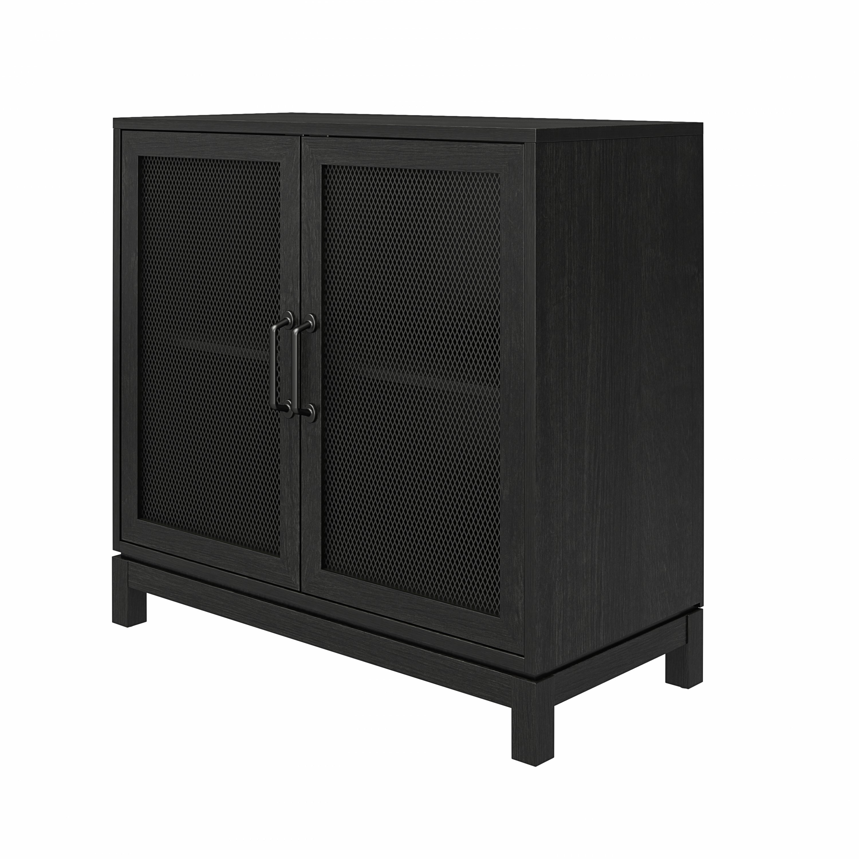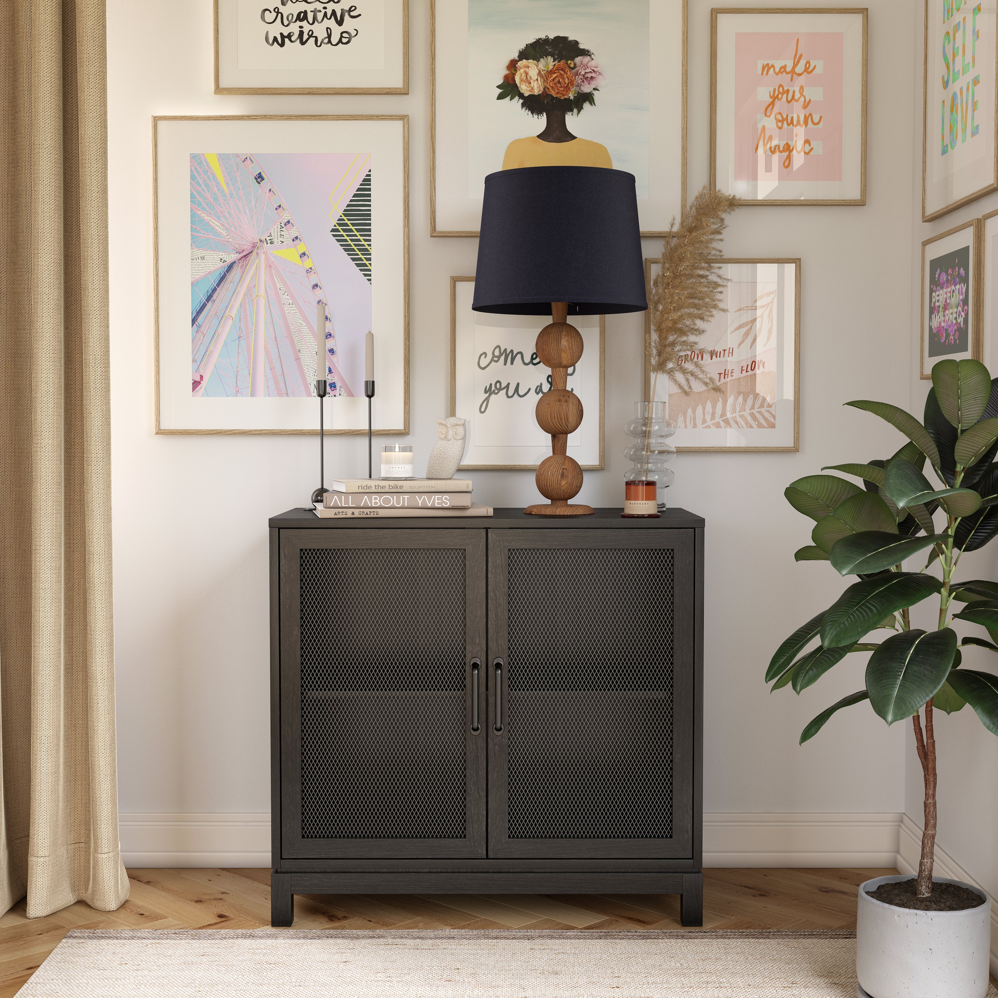 Oplev kreativ luksus, når du udsmykker dit rum med Tess Accent Cabinet. Glat sort eg på sorte accenter skaber den perfekte baggrund for, at dit eget fantasifulde udtryk kan komme til live. Vælg mellem levende til afdæmpet tilbehør til at opbevare bag de tætvævede mesh-døre og pynt toppen med metaldekor eller grønt for det lille ekstra. Bag kulisserne er der to rummelige hylder, en fast og en justerbar, så du kan ændre højden for at imødekomme dine individuelle opbevaringsbehov. Leder du efter noget til at fylde en mere omfattende plantegning? Placer to Tess Accent-skabe side om side for at skabe en smuk credenza. Omhyggeligt fremstillet af slidstærkt lamineret MDF-spånplade pulverlakeret metal og europæiske kvalitetshængsler for en jævn åbning og lukning hver gang.