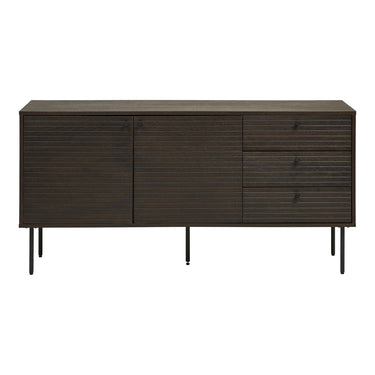 Skænk, 3 skuffer, 2 låger, egefiner, smoked, sorte metalben, 150x40x74 cm, ,