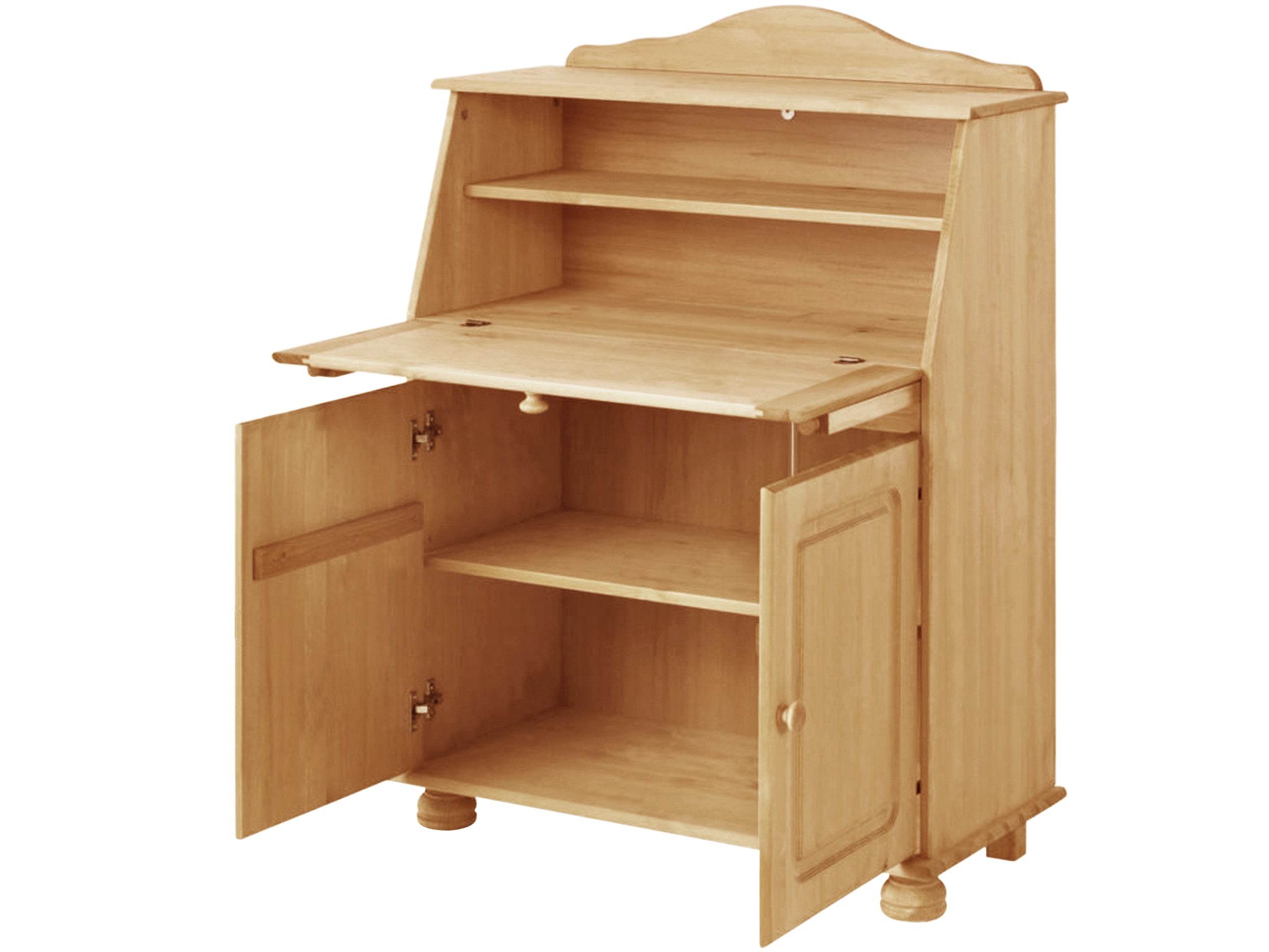 Skrivebordets form og design er landlig og formidler naturlighed med et strejf af eksklusivitet. Trælooket inklusive årer er synligt i alle farvevarianter, der kan bestilles. Den kombinerer fredelig komfort med praktisk brug. Den kan bruges i stuen til at opbevare en række ting. Indeni er der rigelig lagerplads til arkivbøger og mere. Det nederste og øverste område er opdelt af flytbare hylder. Klappen flugter fremad for at forvandle den til et lille, men funktionelt skrivebord. Den er stabil og robust og sikrer varig nydelse.