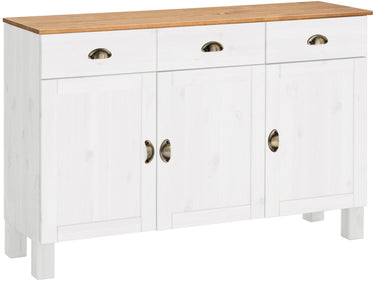 Med sit tidløse design komplementerer êOslo« køkkenunderskabet dine egne fire vægge. Med sit naturlige og enkle udseende kan den kombineres med mange indretningskoncepter. Designet afrundes af elegante metalhåndtag. Underskabet har flere låger, bag hvilke der er opbevaringsplads til grydeskåle og andet køkkengrej. Skufferne ovenfor giver plads til bestik og duge. Køkkenskabet er lavet af FSC®-certificeret massivt fyrretræ. Med talrige opbevaringsmuligheder til køkkenredskaber er dette køkkenunderskab fra os i et tidløst design.