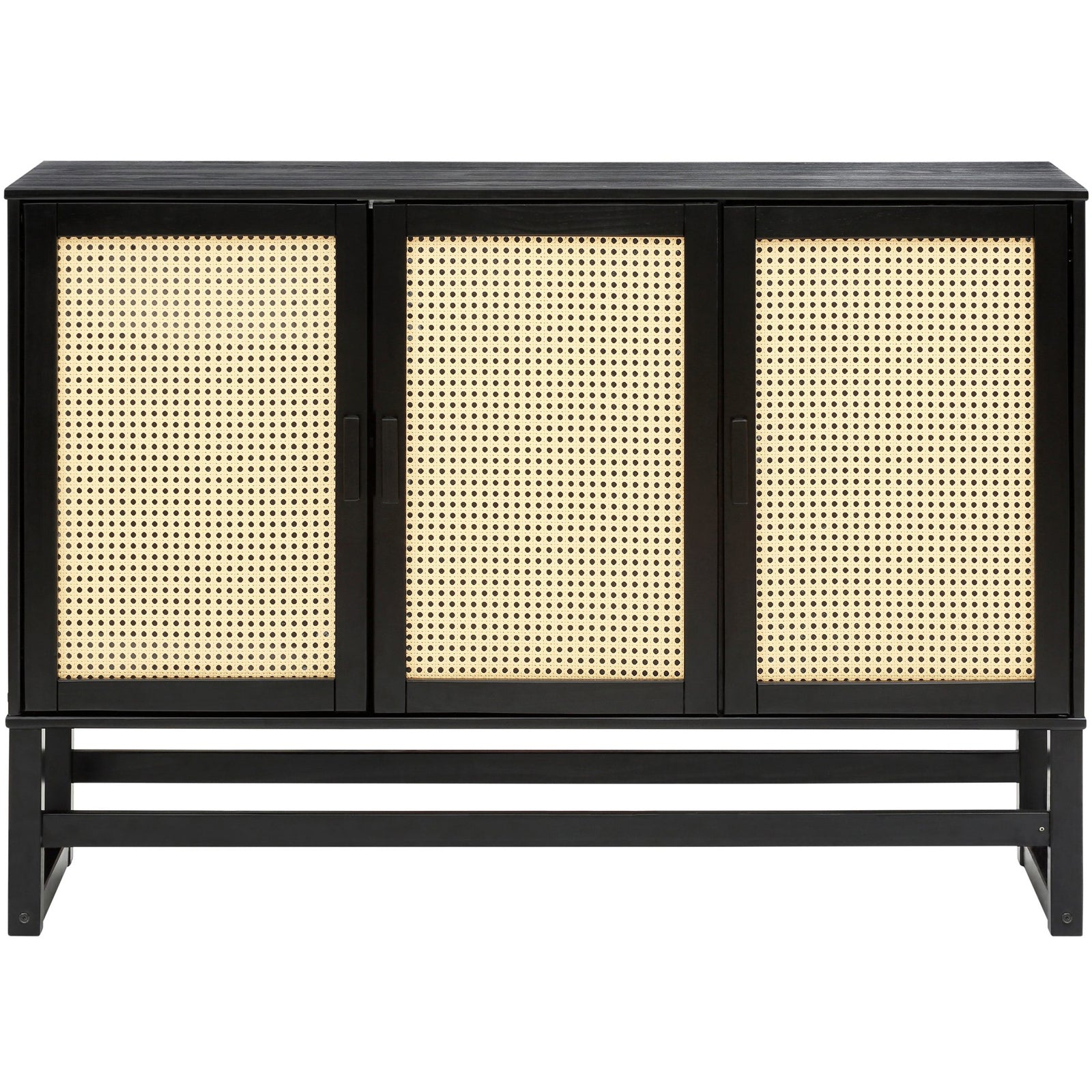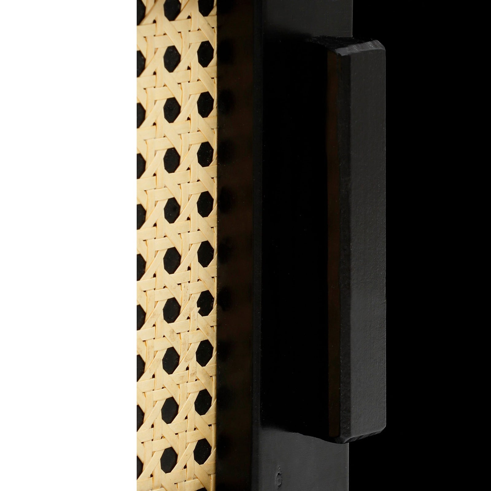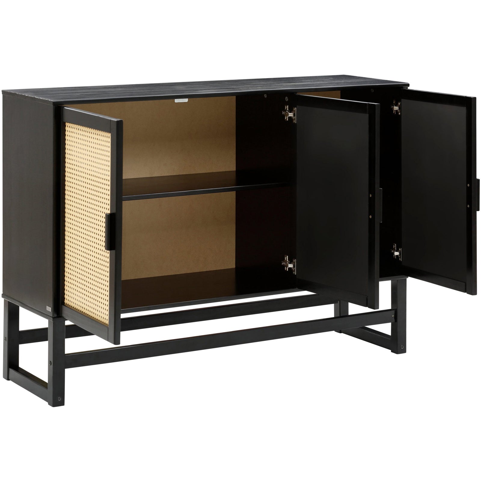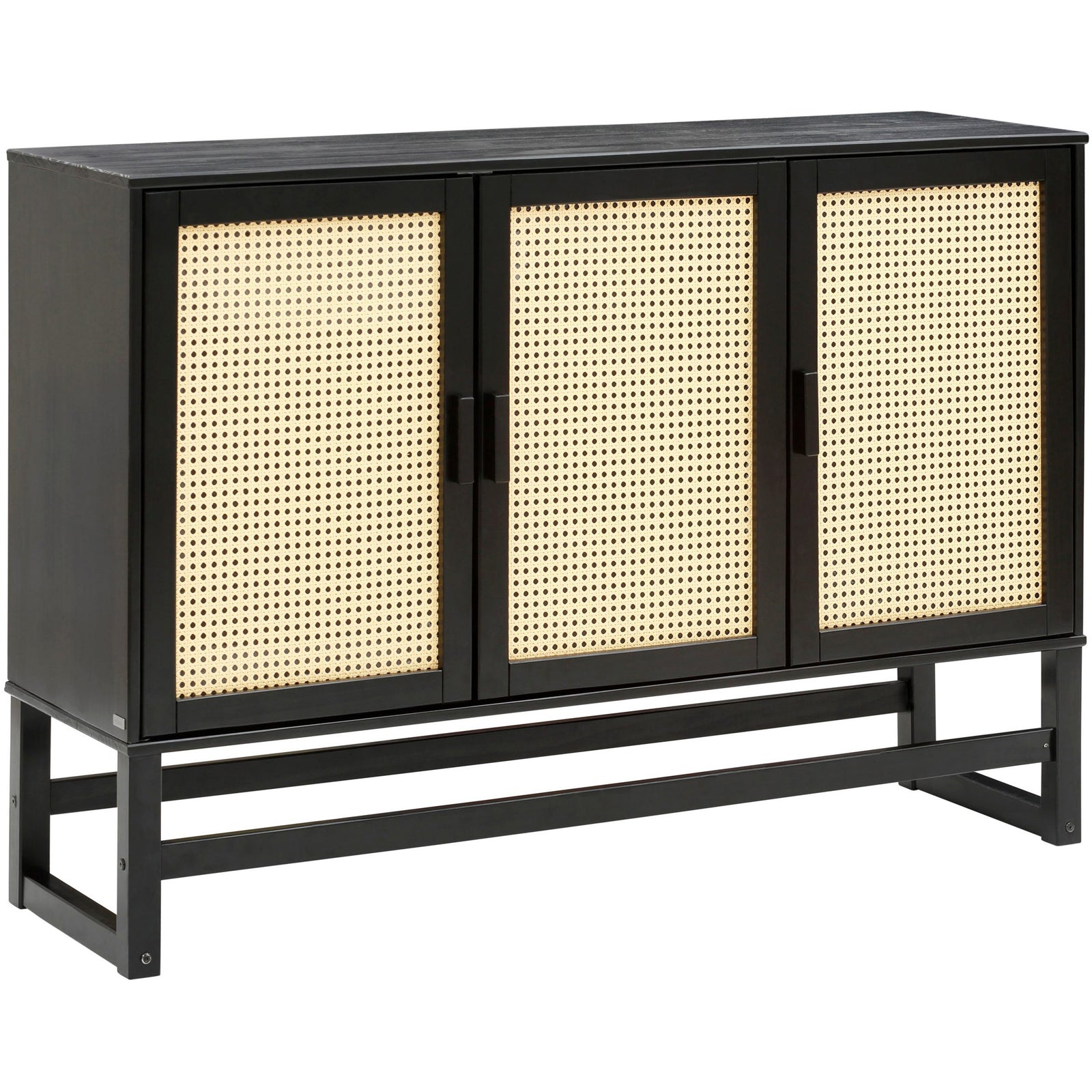 Den højkvalitets skænk i landlig stil bringer højdepunktet til dit værelse med masser af charme. Den imponerer med sit stilfulde design den smarte rattanvævning på dørfronterne og stanghåndtagene lavet af delvist massivt træ. Det giver nok nyttig opbevaringsplads bag dørene til porcelæn eller bøger. Billeder vaser og dekorativt tilbehør kan placeres på hylden. Dette eyecatcher-møbel kan bruges i forskellige rum i stuen, soveværelset eller arbejdsområdet