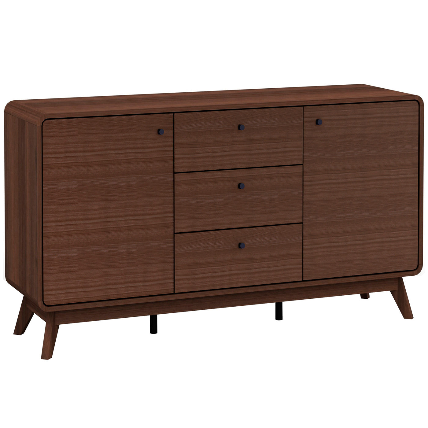 Skænk med 3 skuffer og 2 låger i valnødlook