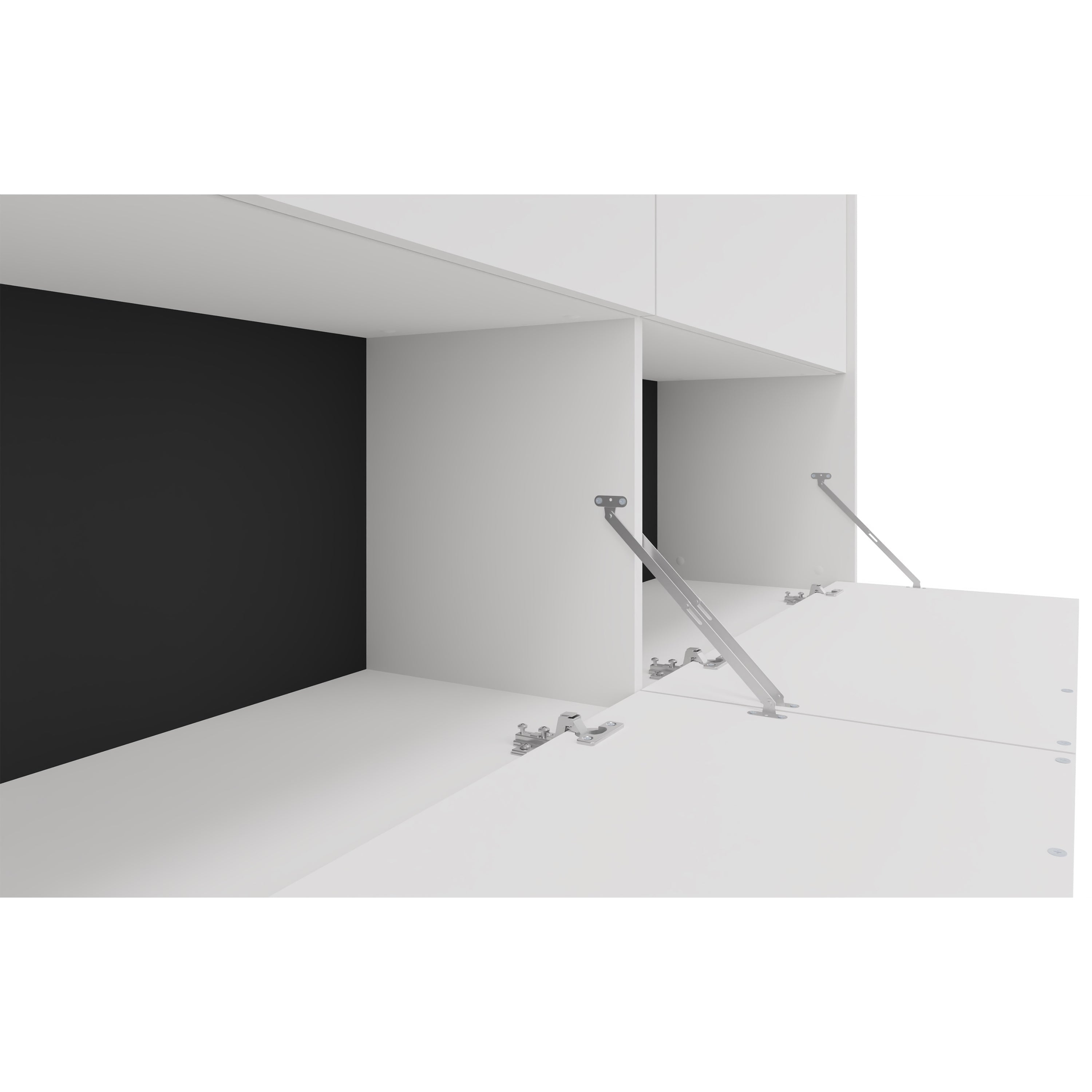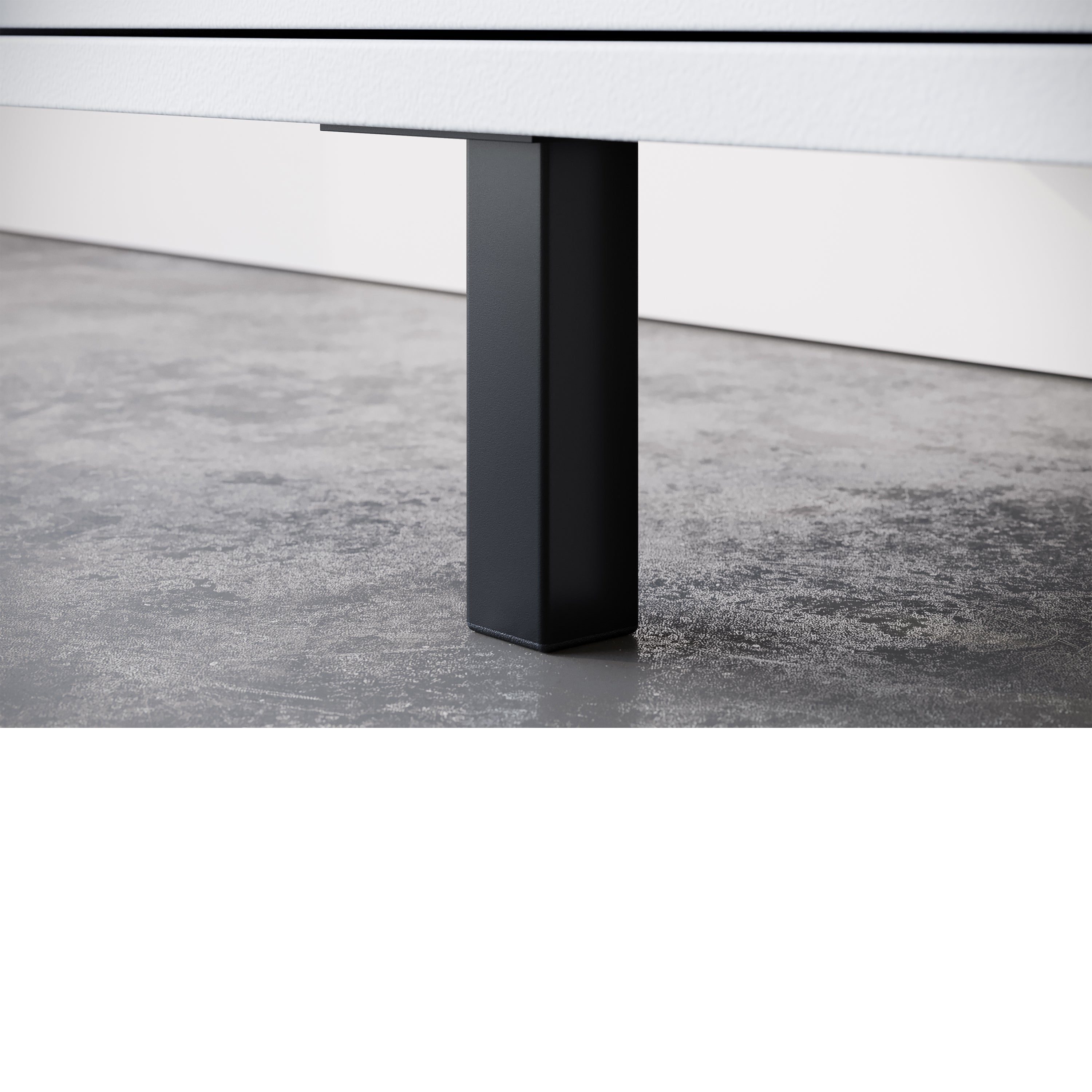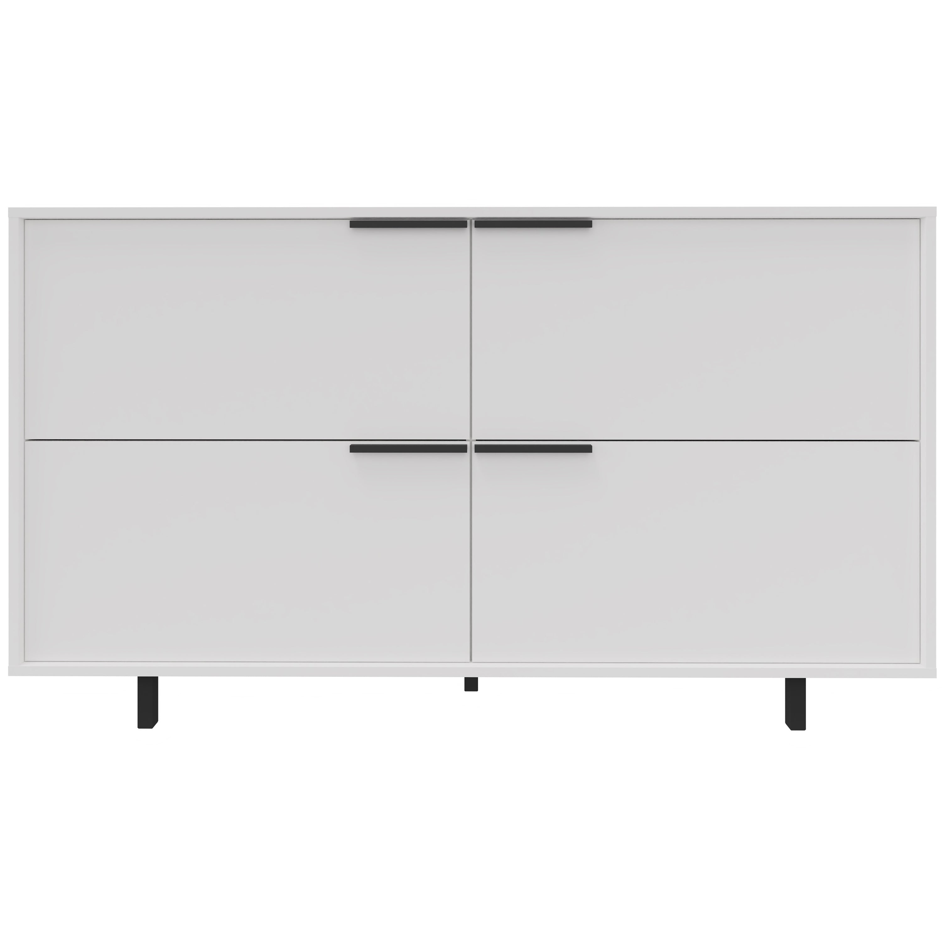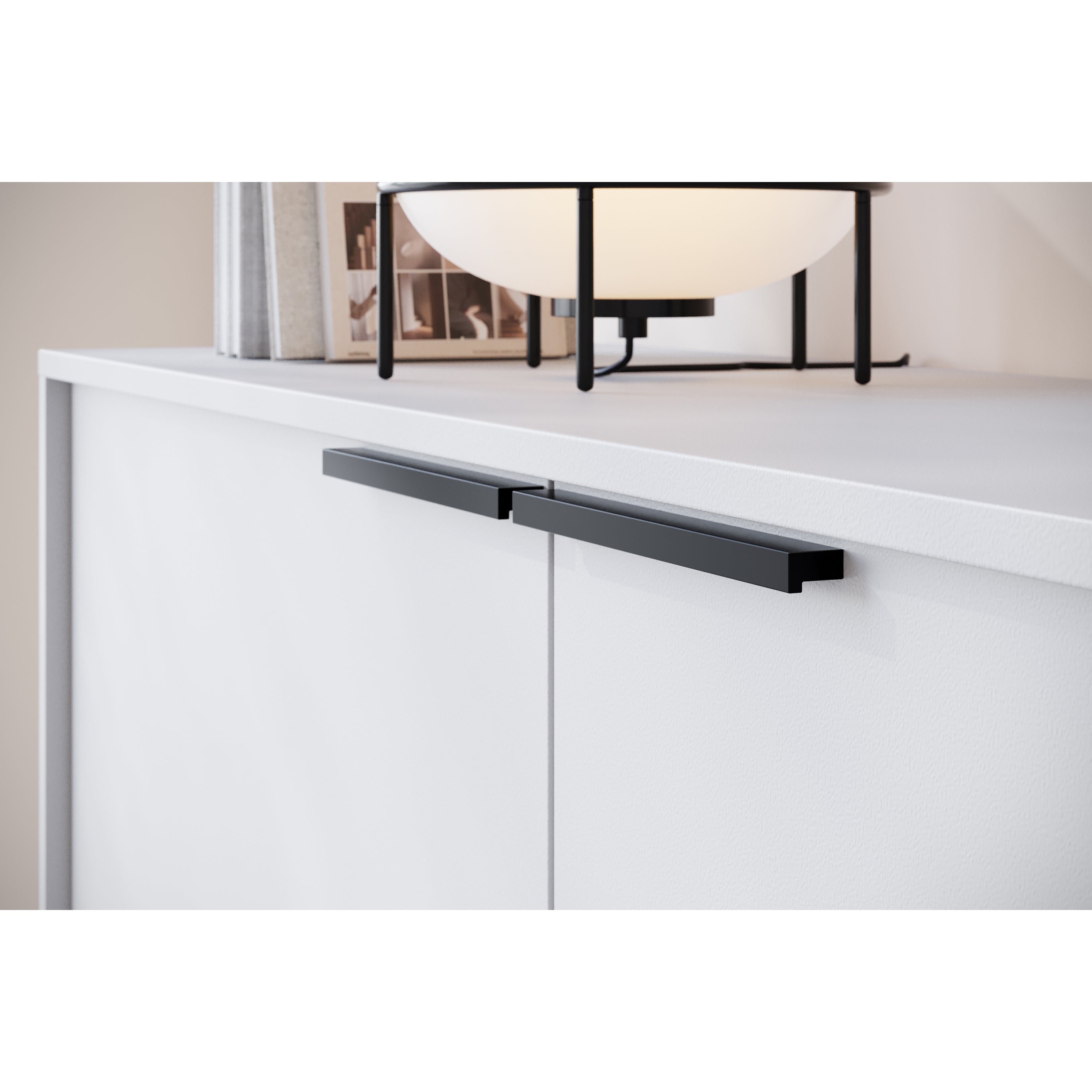 Denne skænk lavet af FSC-certificeret træ kombinerer kvalitet med stil. Dens hvide finish komplementerer ethvert rum. Med fire klapper giver den rigelig opbevaringsplads, mens de sorte plastikhåndtag giver en moderne accent. De sorte metalben sikrer ikke kun stabilitet, men tilføjer også et slankt, moderne look. Denne skænk måler cirka 150 cm i bredden, 38 cm i dybden og 86 cm i højden, og passer perfekt ind i forskellige rum fra stuer til spisepladser. De fem ben øger dens stabilitet, hvilket gør det til et pålideligt møbel. Denne skænk er både praktisk og stilfuld, der problemfrit smelter ind i forskellige interiørstile og forbedrer dit hjems overordnede æstetik.