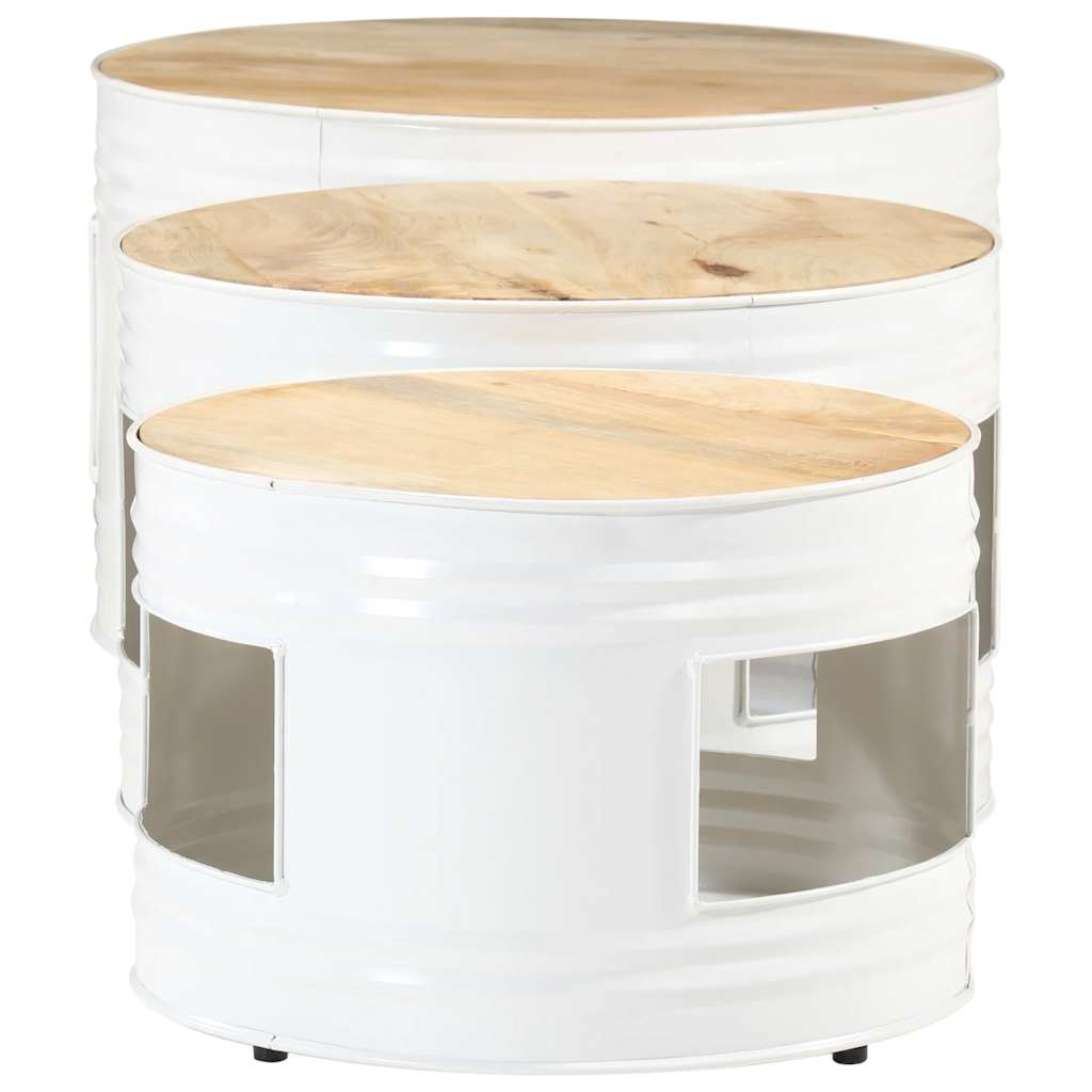 sofaborde 3 stk. trommeformet massivt ru mangotræ