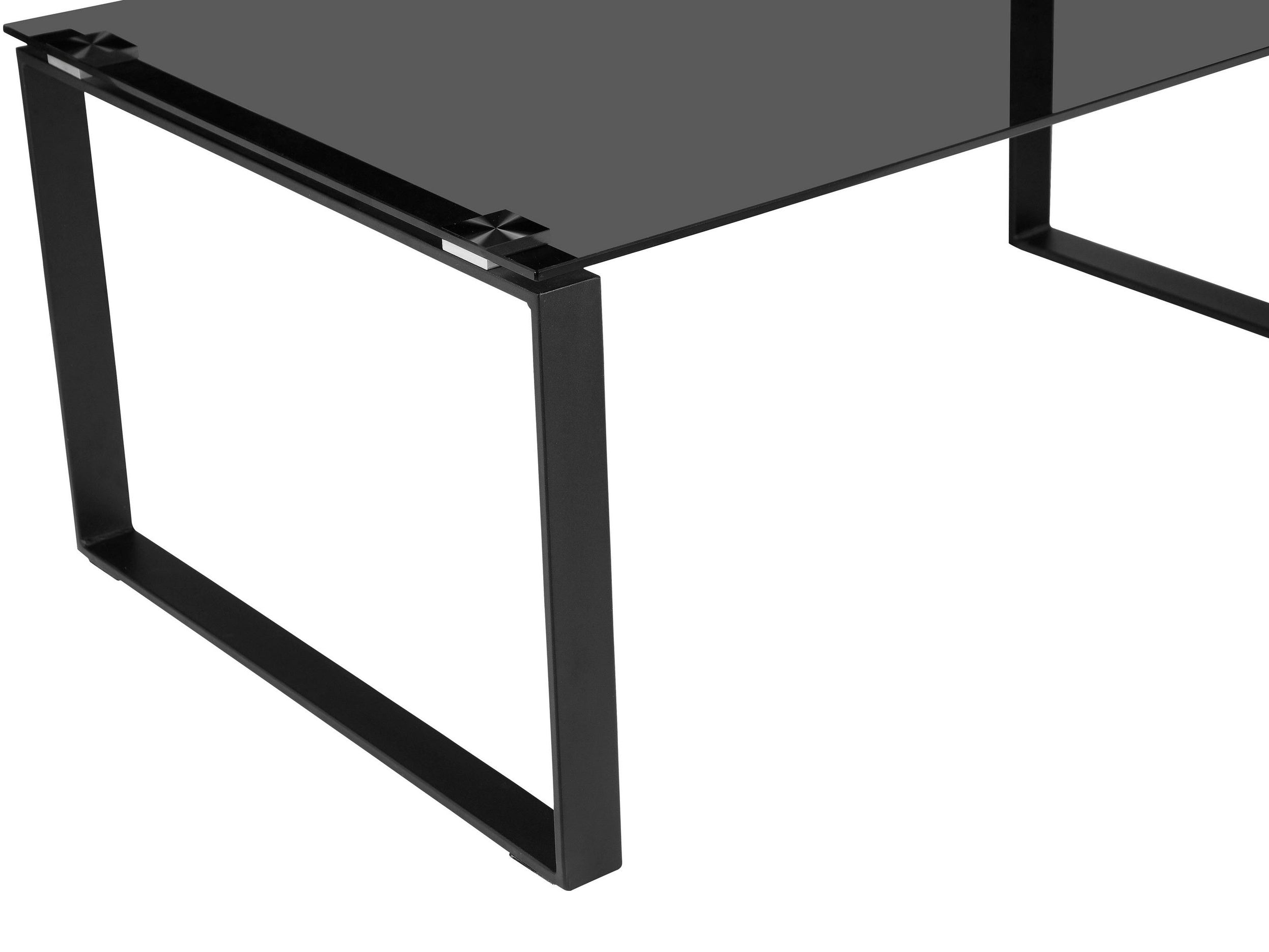 Sofabordet med sit minimalistiske design skaber en stilfuld stemning i dit hjem. Den har en bordplade lavet af farvet og hærdet glas, hvilket gør den til et rigtigt blikfang. Det smagfulde look er understreget af en metalramme. Bordet passer nemt ind i det eksisterende rumkoncept. På hylden er der masser af plads til magasiner, blomstervaser og drikkevarer. Sofabordet har en letpleje overflade for hurtig og nem rengøring.