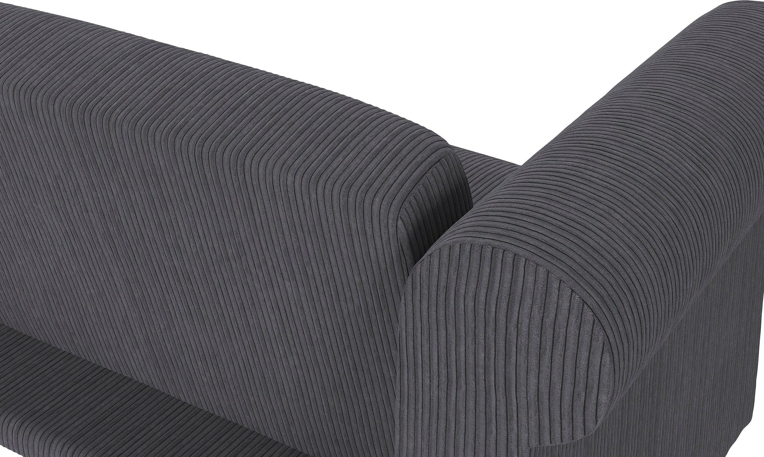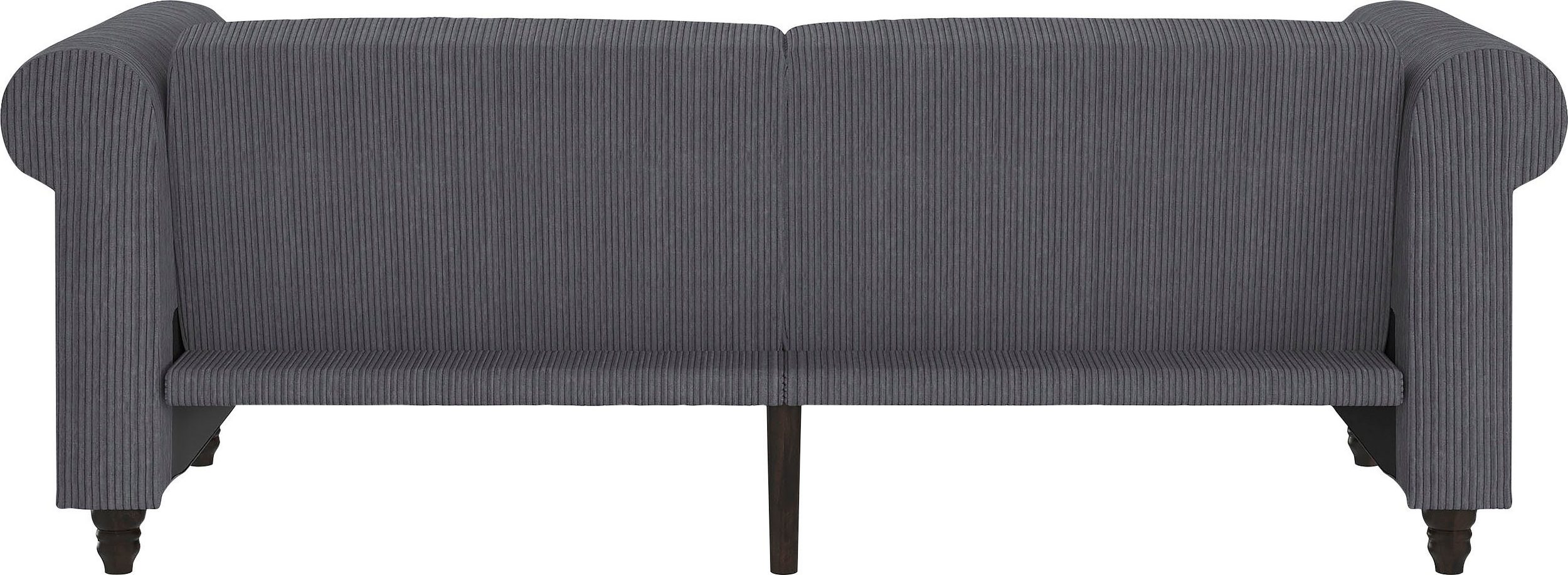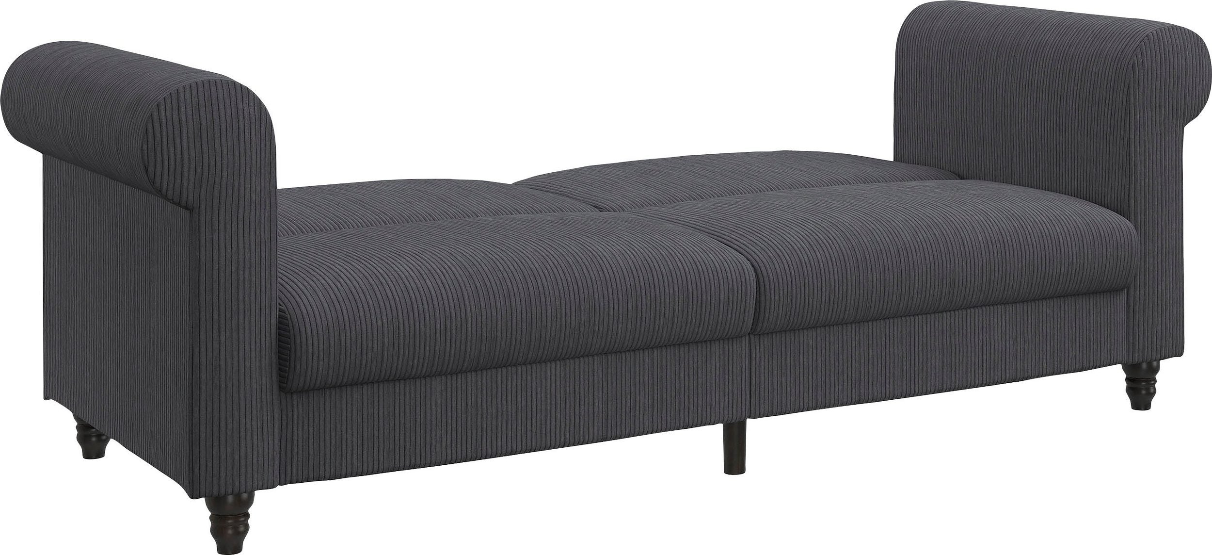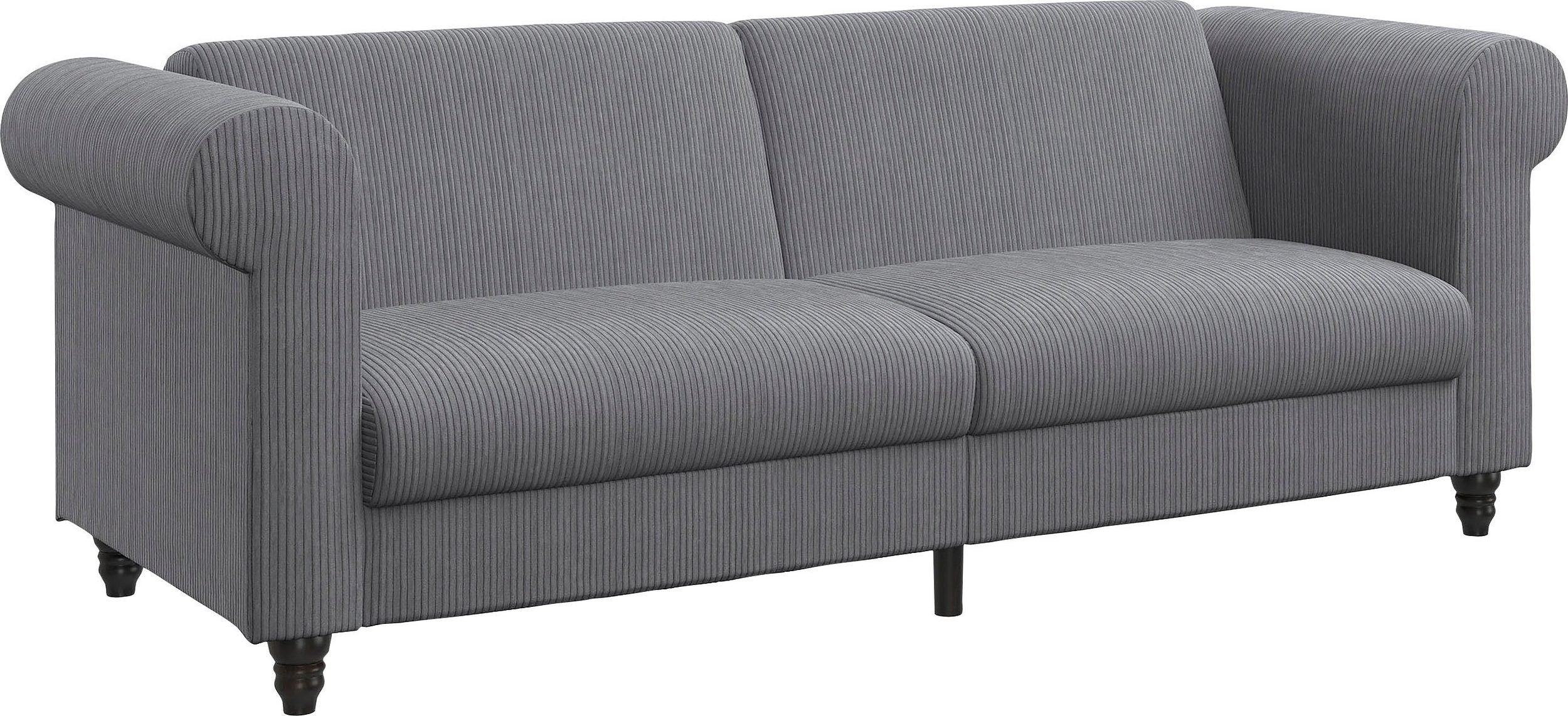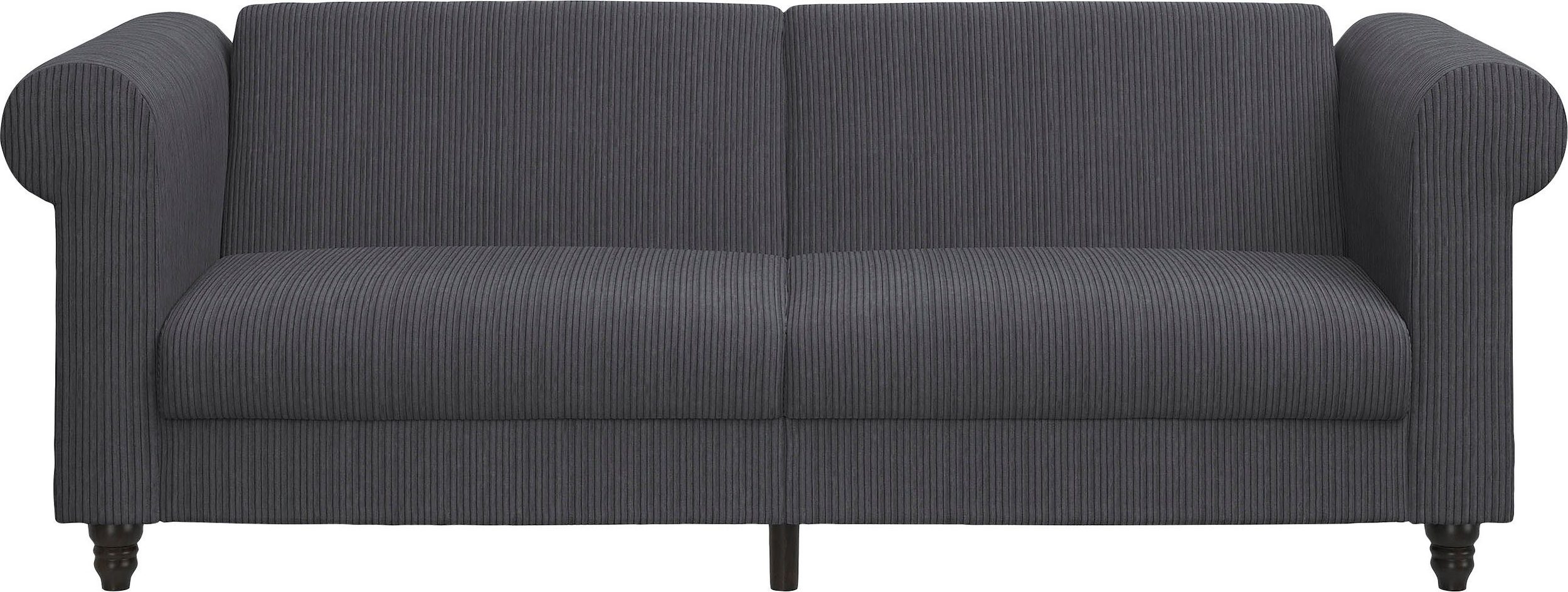 Denne 3 personers sovesofa tilbyder dig høj siddekomfort og bæreevne takket være bølgeophænget. Derudover har møblet en udtrækbar liggeflade, så det kan bruges både som sofa og som gæsteseng. Sovesofaen er manuelt justerbar, så du kan indstille din foretrukne position med et par enkle trin. De sorte massive træben imponerer med deres unikke udseende.