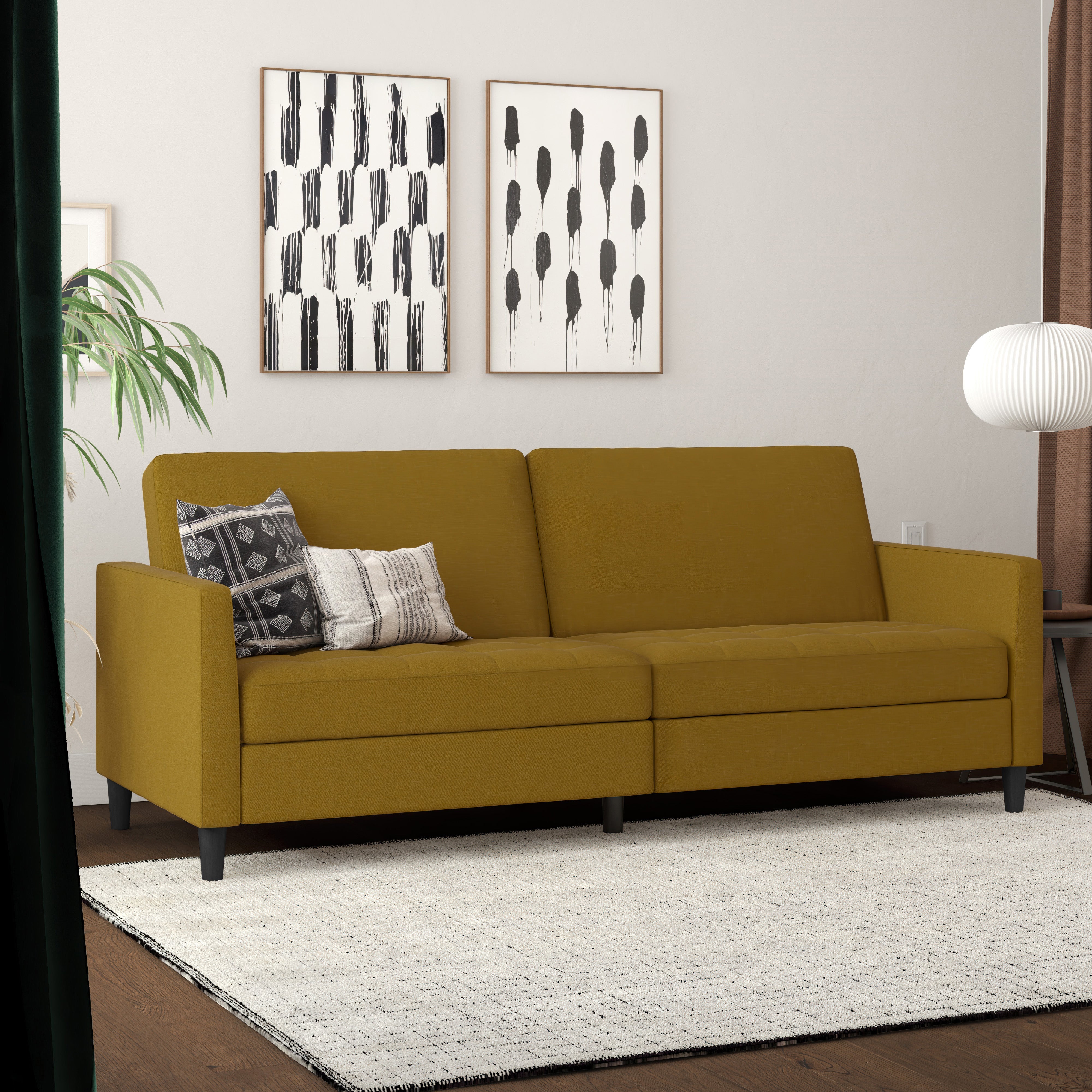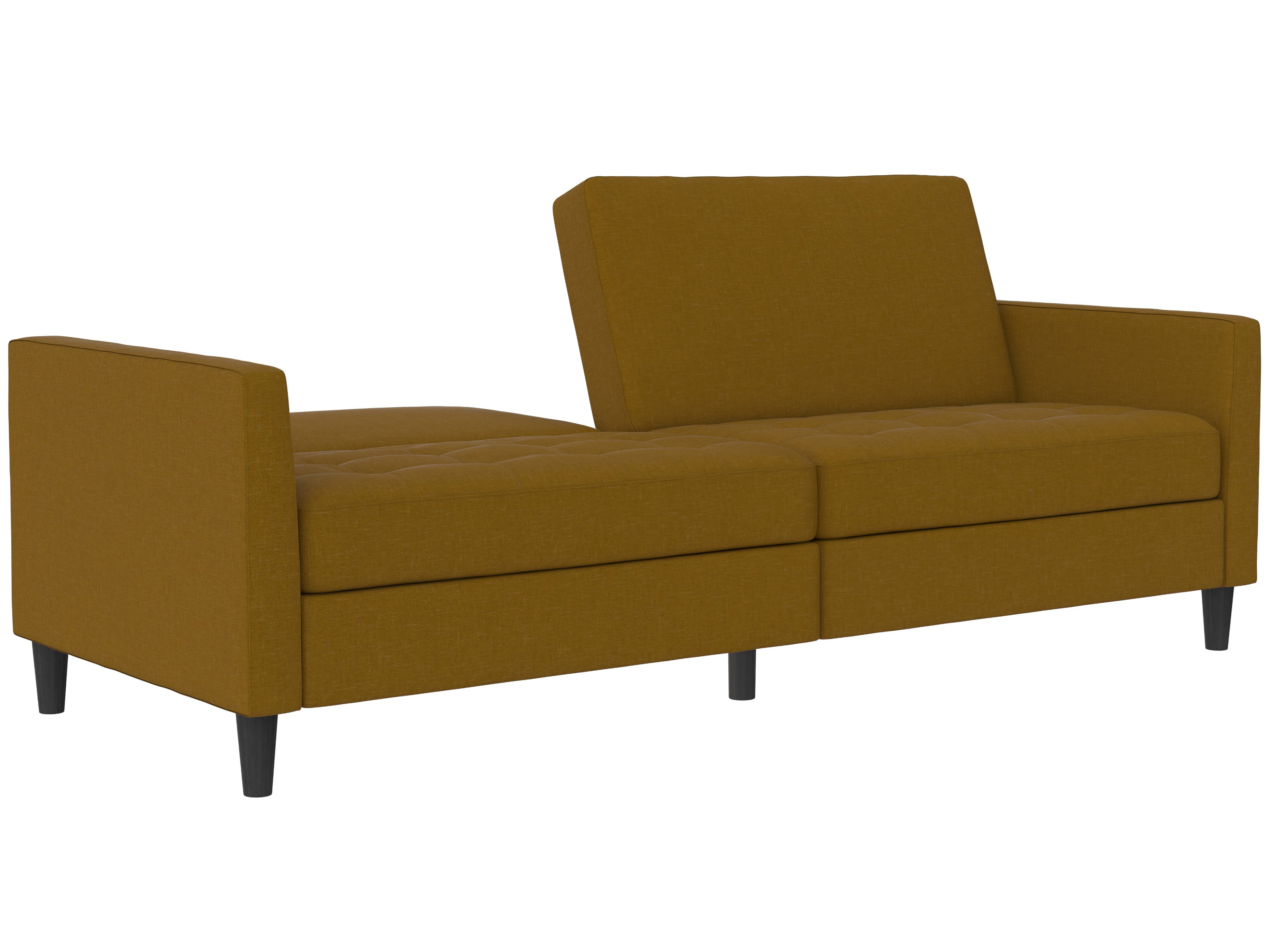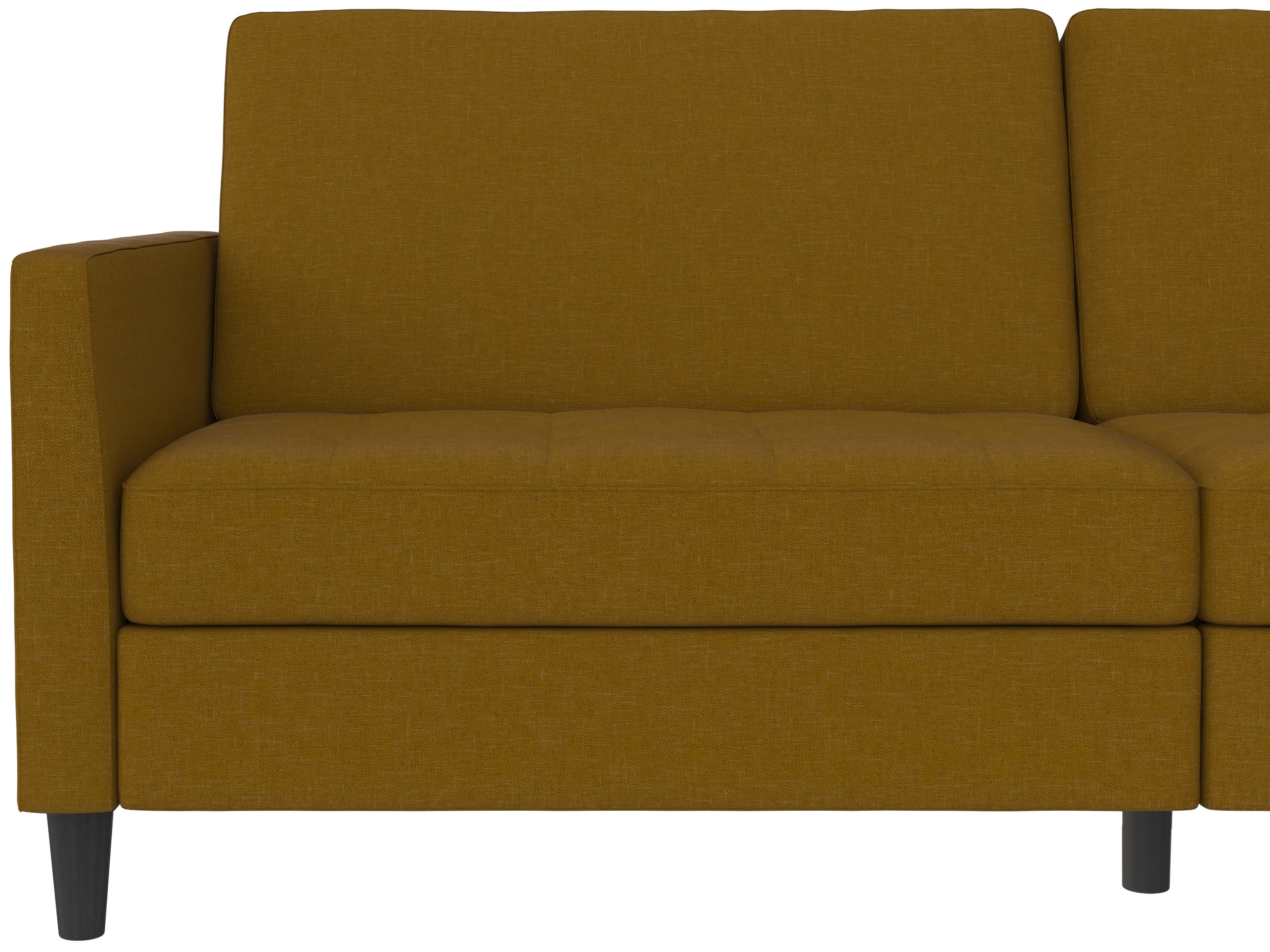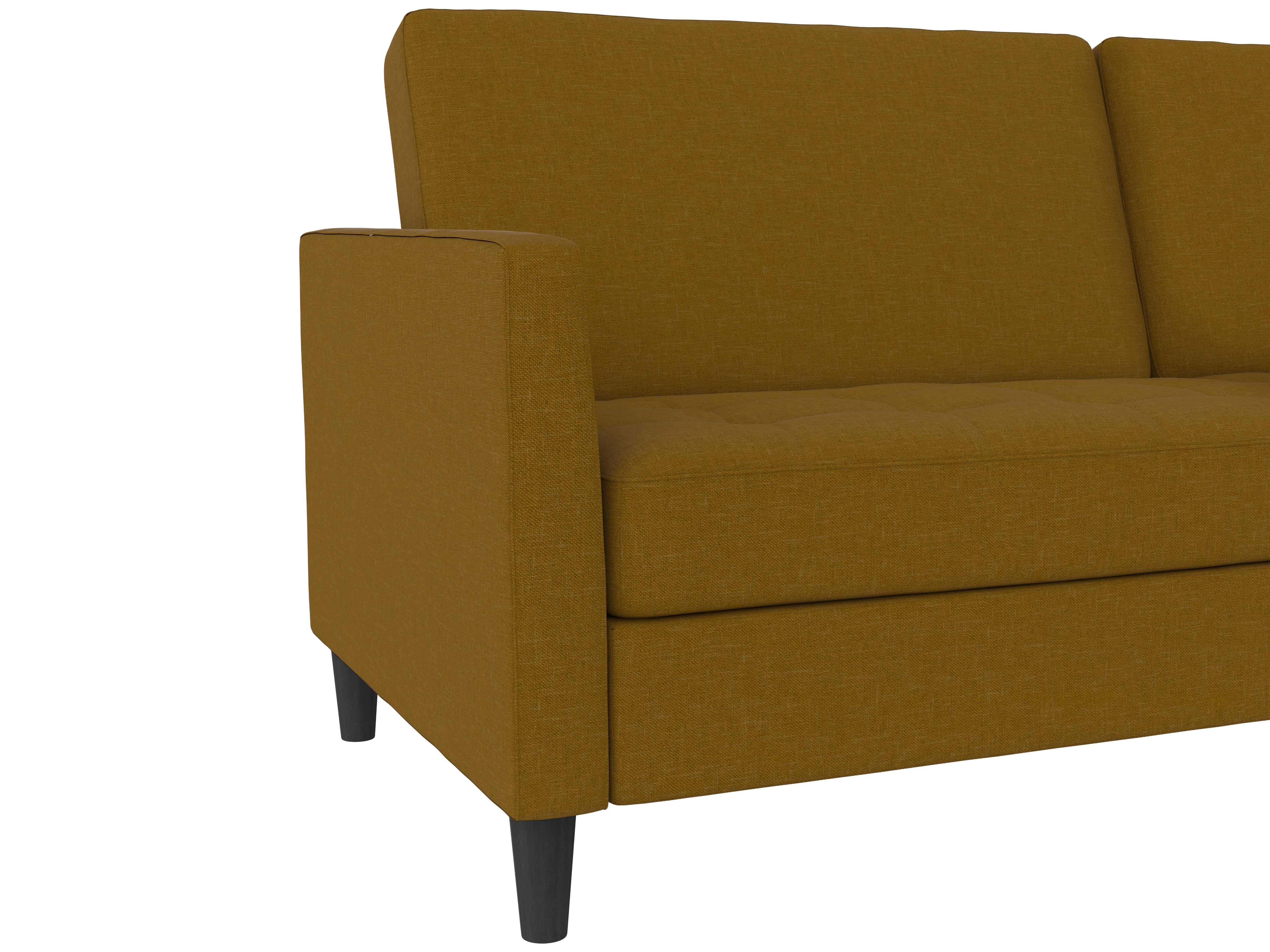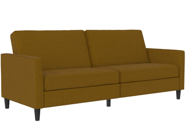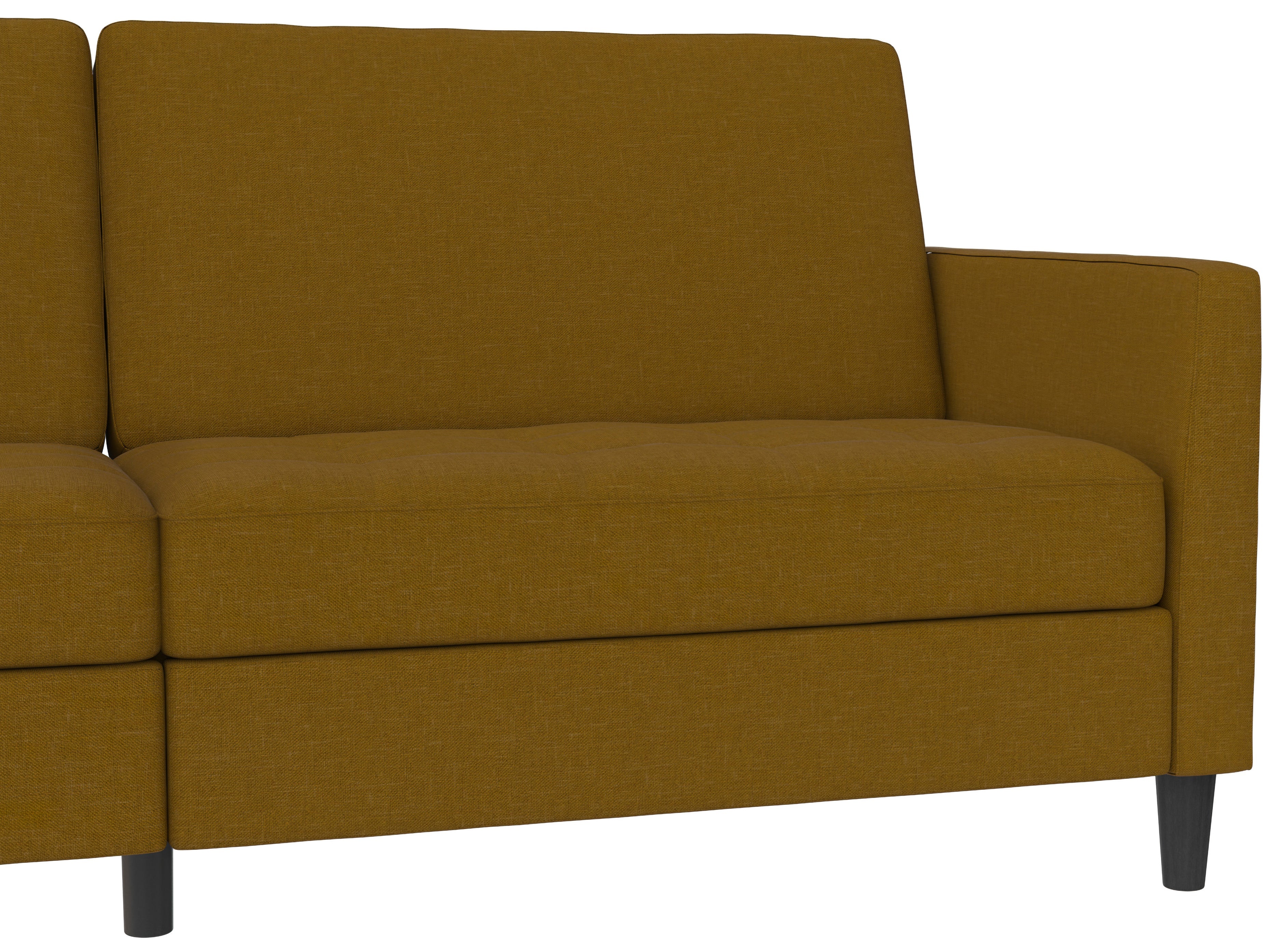 Denne sofa har en moderne stil. Det er bygget med konstrueret træ og linned look. Polstret er fyldt med skum for komfort. Den har en udtrækbar liggeflade og er derfor et sove- og hvileområde i ét. Sofaen kan indstilles manuelt. Den omdannes let til en seng.
