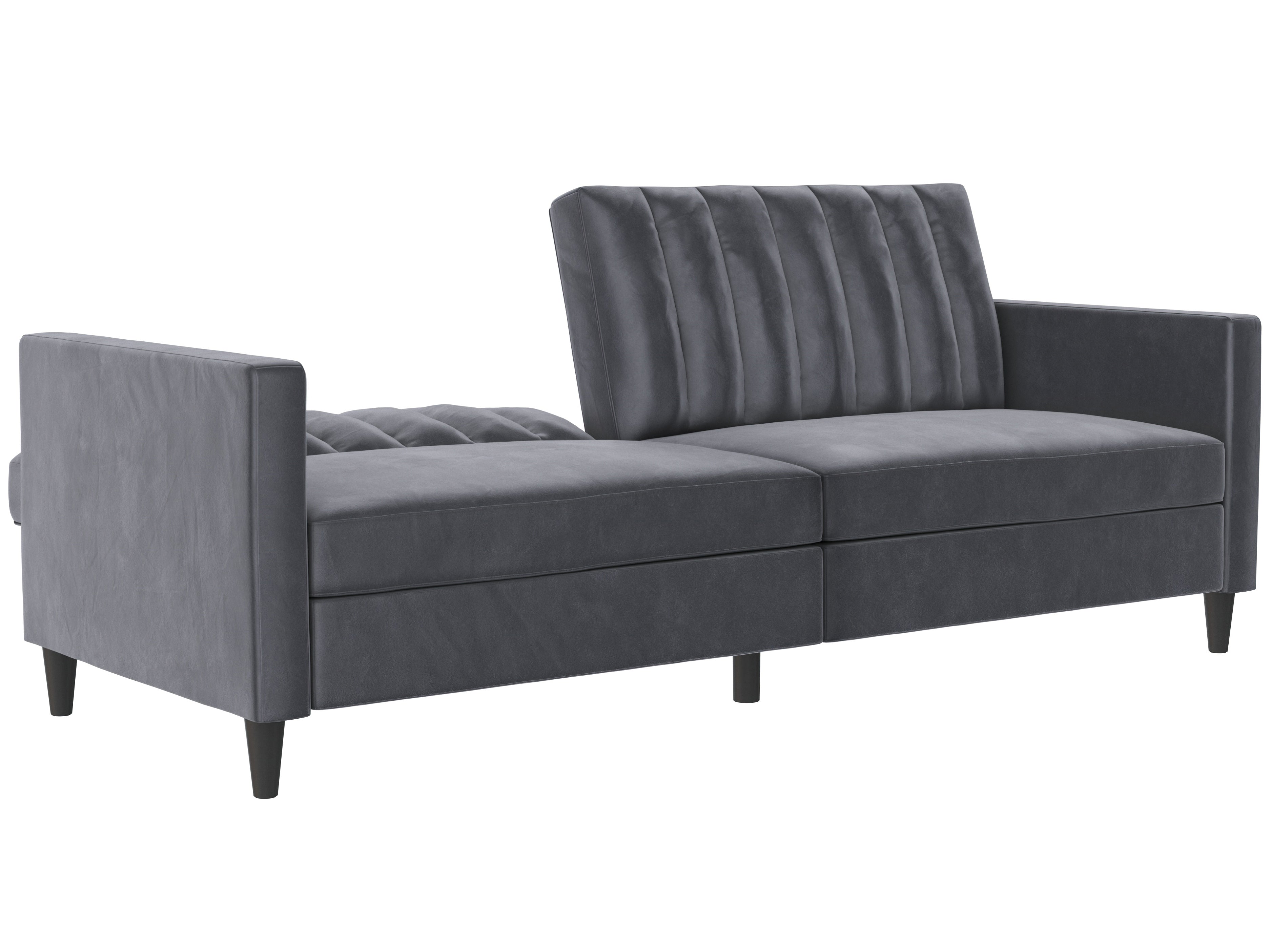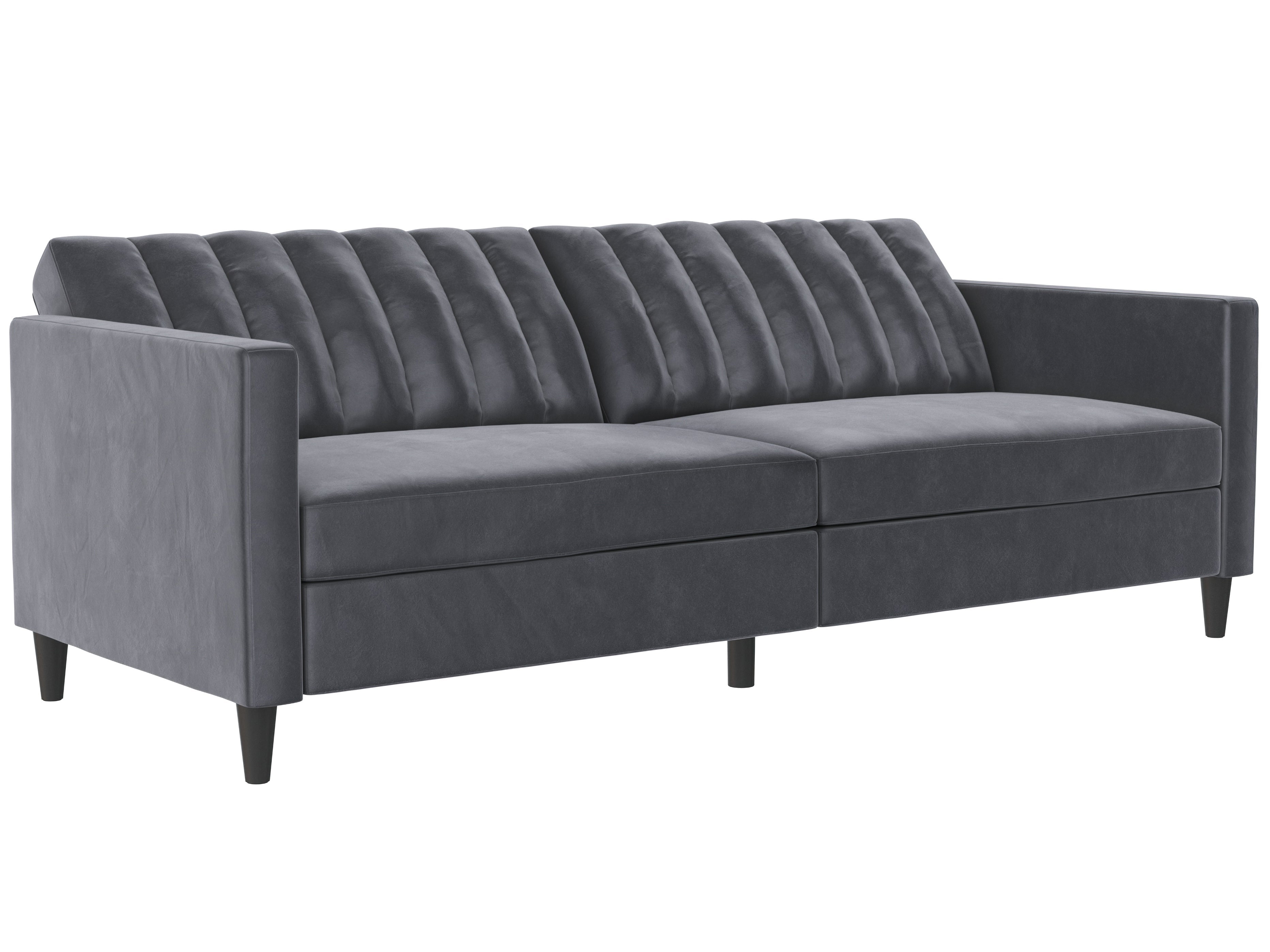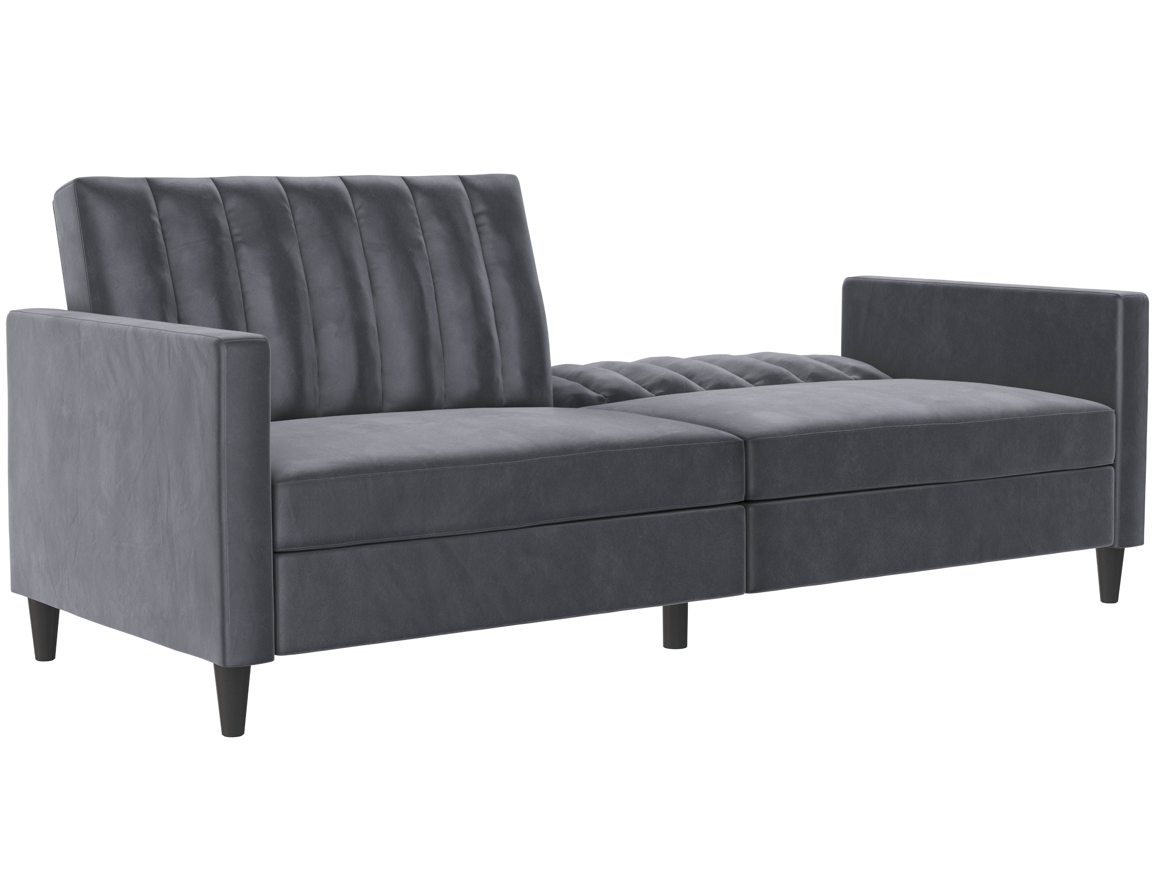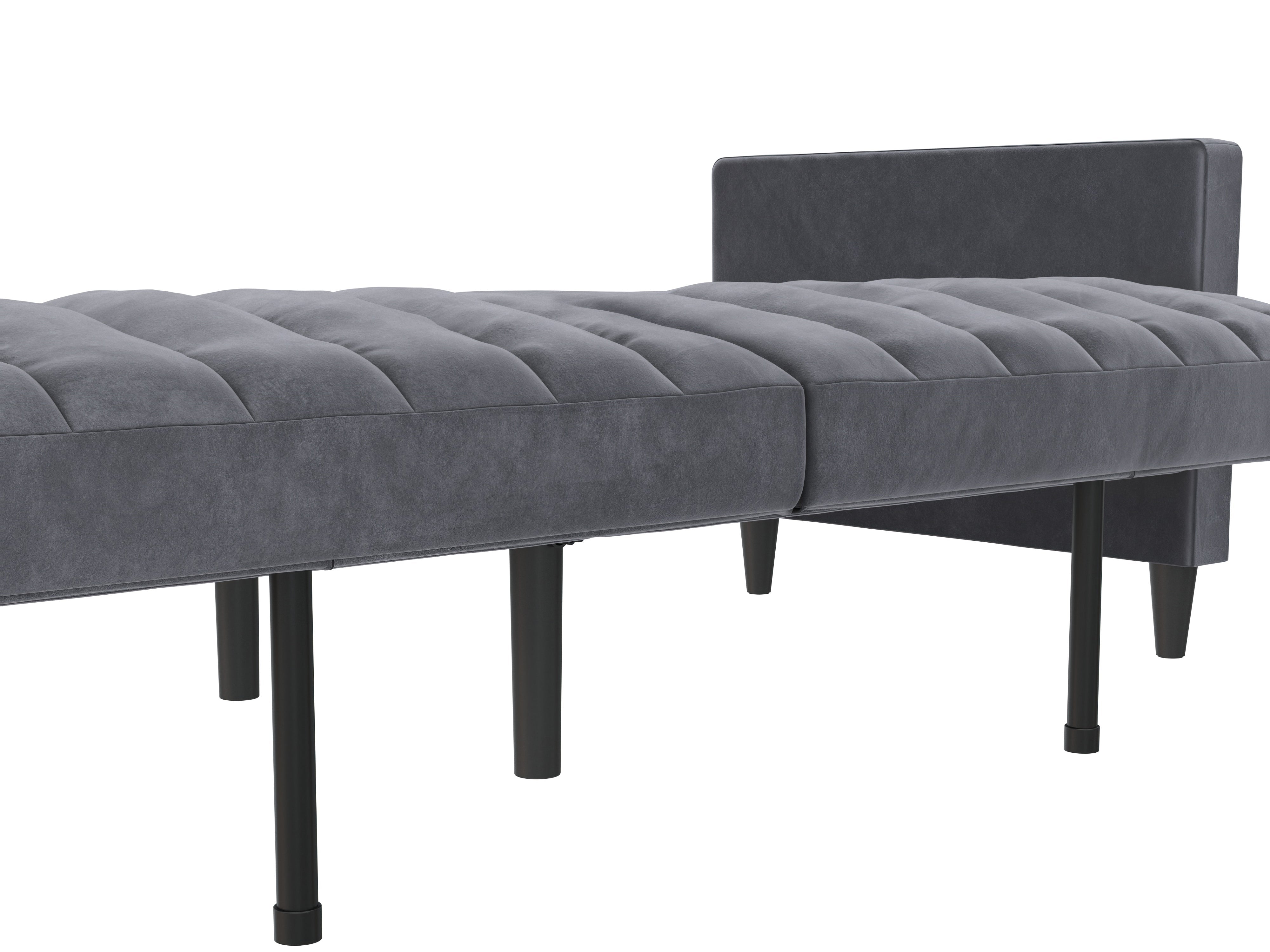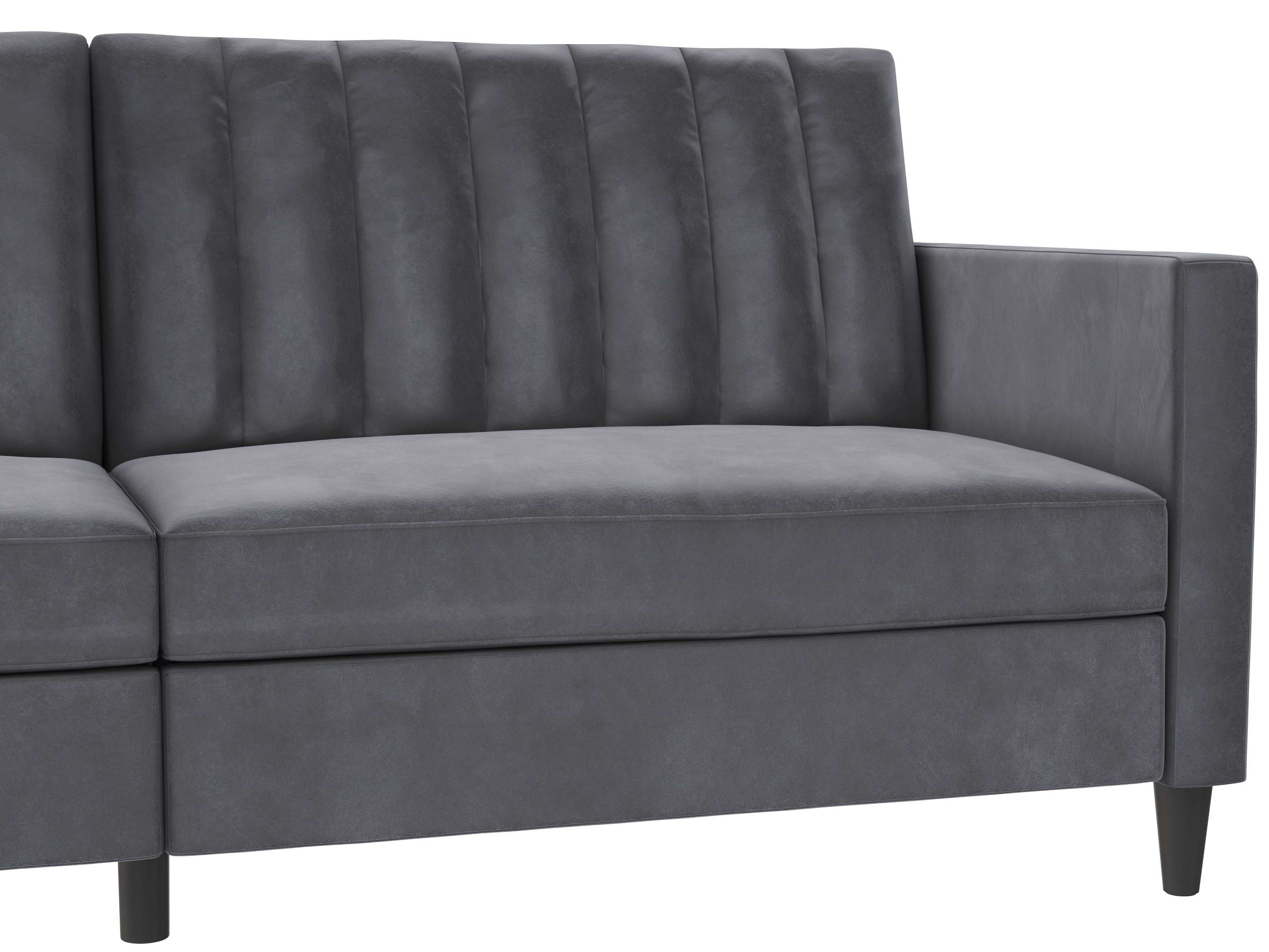 Denne sovesofa har en moderne stil. Den er bygget med konstrueret træ og fløjlsbetræk. Polstret er fyldt med skum for komfort. Den har en udtrækbar liggeflade og er derfor et sove- og hvileområde i ét. Sovesofaen kan justeres manuelt.