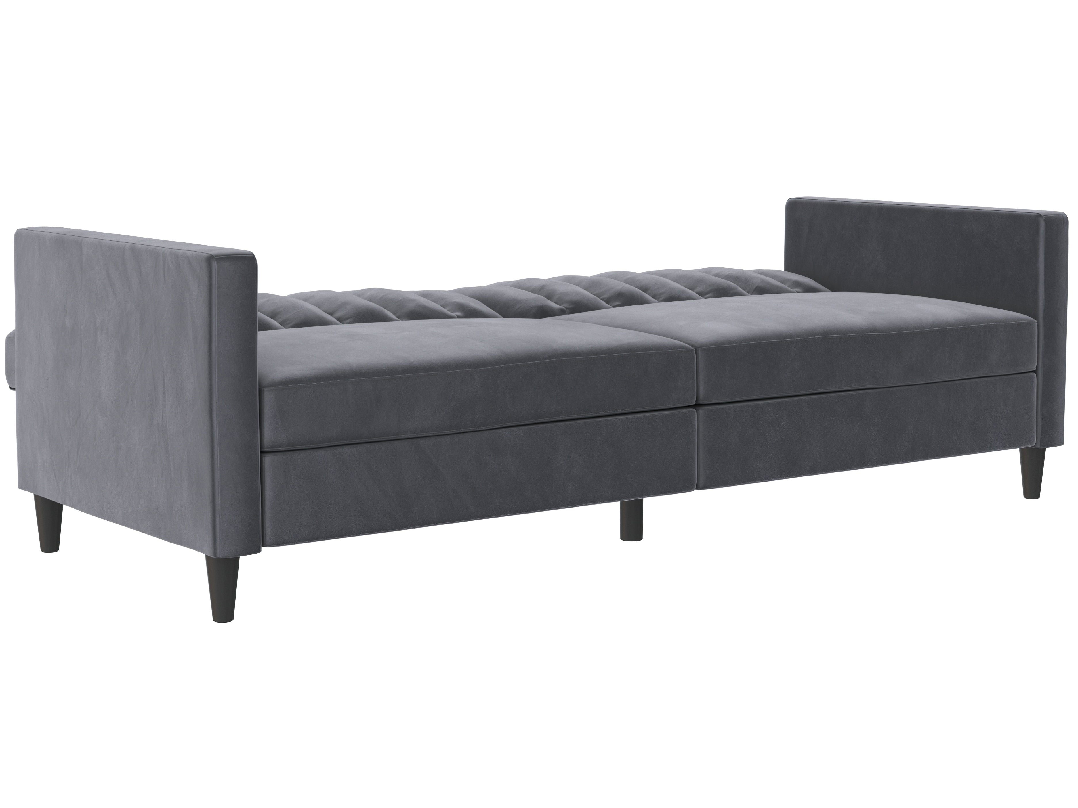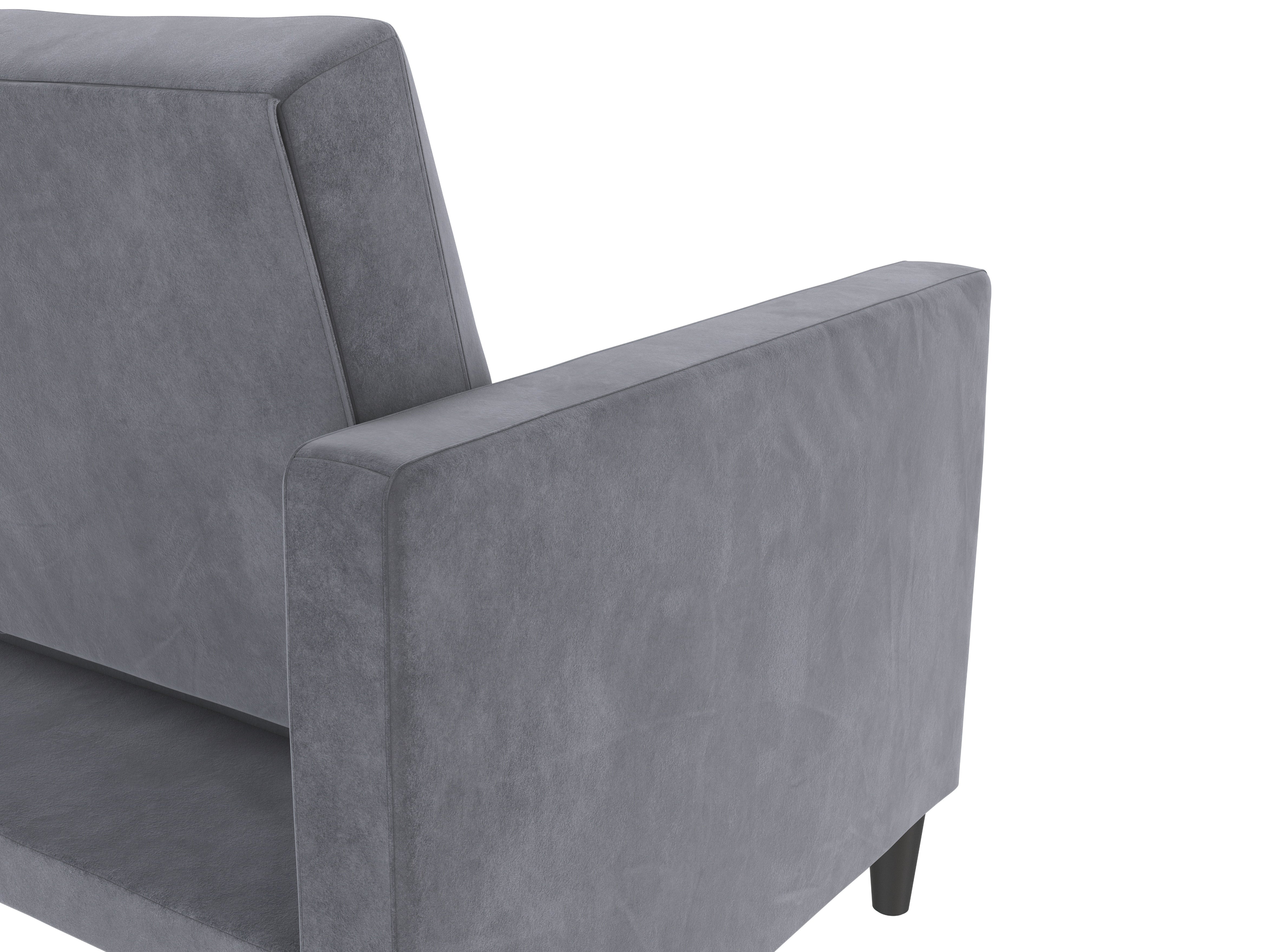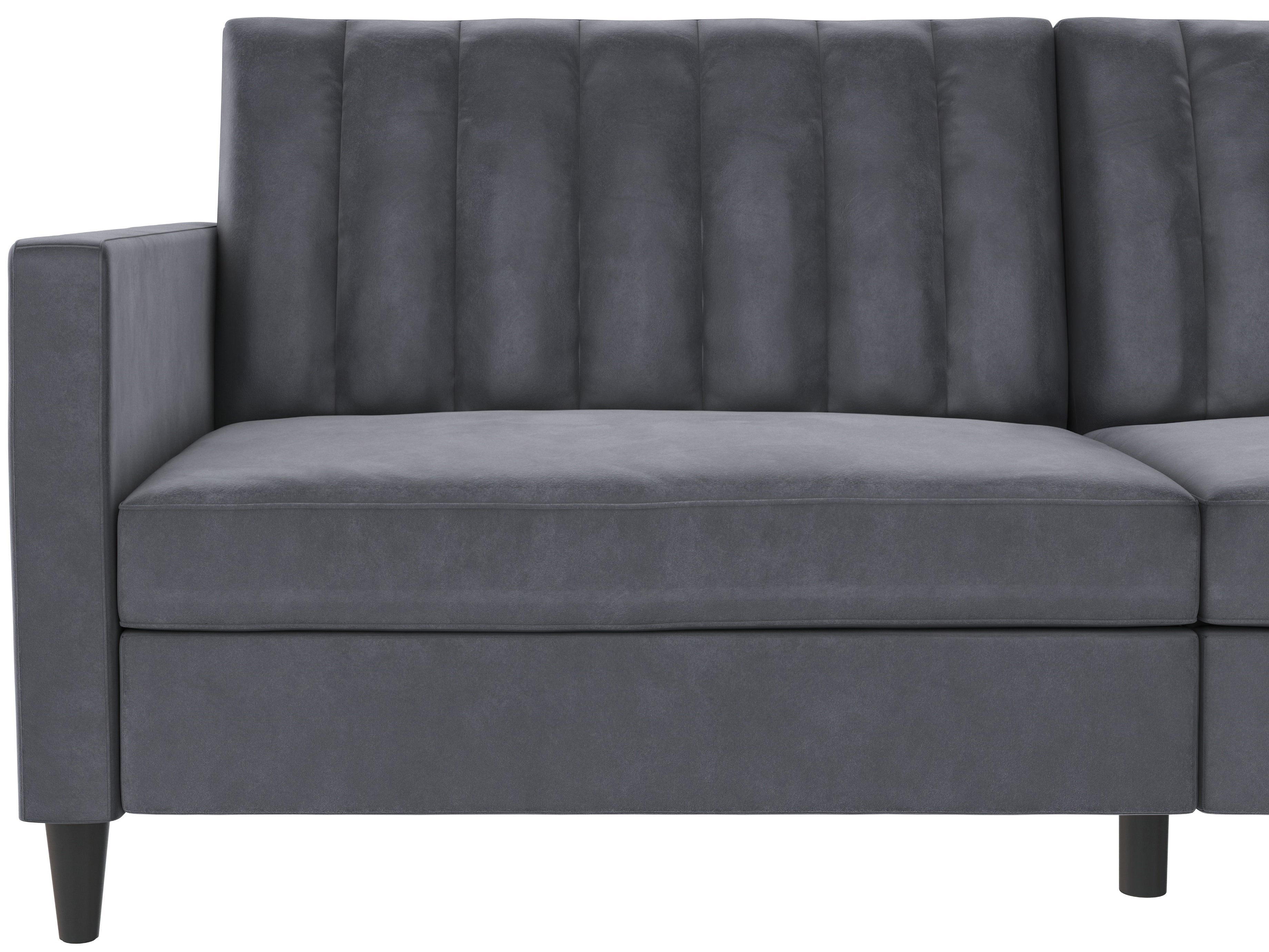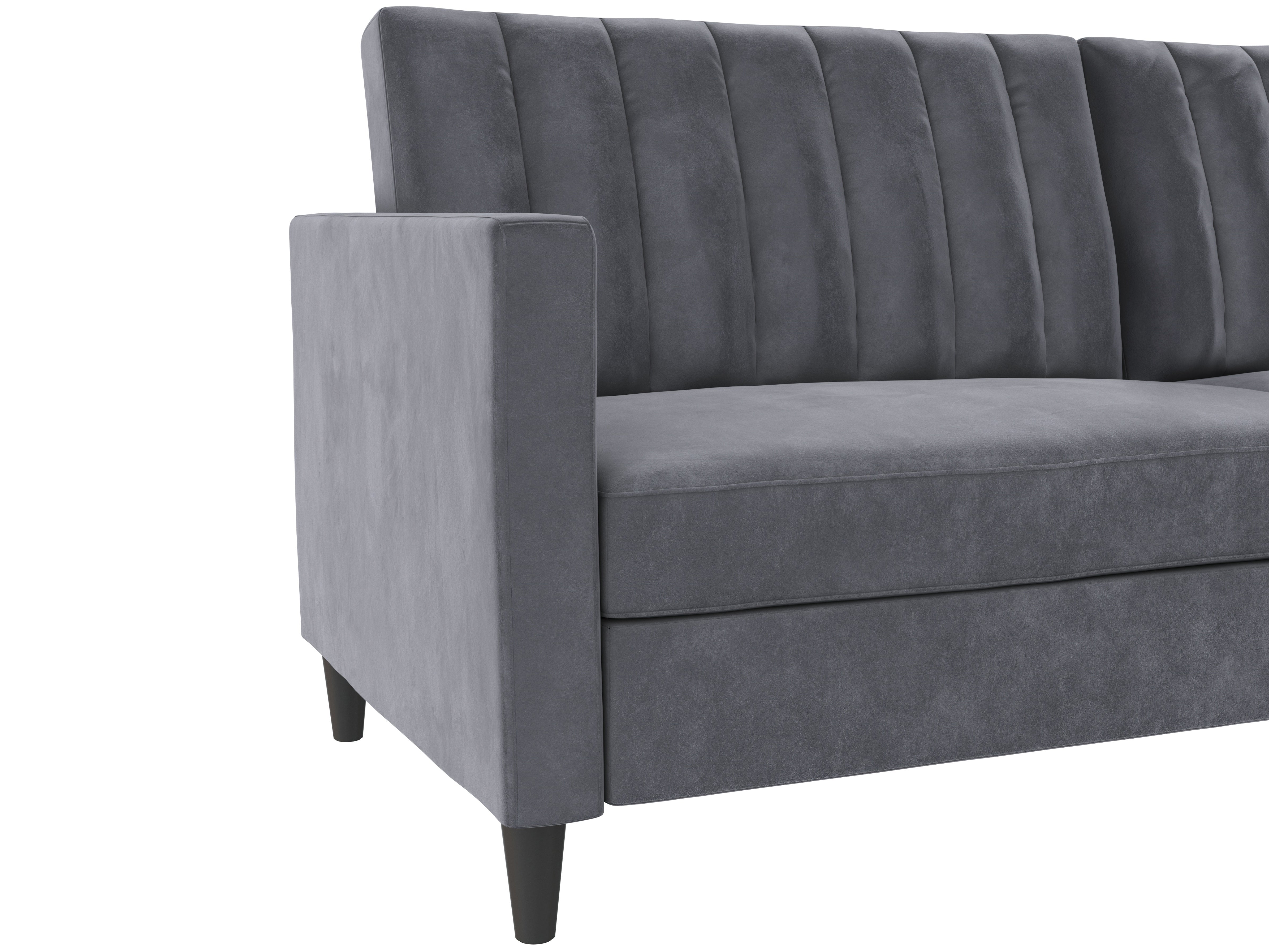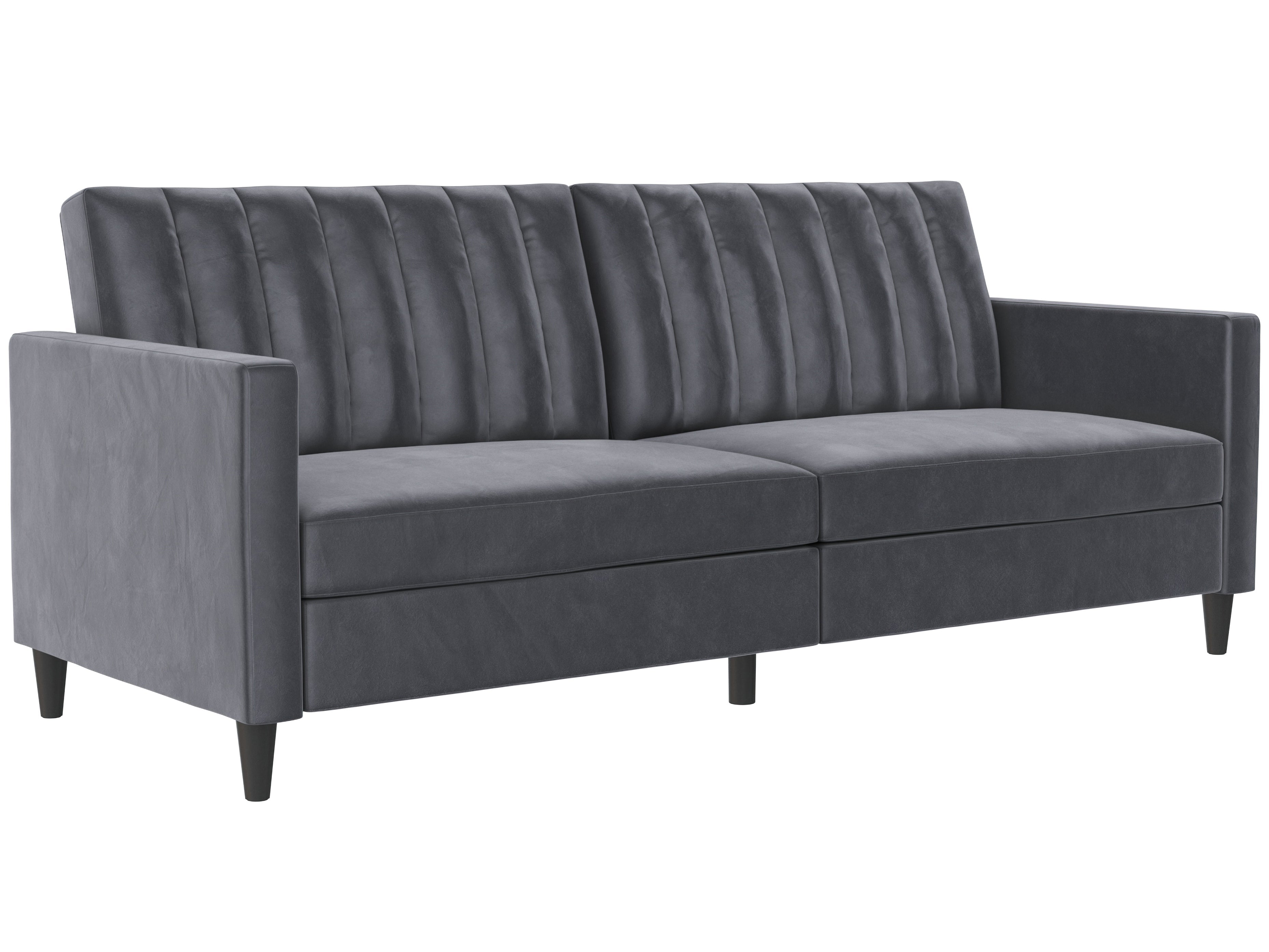 Denne sovesofa har en moderne stil. Den er bygget med konstrueret træ og fløjlsbetræk. Polstret er fyldt med skum for komfort. Den har en udtrækbar liggeflade og er derfor et sove- og hvileområde i ét. Sovesofaen kan justeres manuelt.