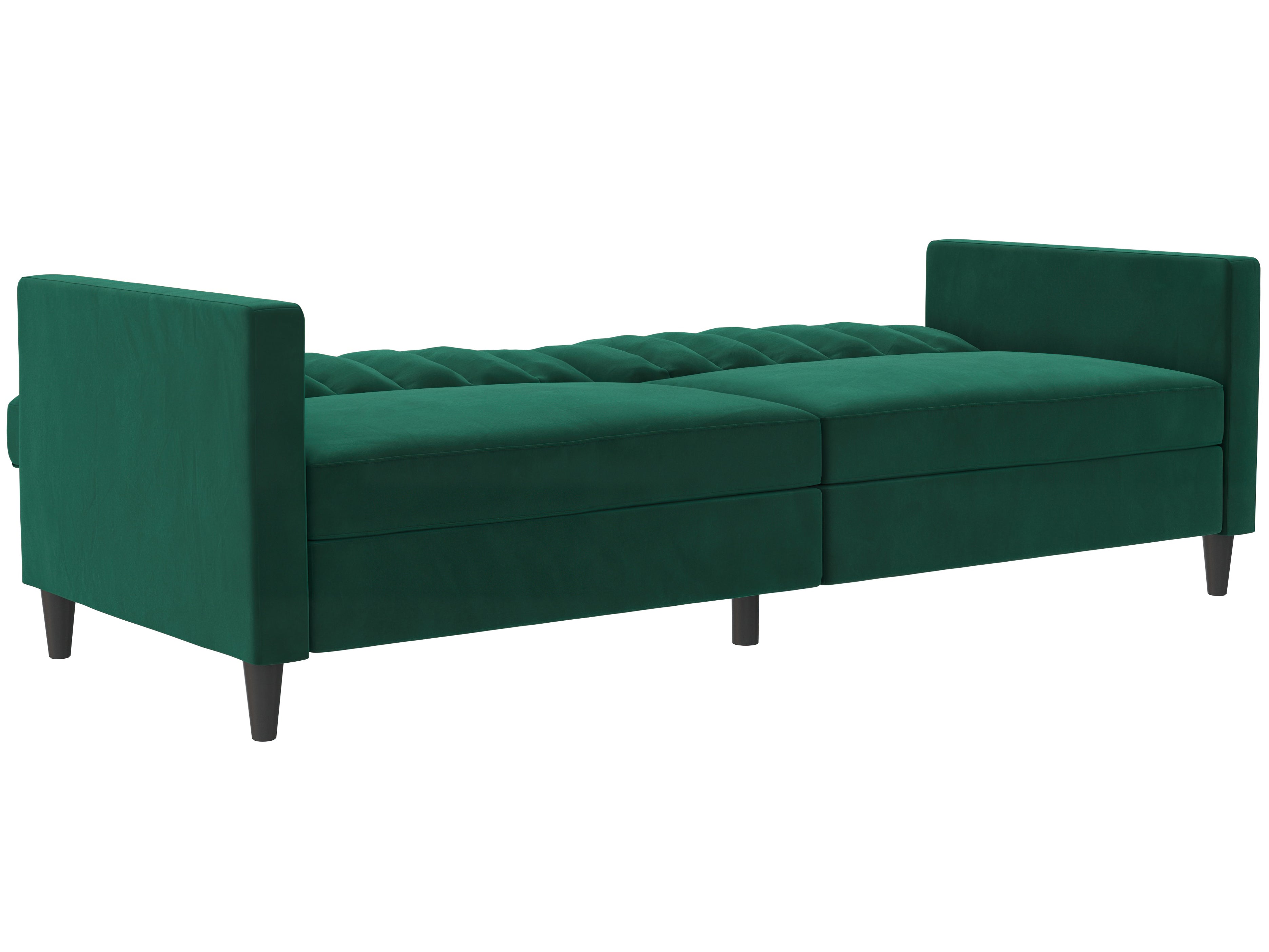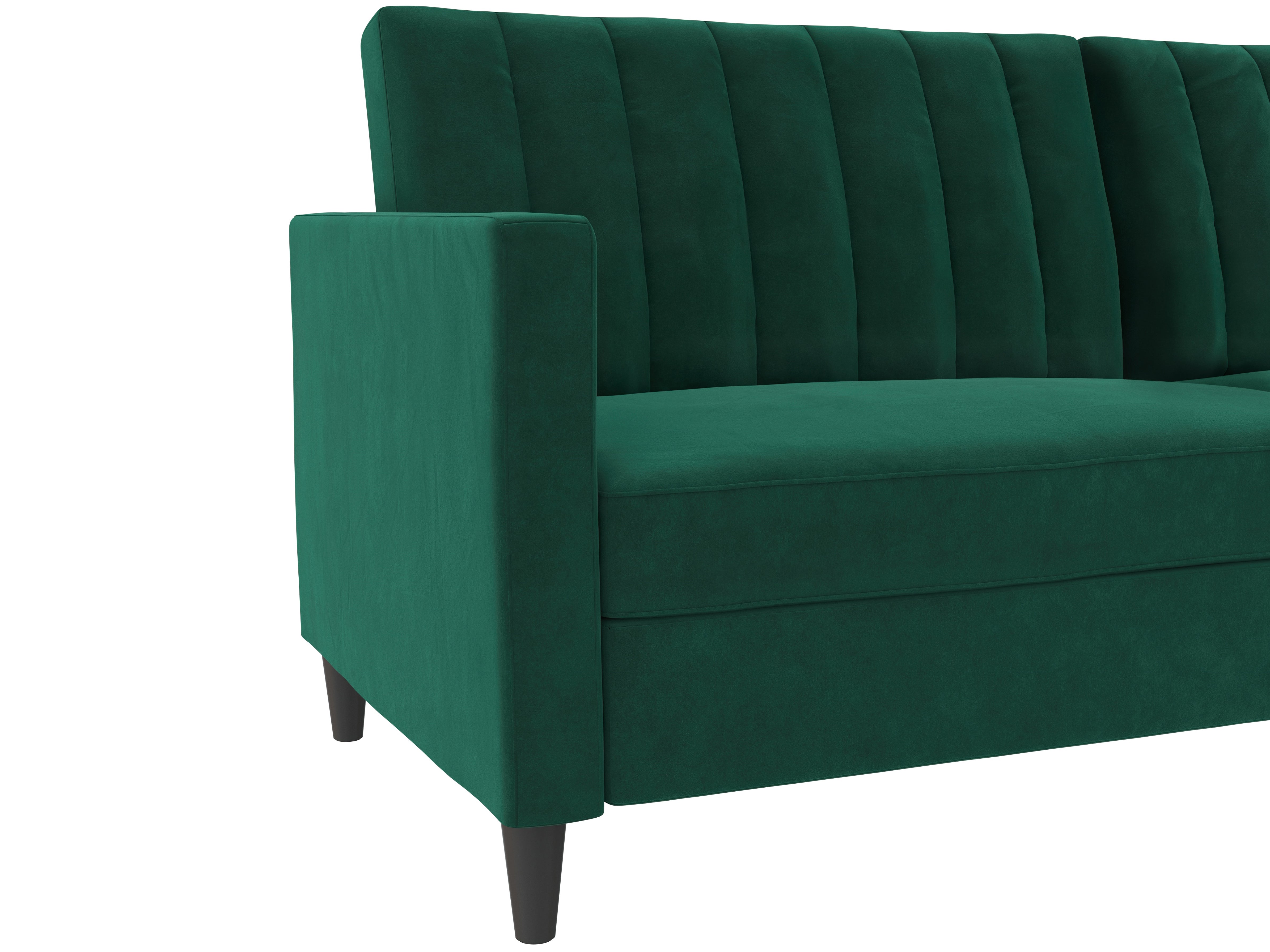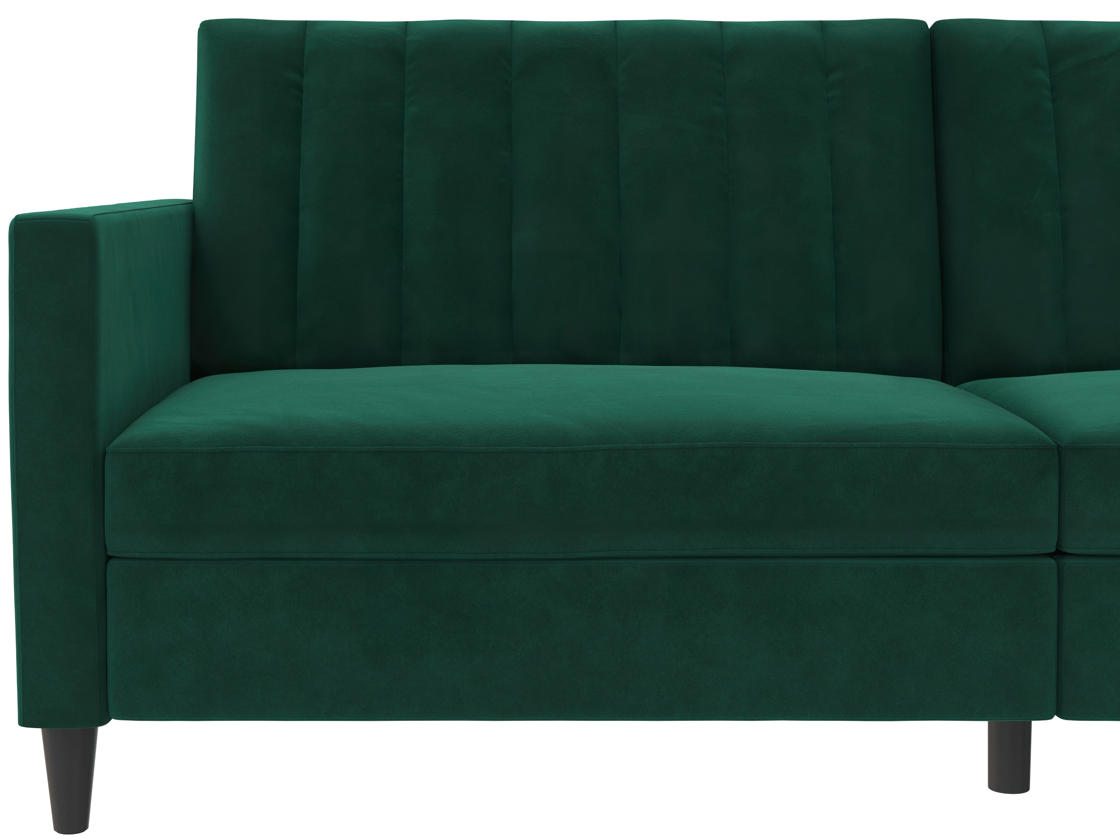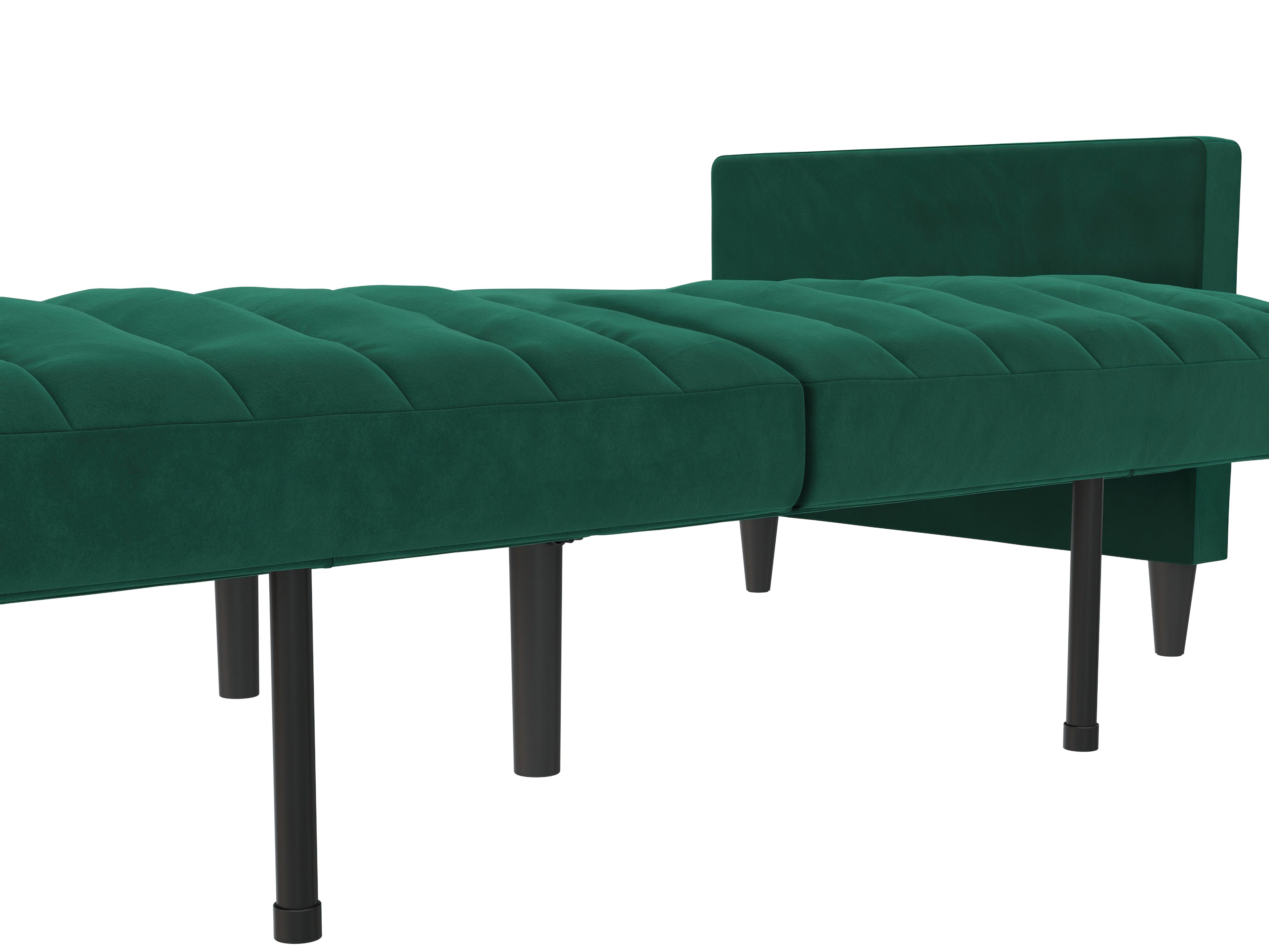 Denne sovesofa har en moderne stil. Den er bygget med konstrueret træ og fløjlsbetræk. Polstret er fyldt med skum for komfort. Den har en udtrækbar liggeflade og er derfor et sove- og hvileområde i ét. Sovesofaen kan justeres manuelt.