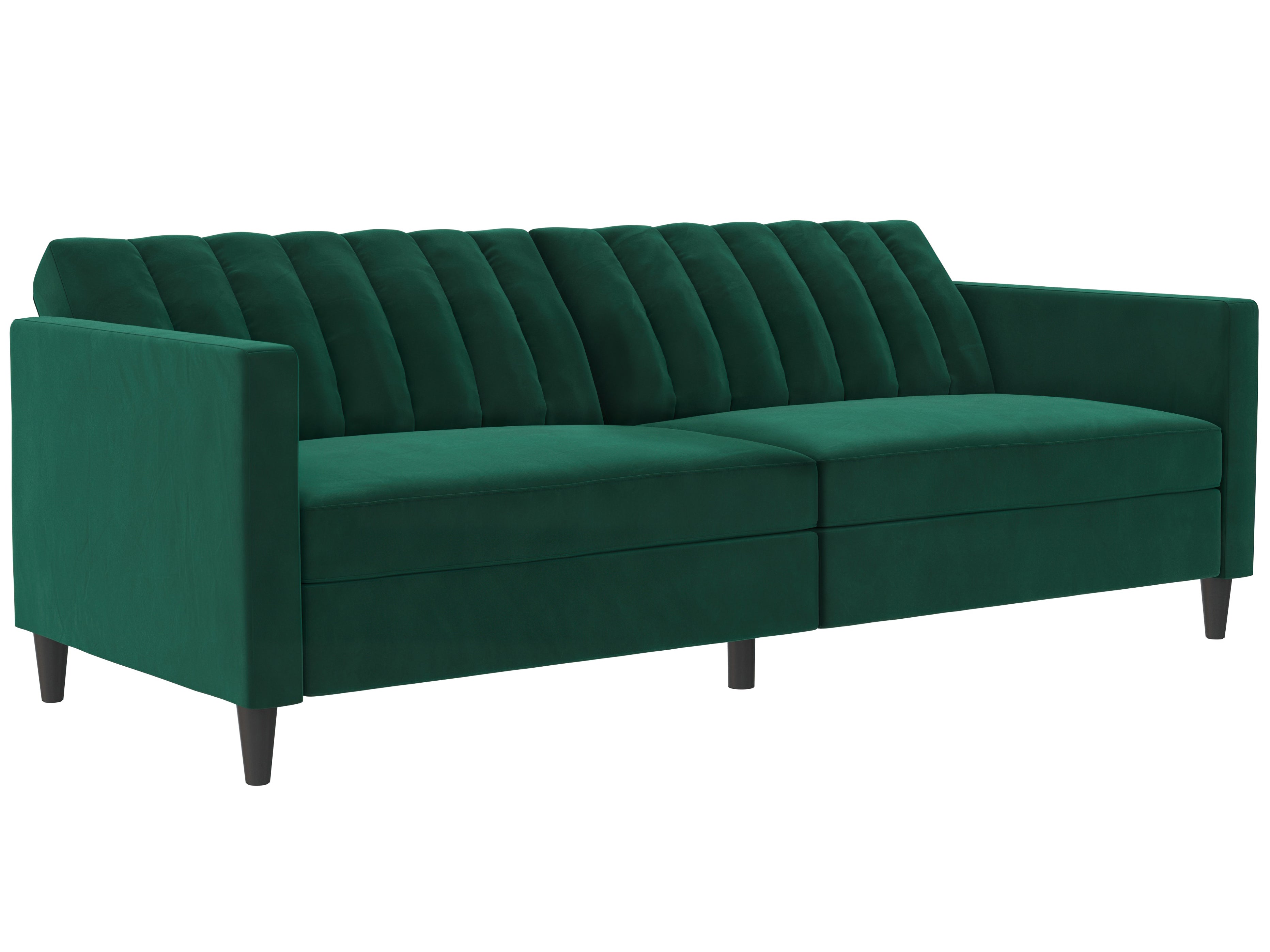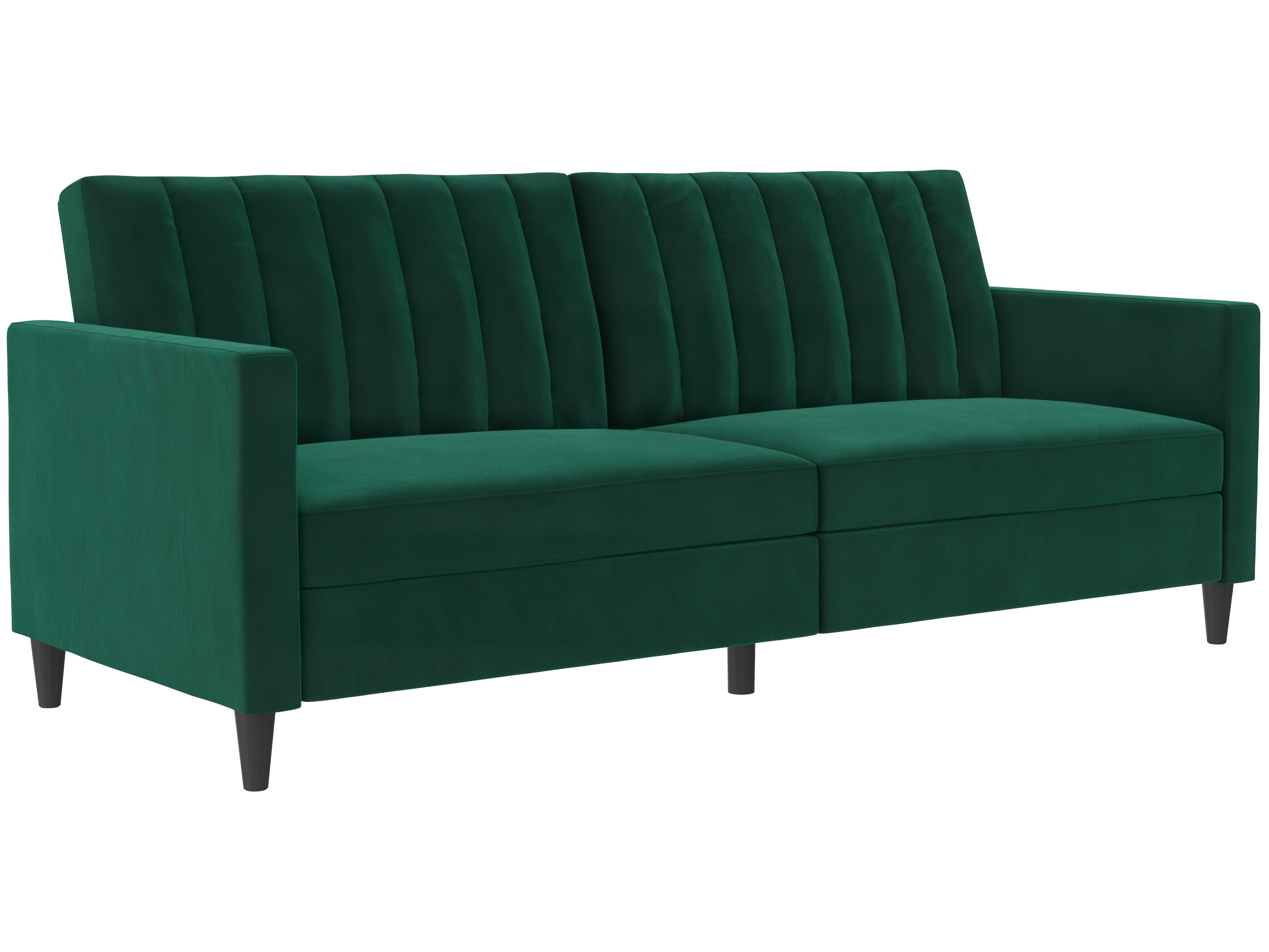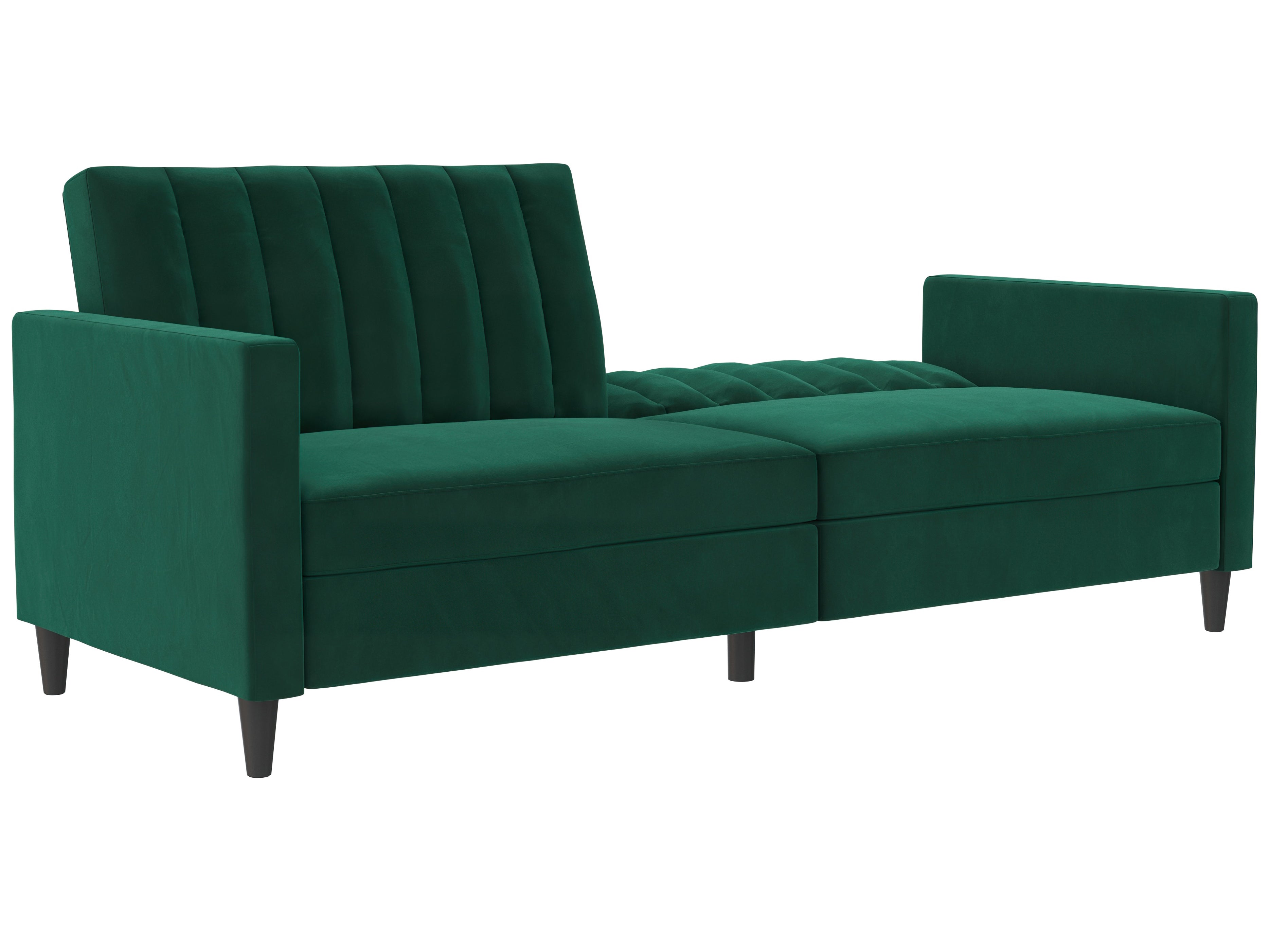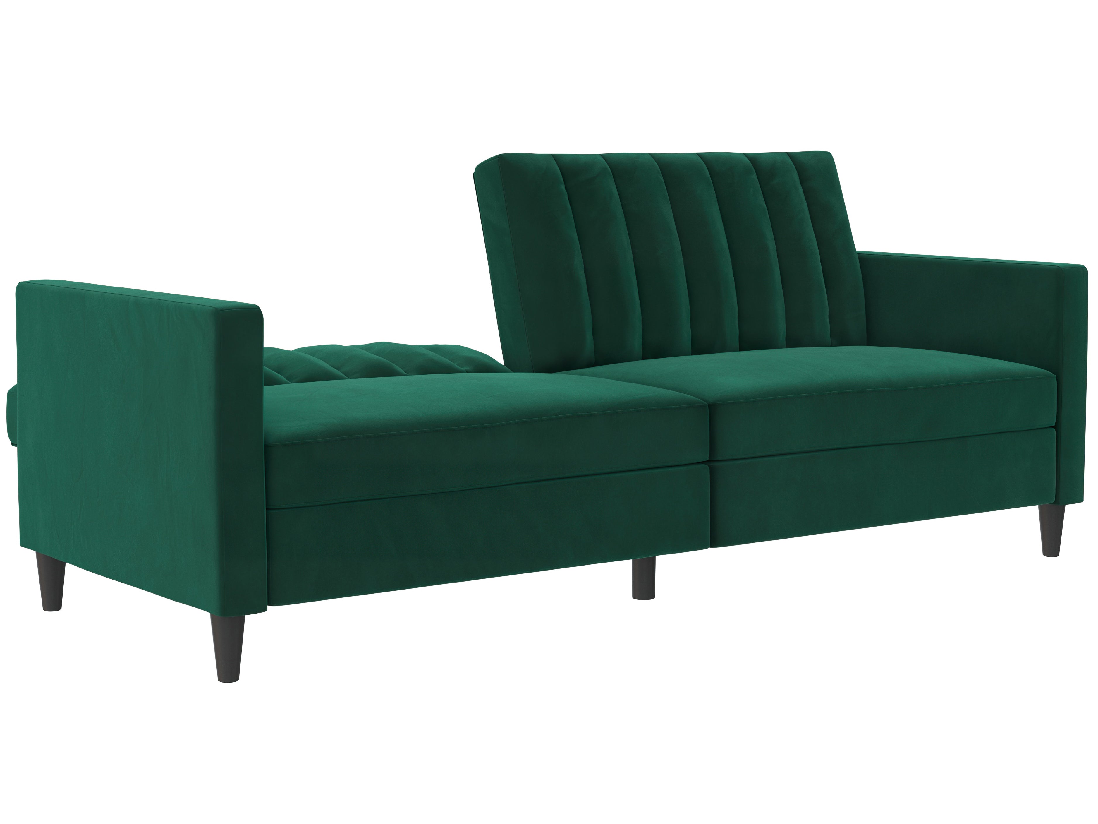 Denne sovesofa har en moderne stil. Den er bygget med konstrueret træ og fløjlsbetræk. Polstret er fyldt med skum for komfort. Den har en udtrækbar liggeflade og er derfor et sove- og hvileområde i ét. Sovesofaen kan justeres manuelt.