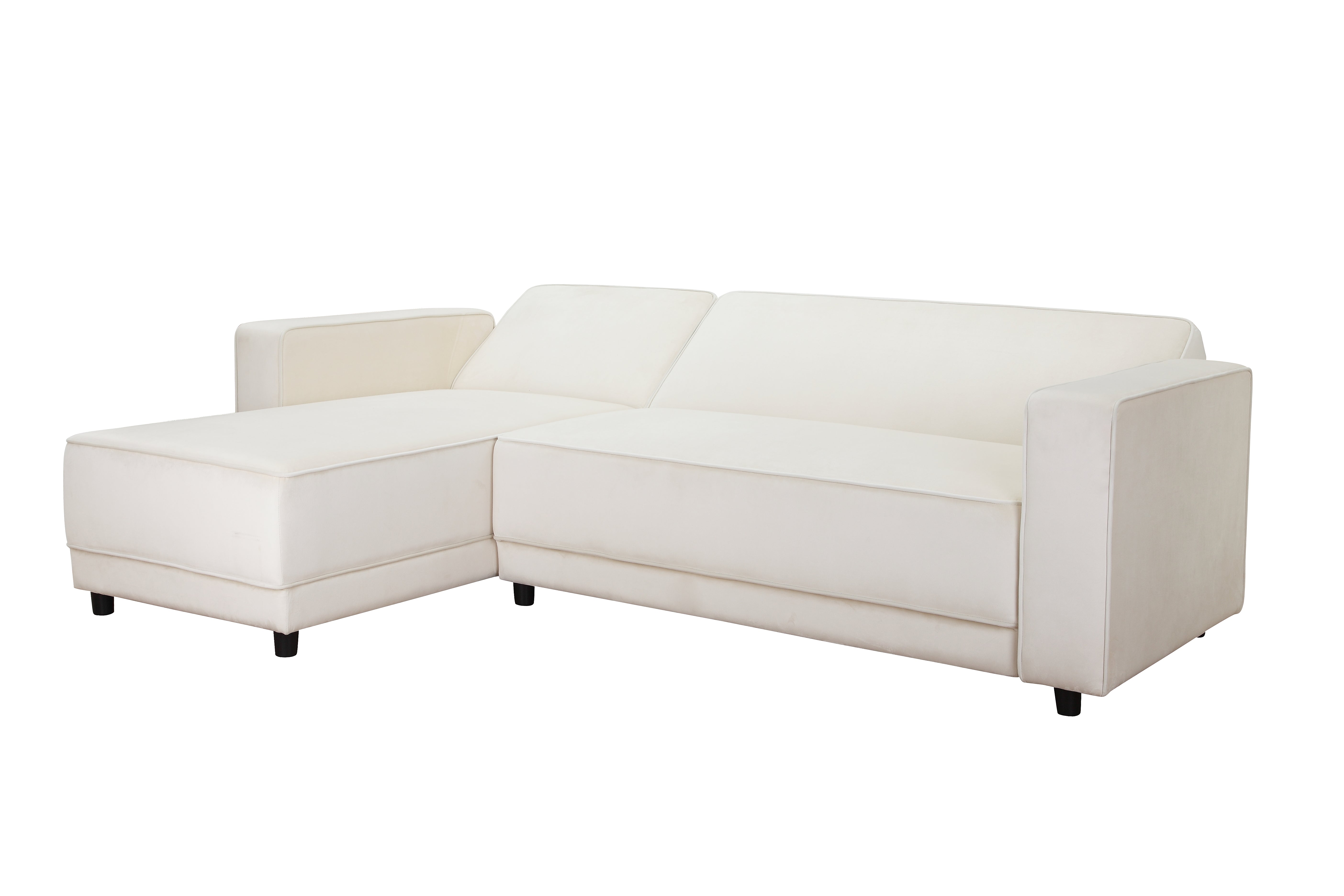 Denne hjørnesofa giver dig høj siddekomfort og bæreevne takket være bølgebunden. Sovesofaen er manuelt justerbar og kan bringes i den ønskede position med få trin. Chaiselongen kan monteres både til højre og venstre. Den maksimale lastkapacitet pr. sæde er omkring 125 kg. Sovesofaen er FSC®-certificeret. De sorte plastikfødder er korrosionsbestandige og særligt holdbare.