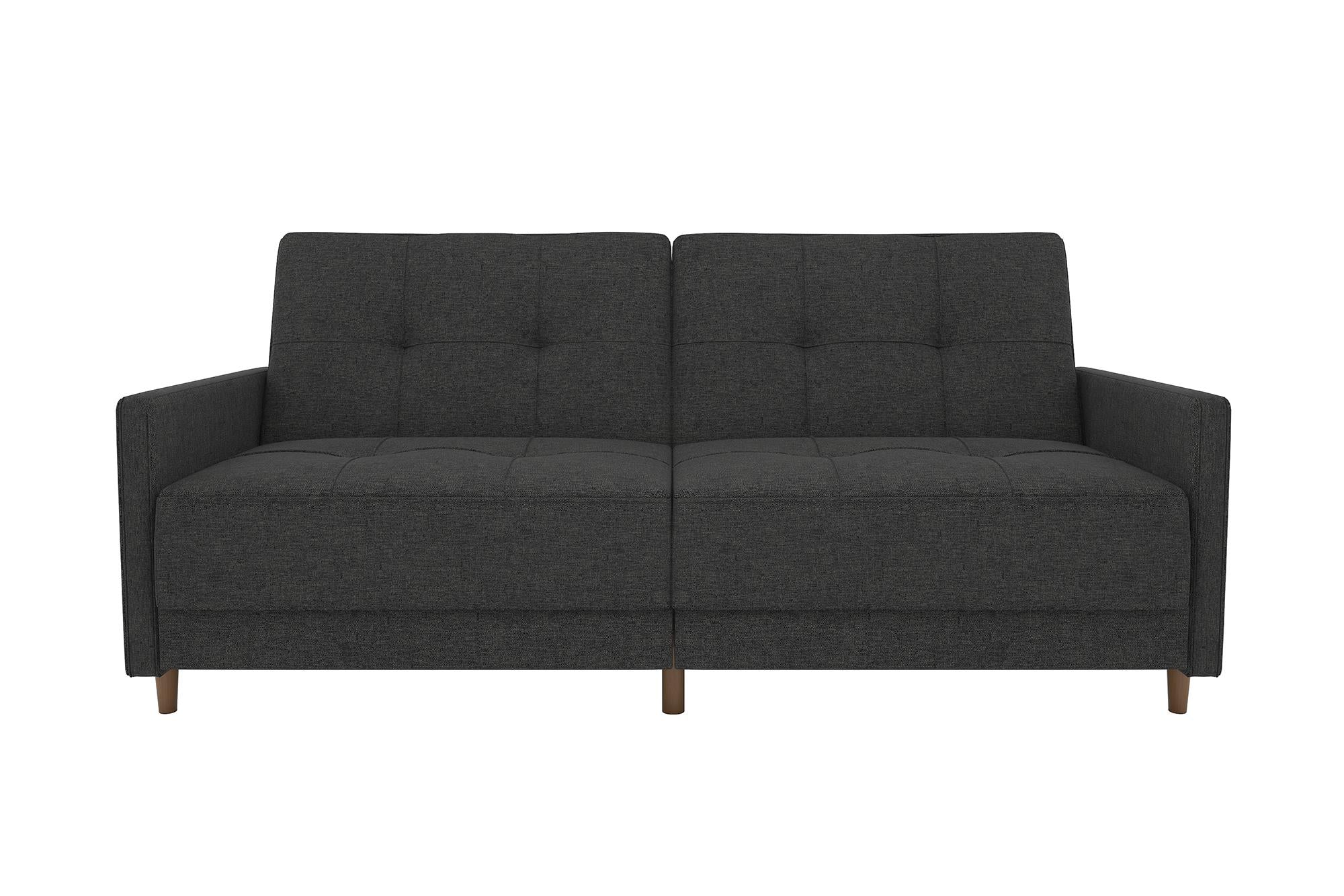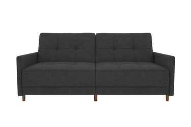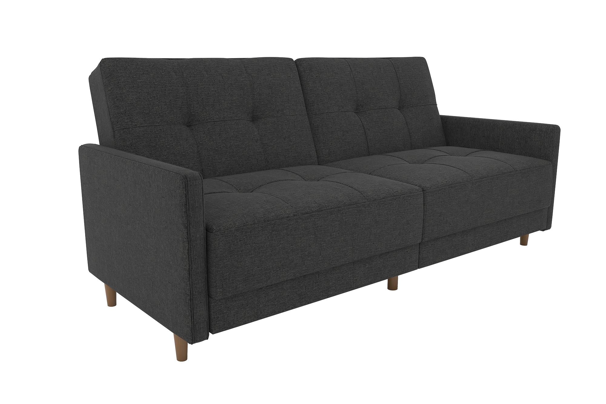 Det tuftede polstring giver denne sovesofa sin unikke charme. Sovesofaen har et splitback-design, der gør det muligt at justere rygvinklen. Du kan bruge sovesofaen til at sidde op i loungen tilbage eller ligge fladt. Den er lille nok til trange opholdsrum.