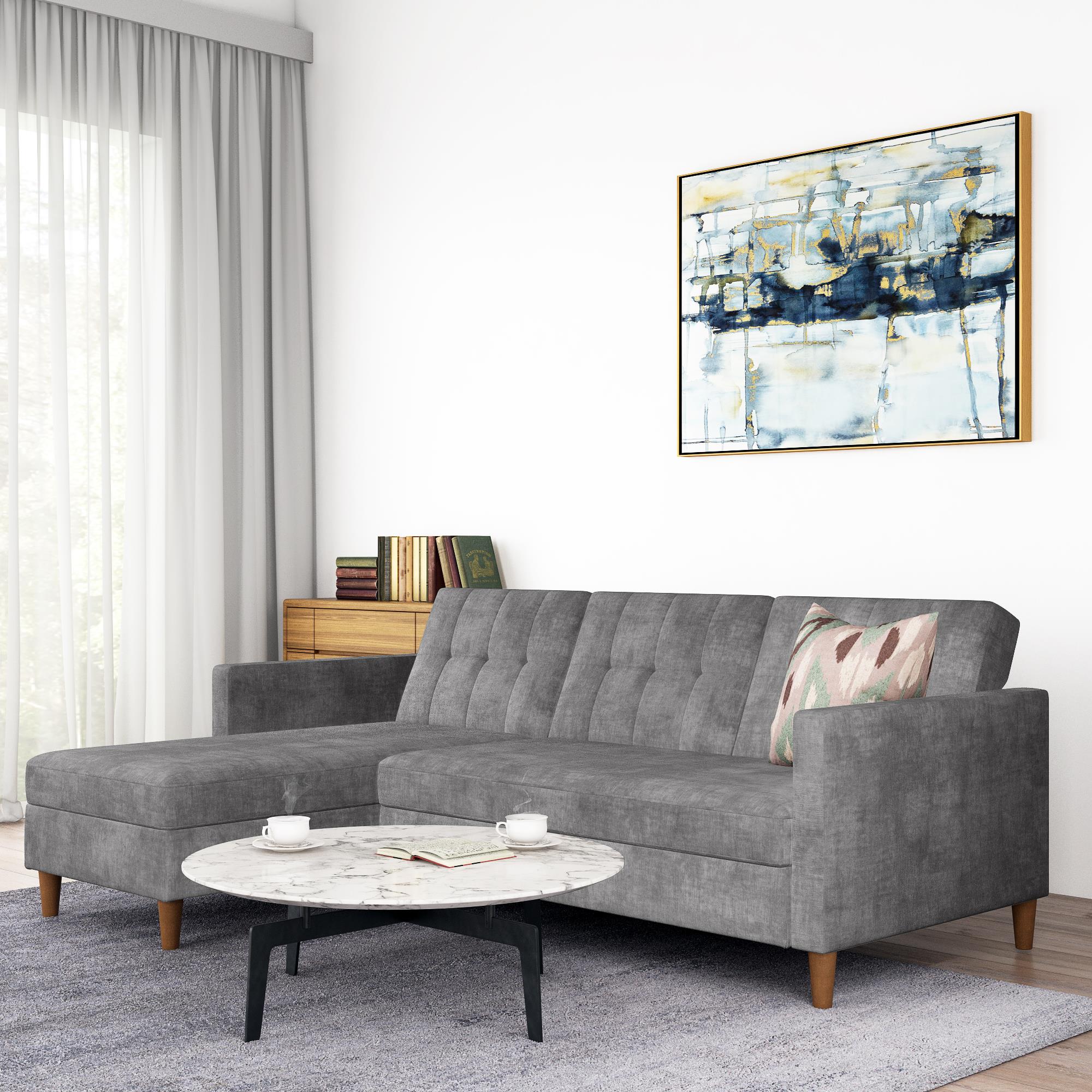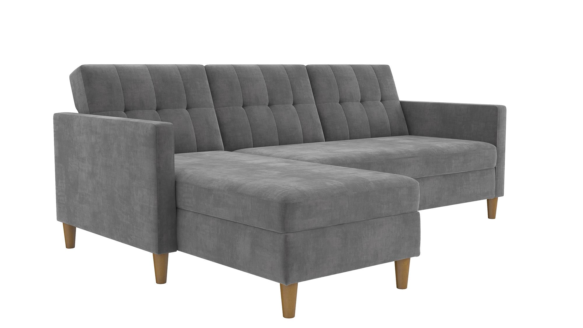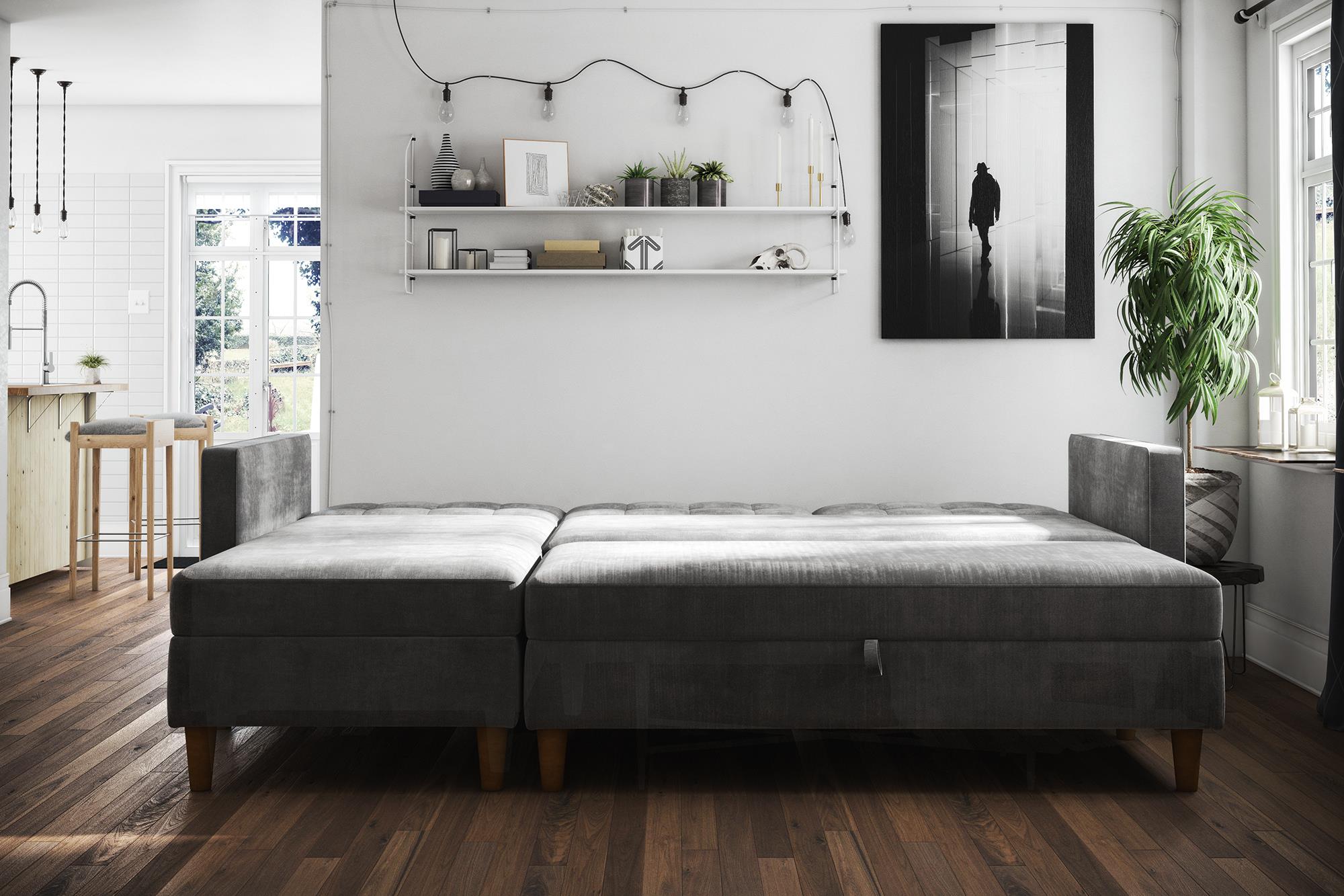 Sovesofa 3-sæder med chaiselong i stofgrå