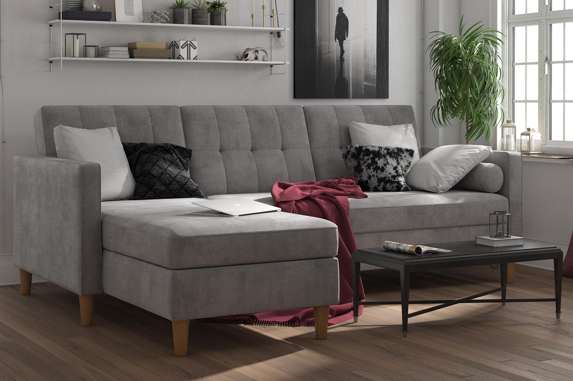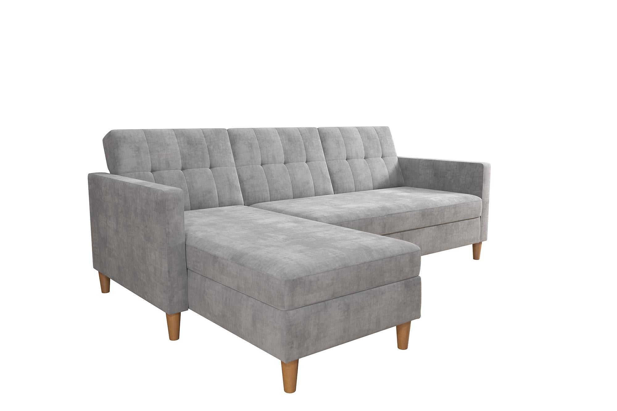 Sovesofa 3-sæder med chaiselong i stof lysegrå